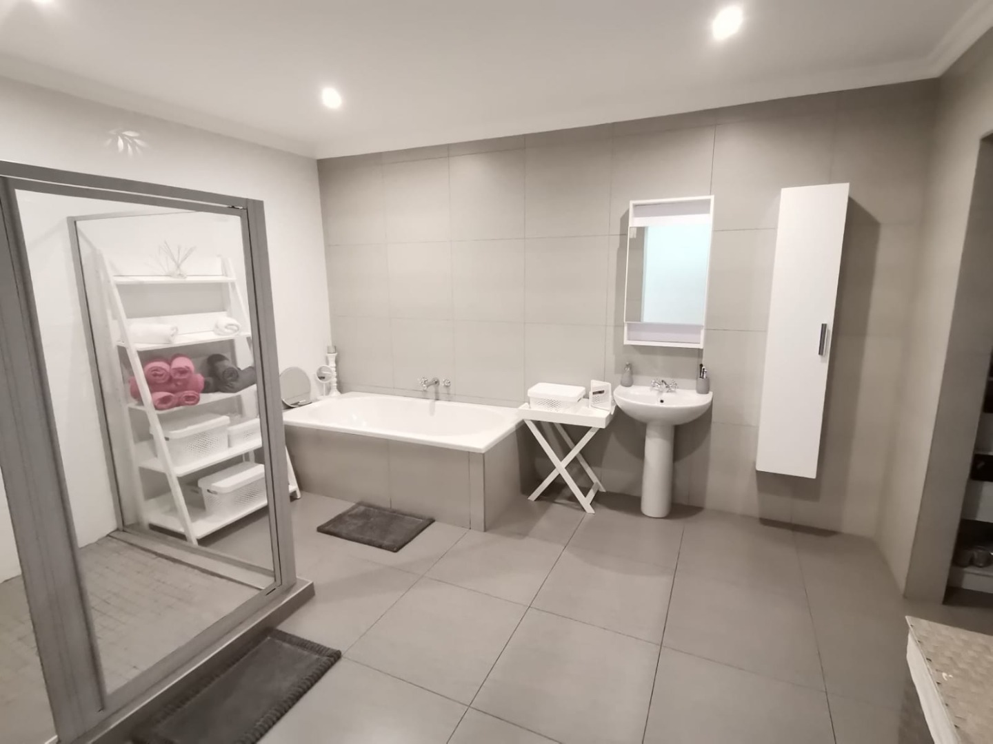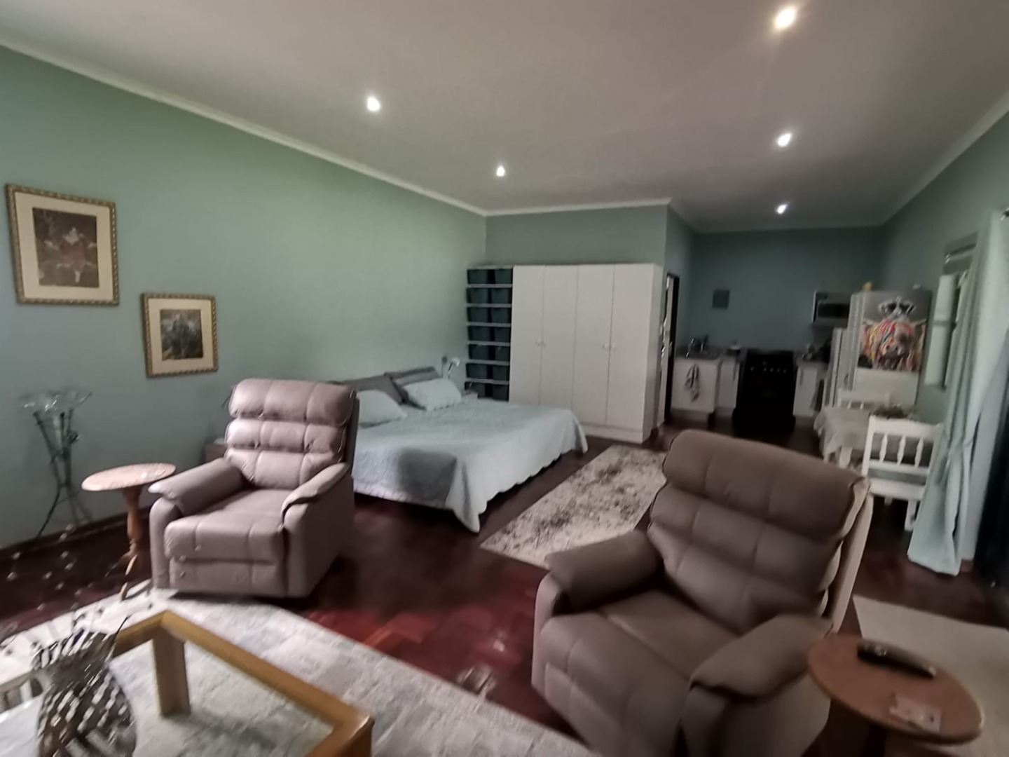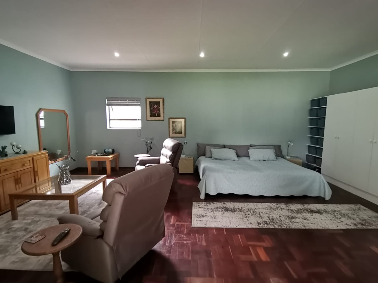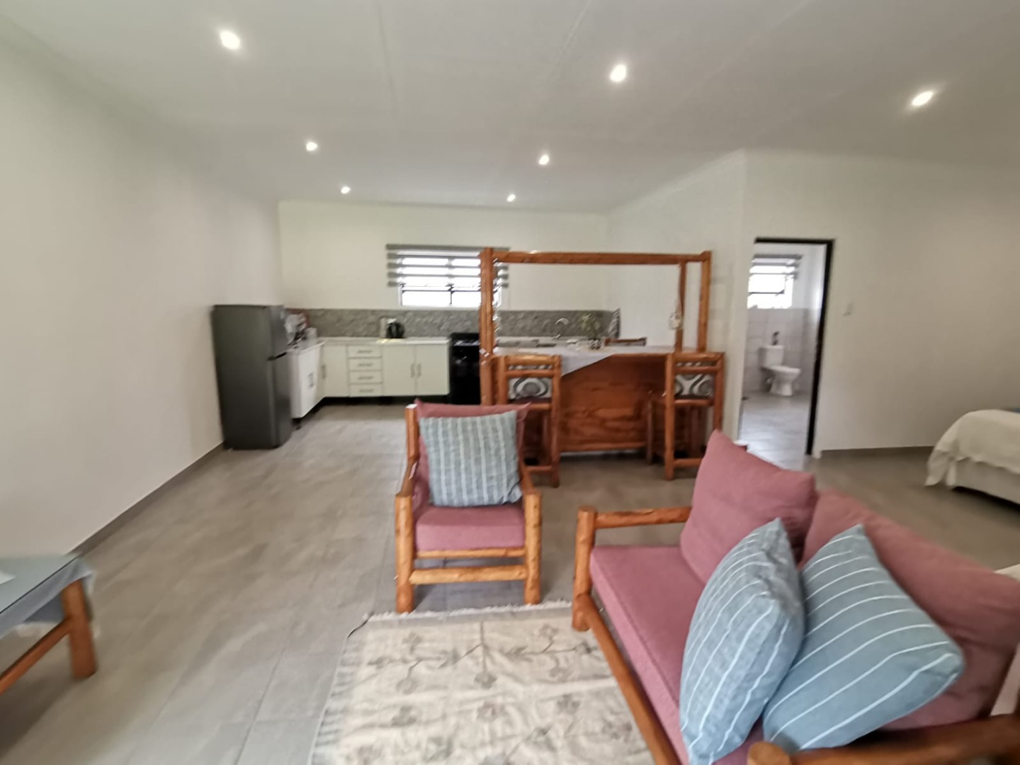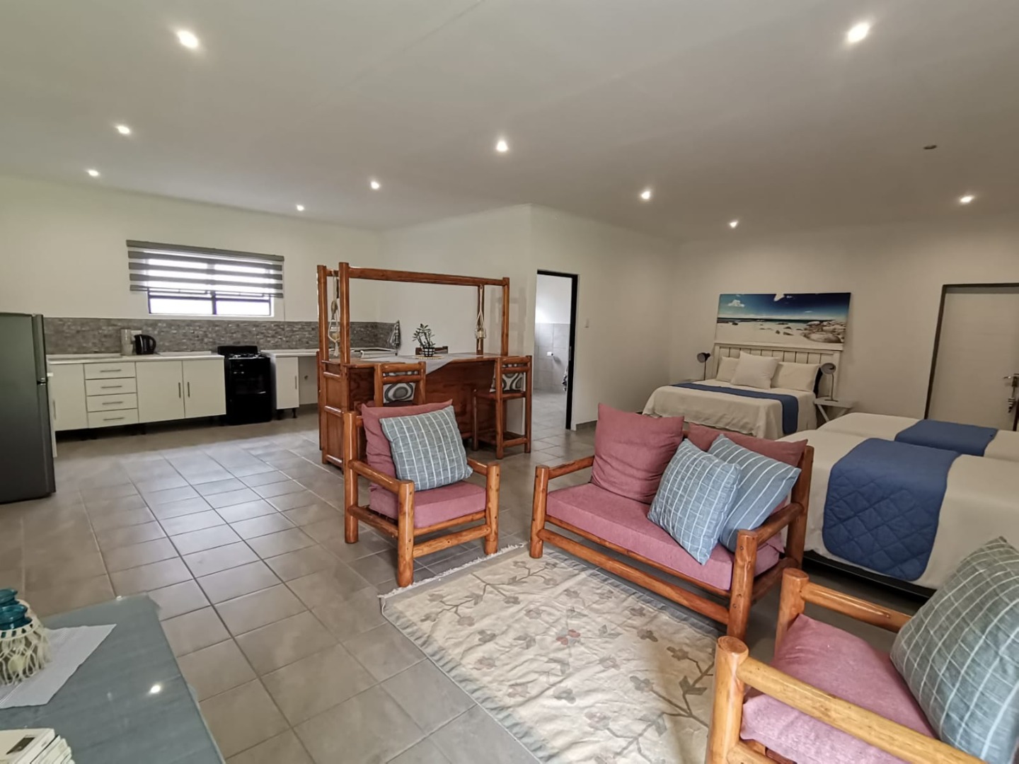 Additional accommodation includes two 80m² studio cottages, each with large walk-in showers, basins, toilets, cupboards, and gas geysers.