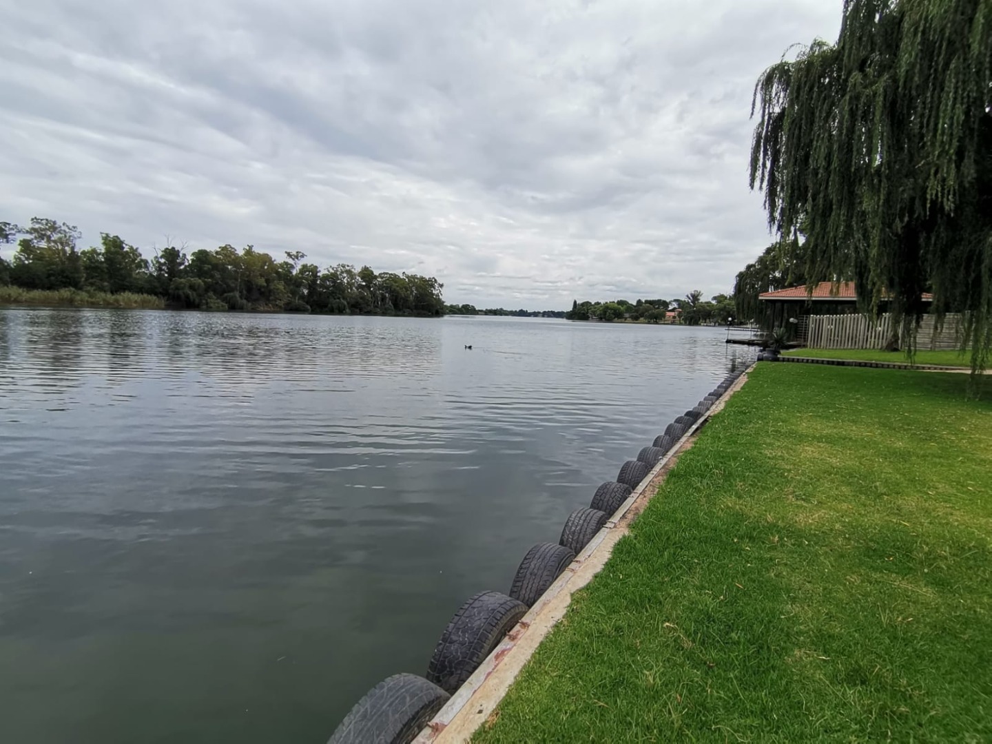 90m waterfront with boat launching pad, jetty, concrete/tyre-lined edge