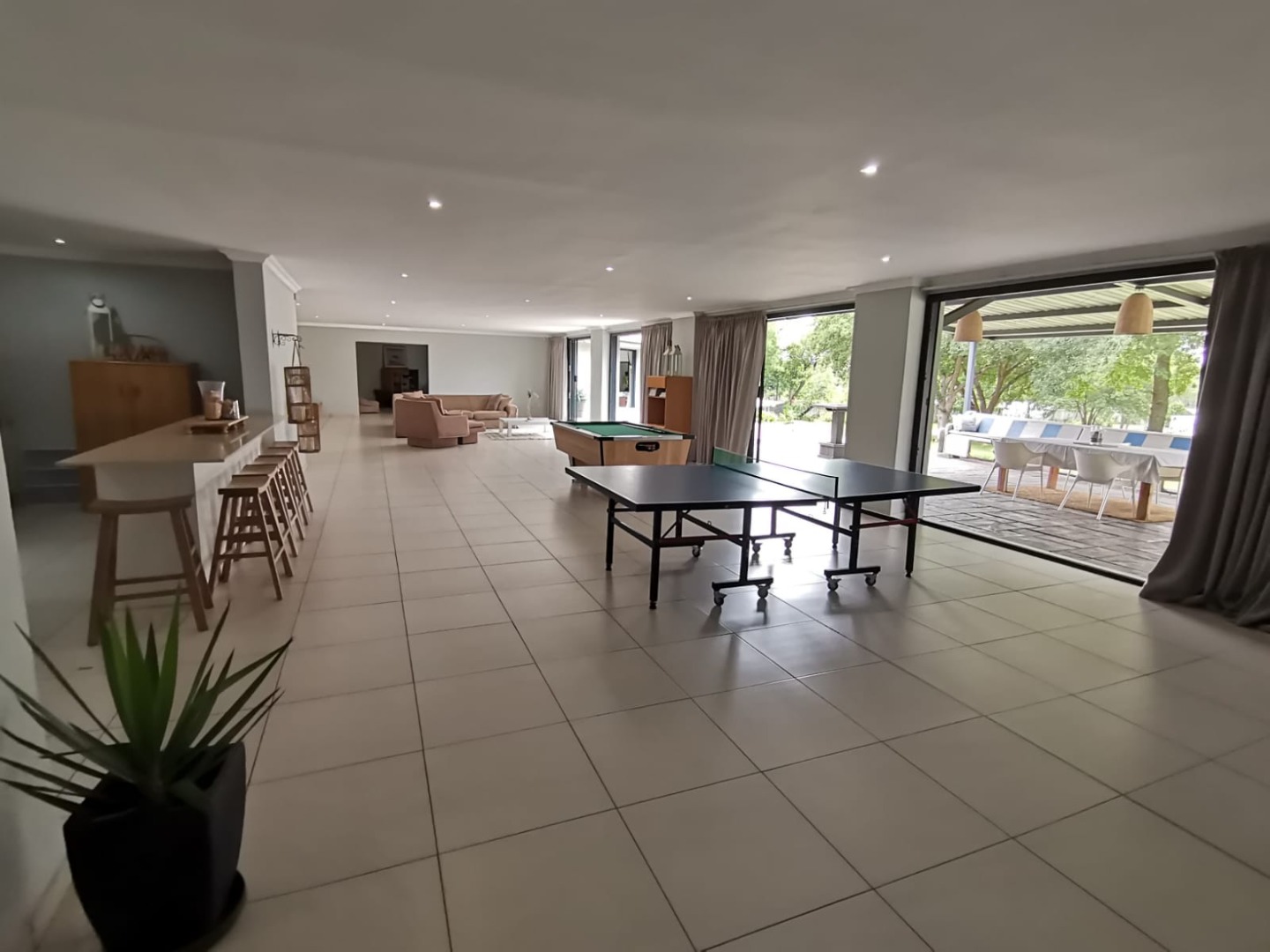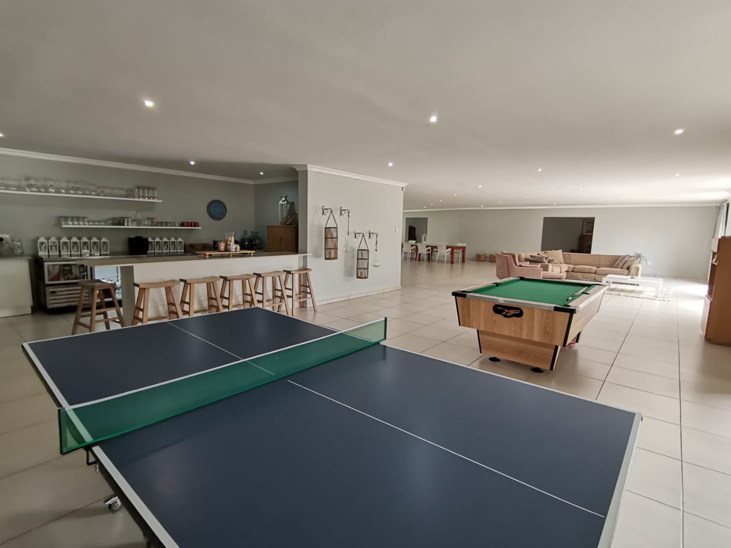A powerful borehole delivers 2,500L/hour of fresh, drinkable water (municipal connection available at entrance). Eskom electricity powers the property, supplemented by solar panels for outdoor lighting. A large JoJo tank stores fresh water, with grey water system and pump.