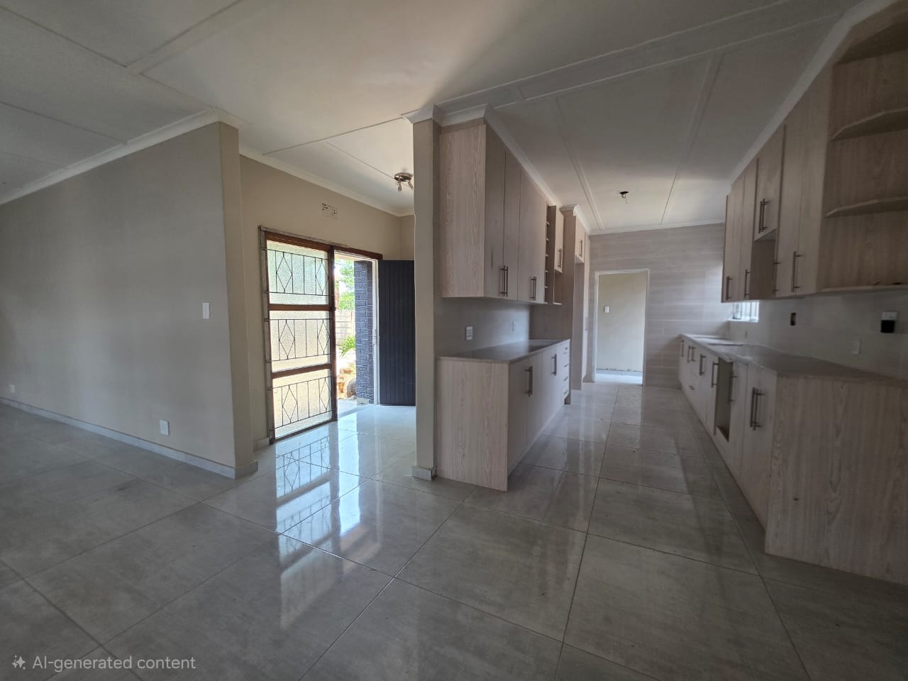 Discover this promising residential property located in the established suburban area of Vanderbijlpark CE 3. The interior boasts a spacious, open-plan living and kitchen area, featuring modern tiled flooring and freshly painted neutral walls, creating a bright and inviting atmosphere. The kitchen is equipped with extensive new light wood-grain cabinetry, offering abundant storage. A dedicated dining room and a comfortable lounge area provide ample space for relaxation and entertaining.