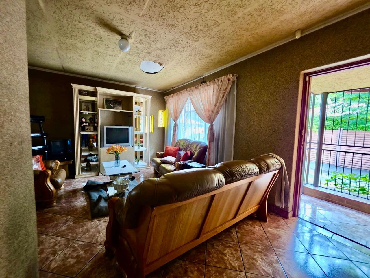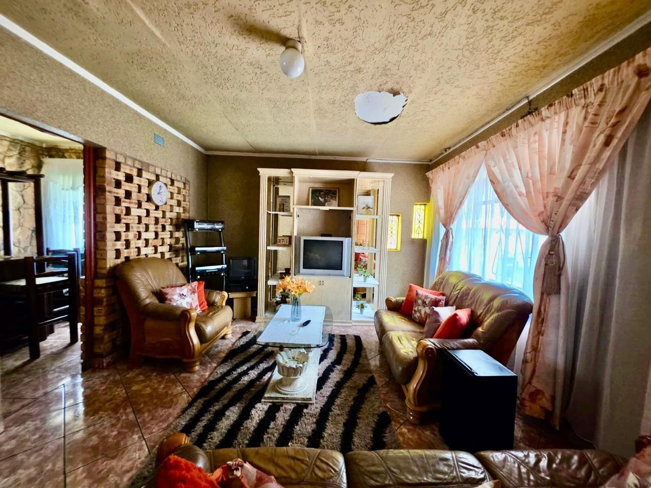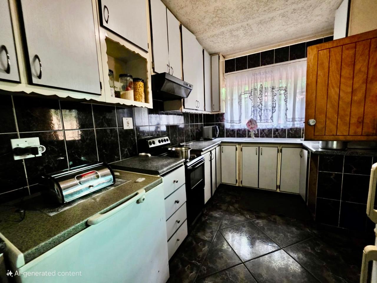 Located in the established suburban area of Vanderbijlpark CW 5, this property offers a convenient lifestyle in Vanderbijlpark, South Africa. This functional home features a spacious lounge, a dedicated dining room, and a separate family TV room, all with durable tiled flooring. The kitchen provides ample cabinet storage and natural light, presenting an excellent opportunity for a modern renovation. A unique rustic space with stone-clad walls and a wooden bar adds character, perfect for entertaining. The residence includes three comfortable bedrooms, each offering natural light. One bedroom benefits from a built-in wardrobe, providing practical storage. The single bathroom serves the household, awaiting personal touches to enhance its appeal. Set on a 570 sqm erf, the property boasts a textured, stone-like exterior and a paved entrance secured by a gate. A single garage and two additional parking spaces cater to vehicle needs. The outdoor area includes a small grassy yard and a partially shaded paved section, ideal for future landscaping or utility use. Domestic rooms are also available. Key Features: * 3 Bedrooms, 1 Bathroom * 1 Garage, 2 Parking Spaces * Spacious Lounge, Dining Room, Family TV Room * Functional Kitchen * Rustic Bar Area * 570 sqm Erf Size * Security Gate and Window Bars * Domestic Rooms