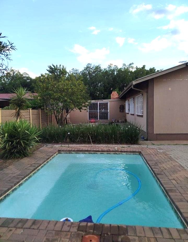 Adjacent to the dining area, you’ll find a superb entertainment space featuring a built-in braai. Sliding doors open onto the back garden, where a sparkling swimming pool awaits — perfect for summer days and weekend get-togethers.