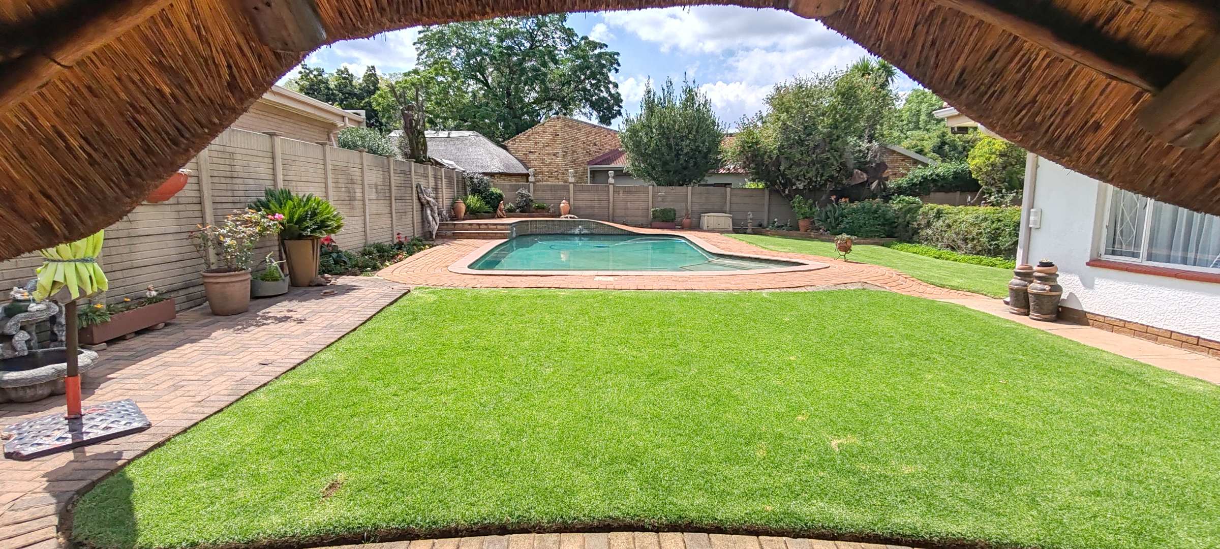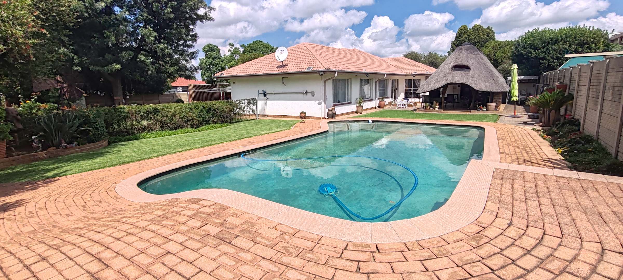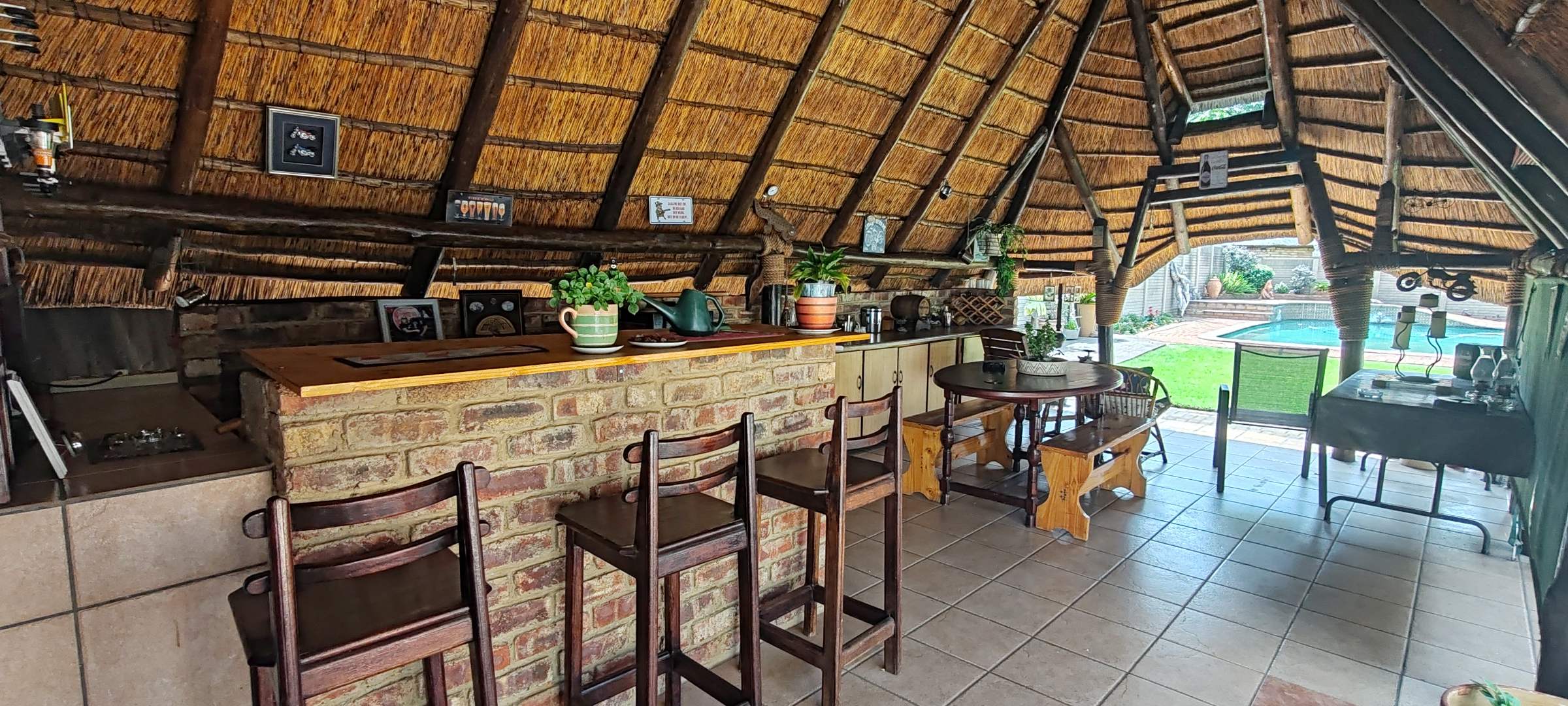 Step outside to enjoy a fantastic entertainment area, featuring a lapa with a built-in bar, a large swimming pool, and a beautifully kept, expansive yard—perfect for outdoor living.