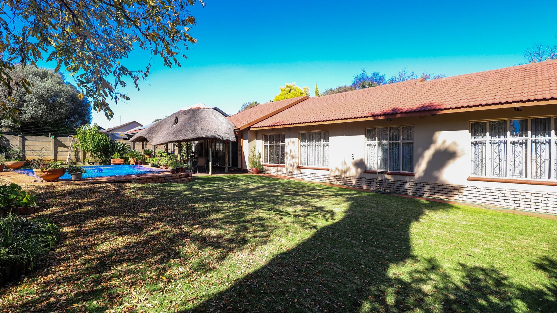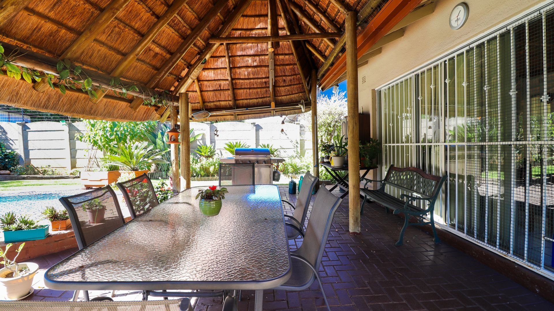 Sparkling pool, wrap-around garden with borehole and irrigation system