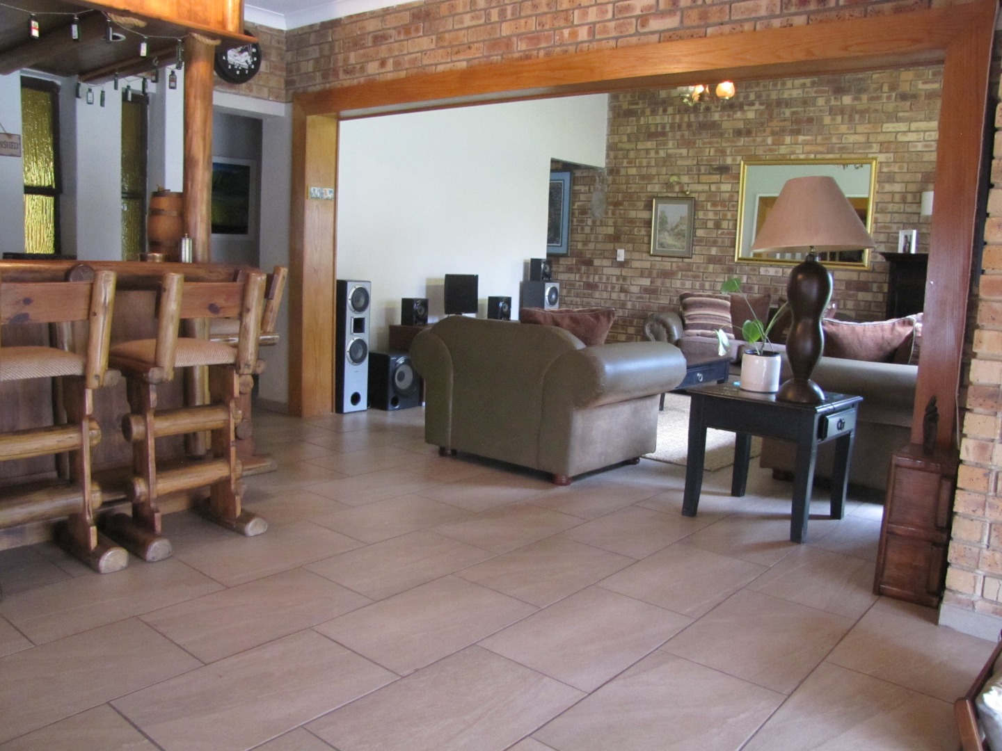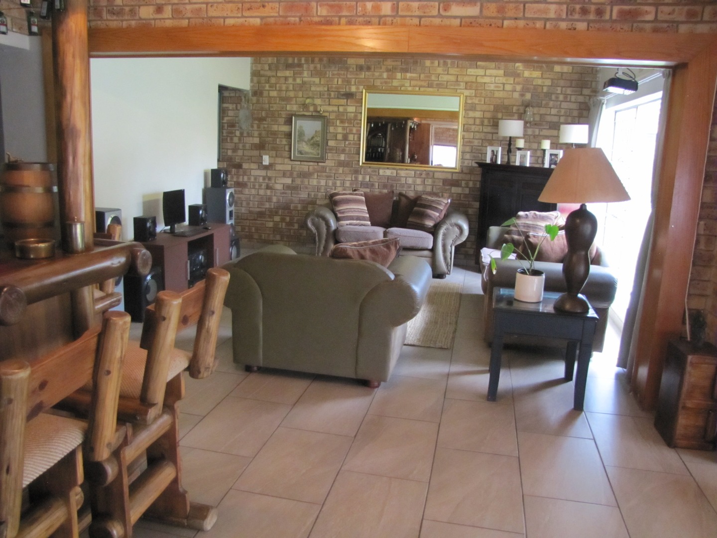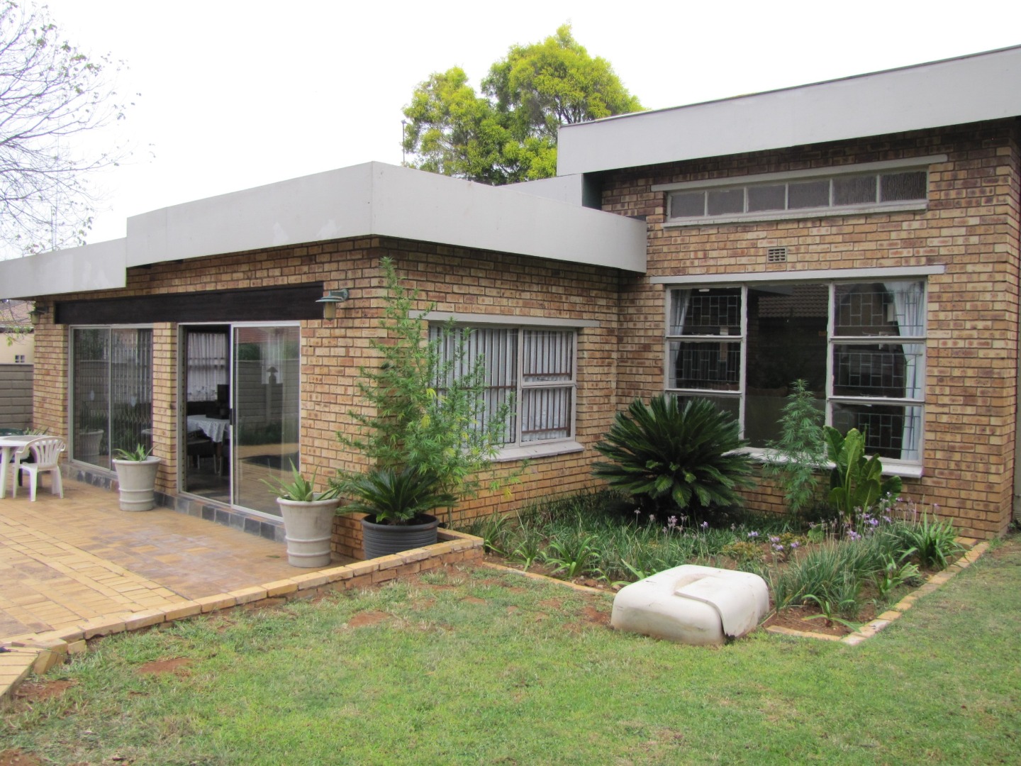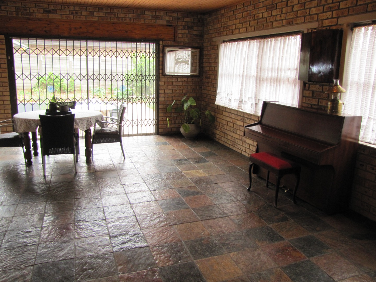 The inviting kitchen is large and has a table top stove, eye-level oven, ample built-in cupboards and a scullery/laundry area. An added extra is that there is an open plan dining area in the kitchen.