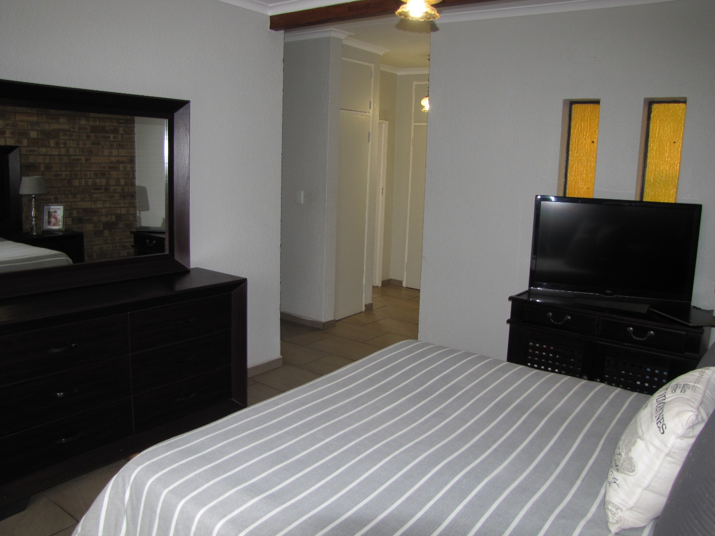 The three bedrooms are a comfortable size and have built-in cupboards. There is two modern bathrooms, of which, one is an en-suite bathroom to the spacious master bedroom.