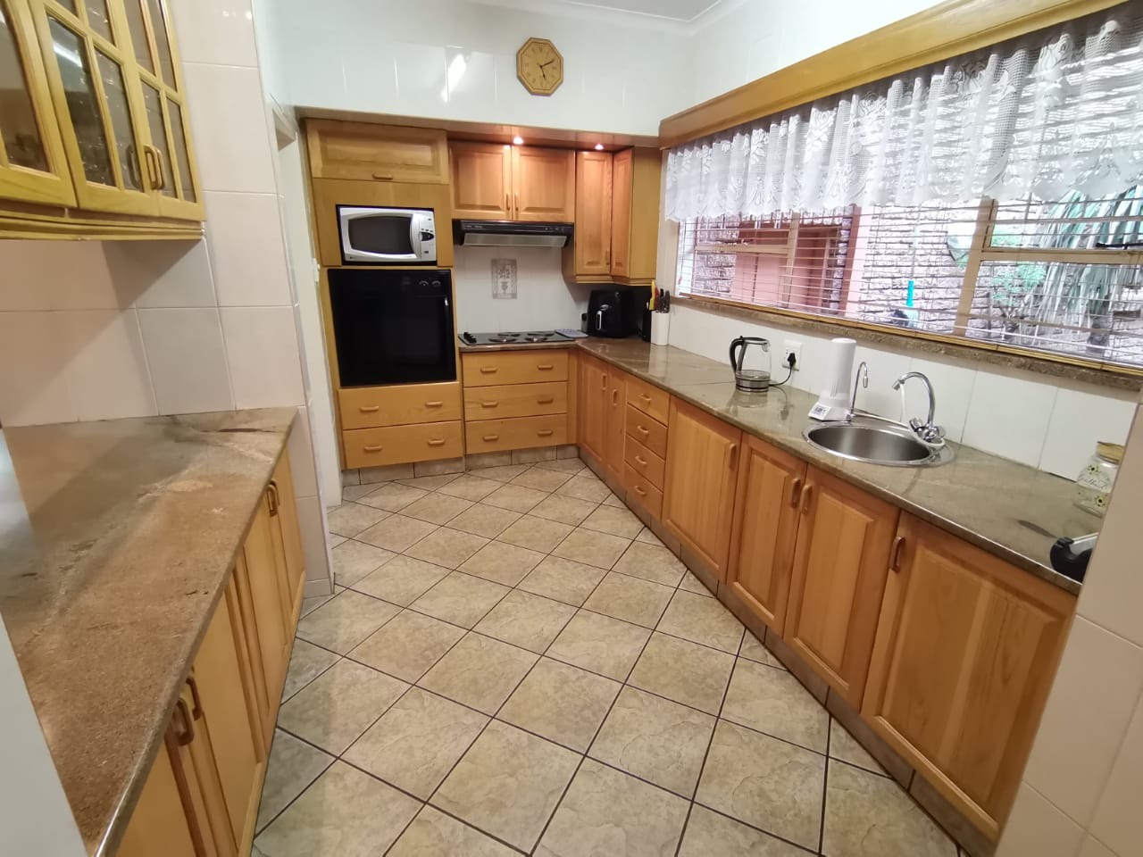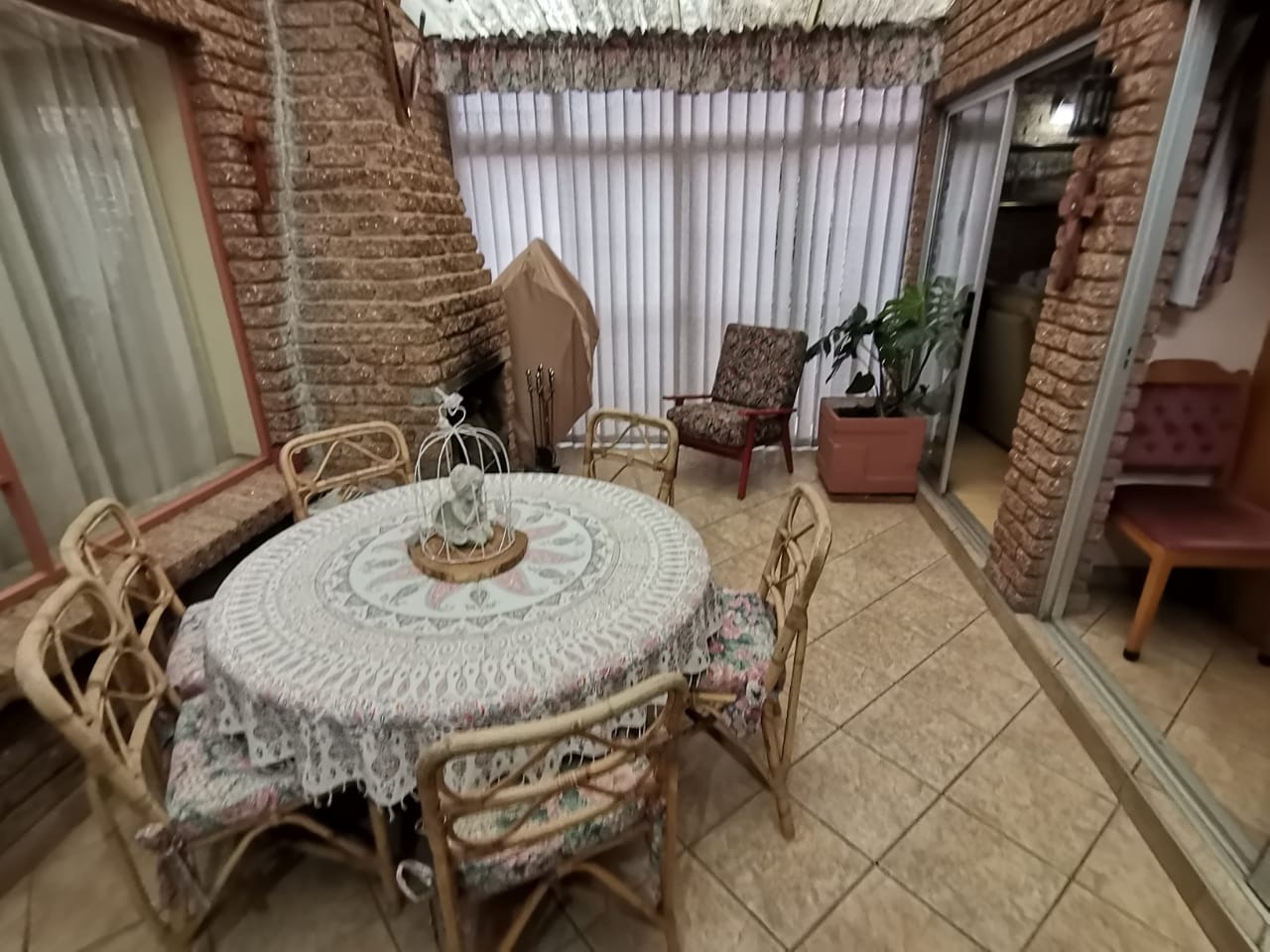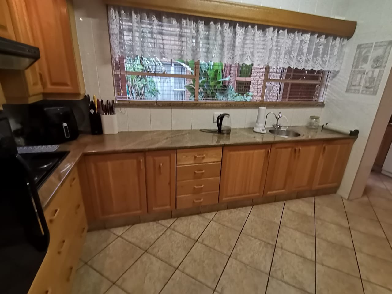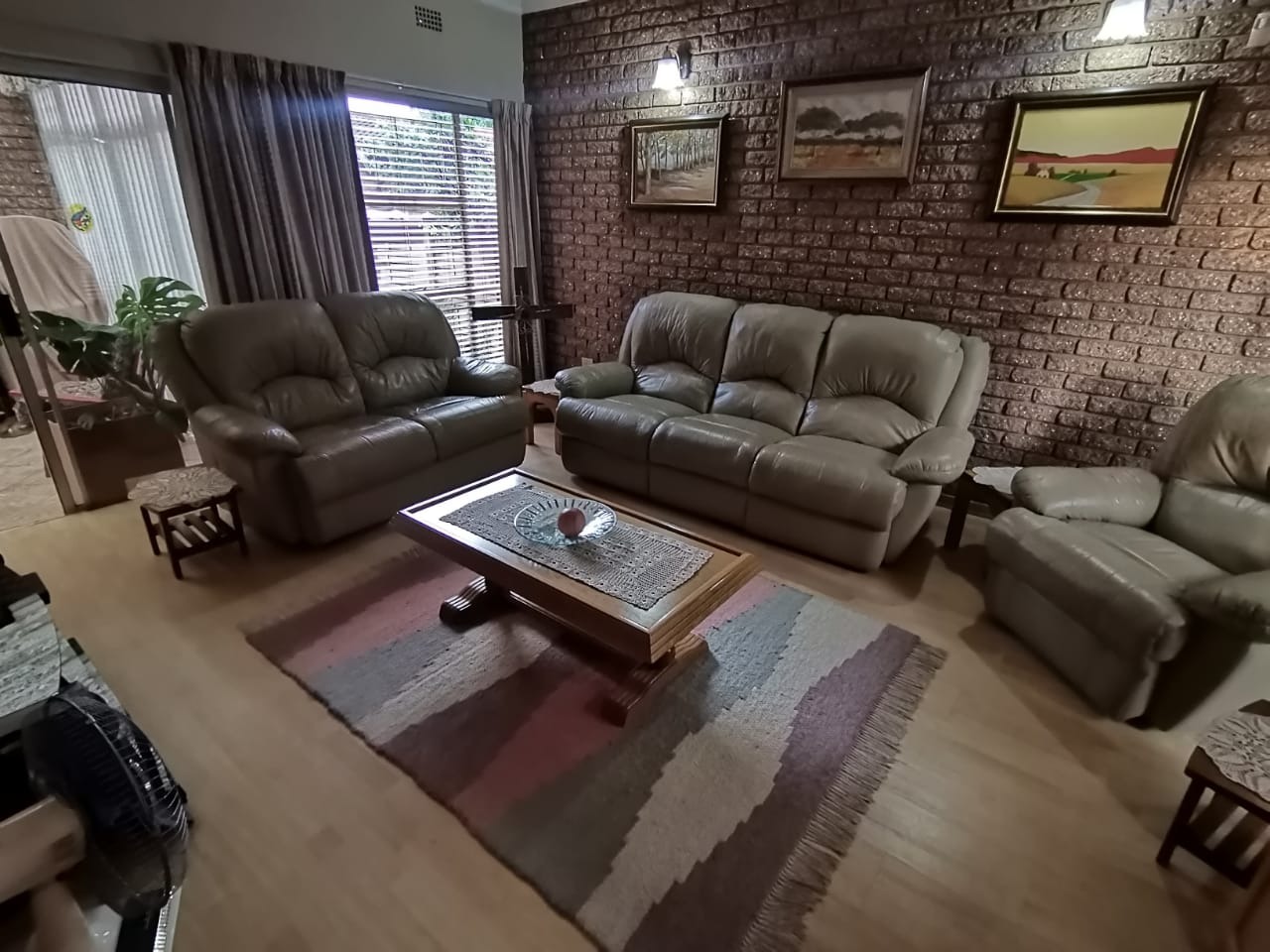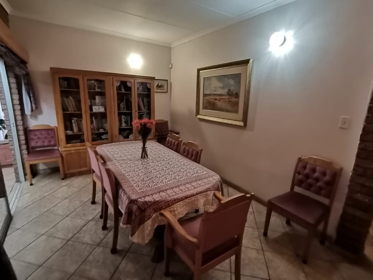 Step into a bright, welcoming entrance hall with staircase that flows seamlessly into a spacious living room and separate dining area. From here, glass doors open onto a covered, sun-drenched patio complete with a built-in braai—perfect for effortless entertaining, just steps from the kitchen. This thoughtfully designed home is ideal for family living.The property boasts four well-appointed bedrooms and two bathrooms, including an en-suite in the main bedroom. The master suite features abundant built-in cupboards, air-conditioning, elegant flooring, and direct access to the outdoors.