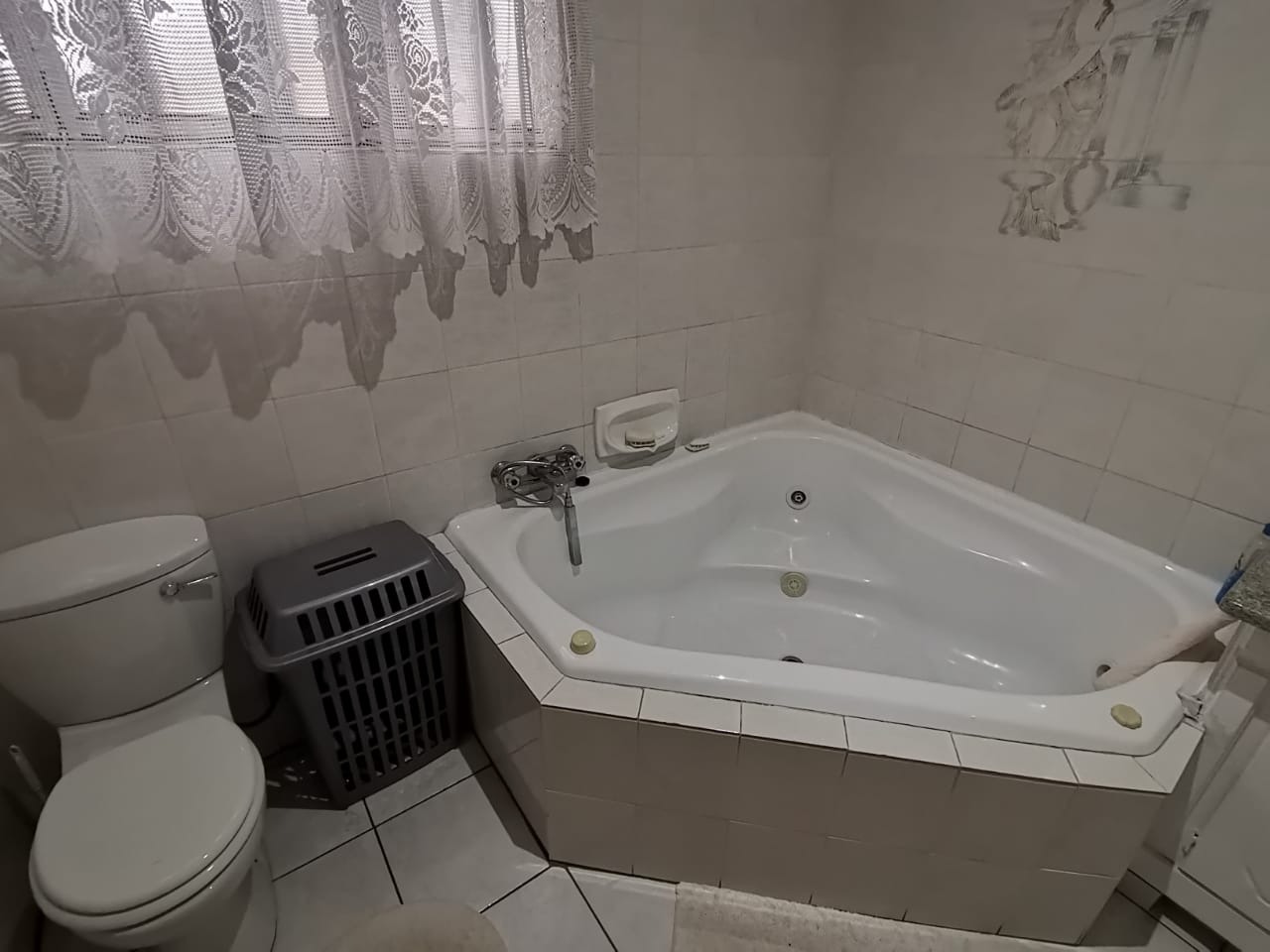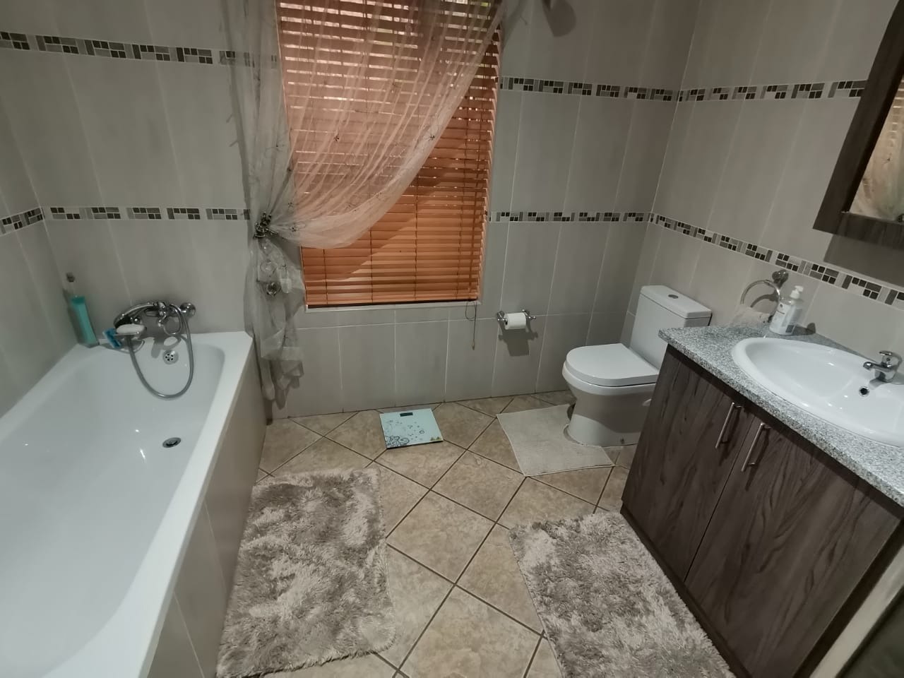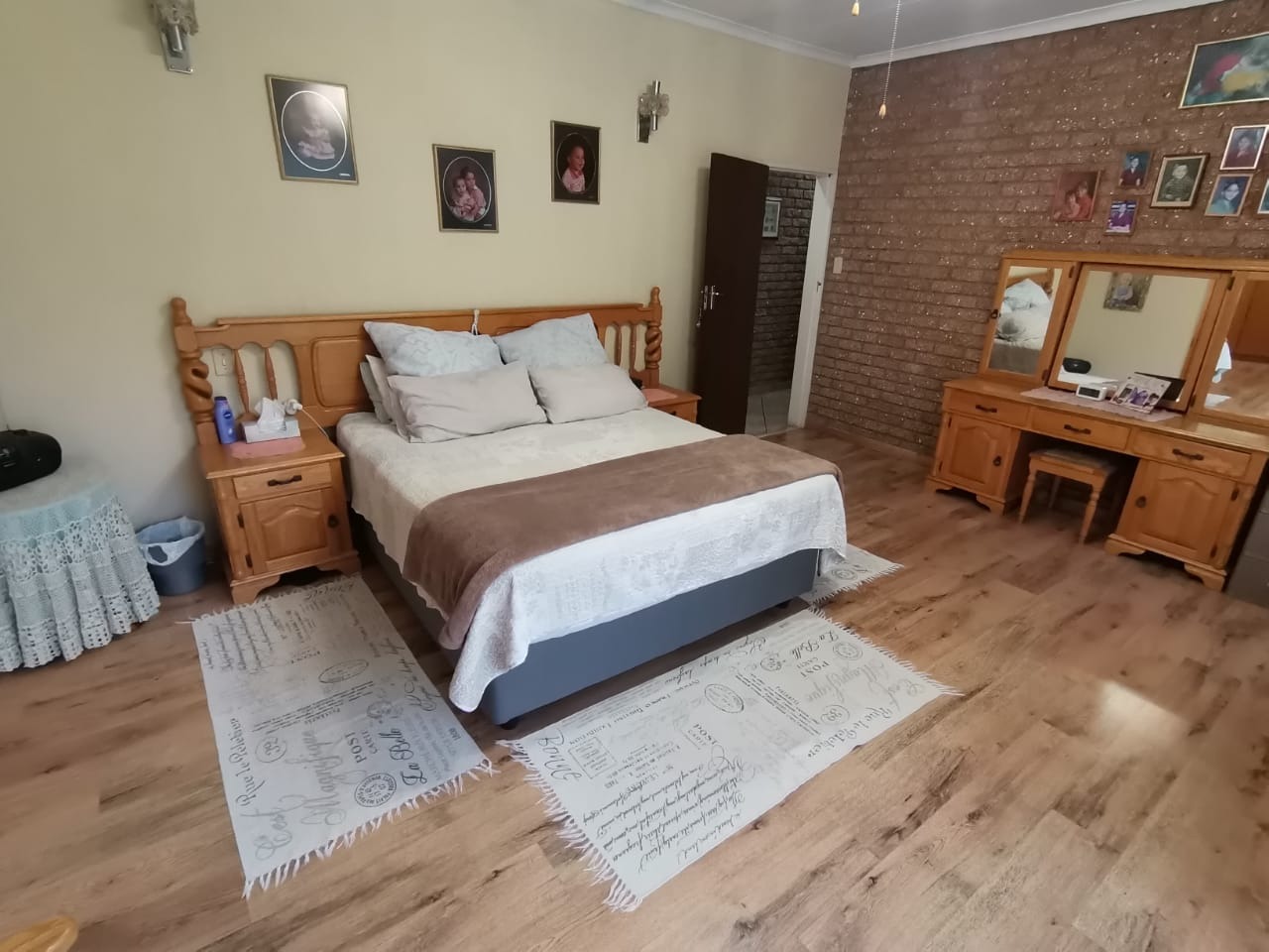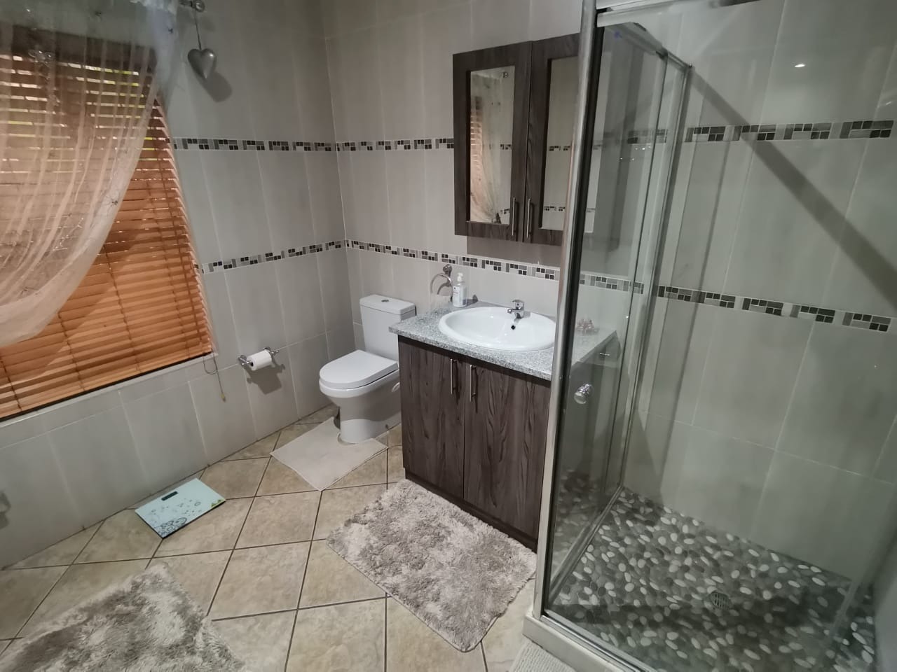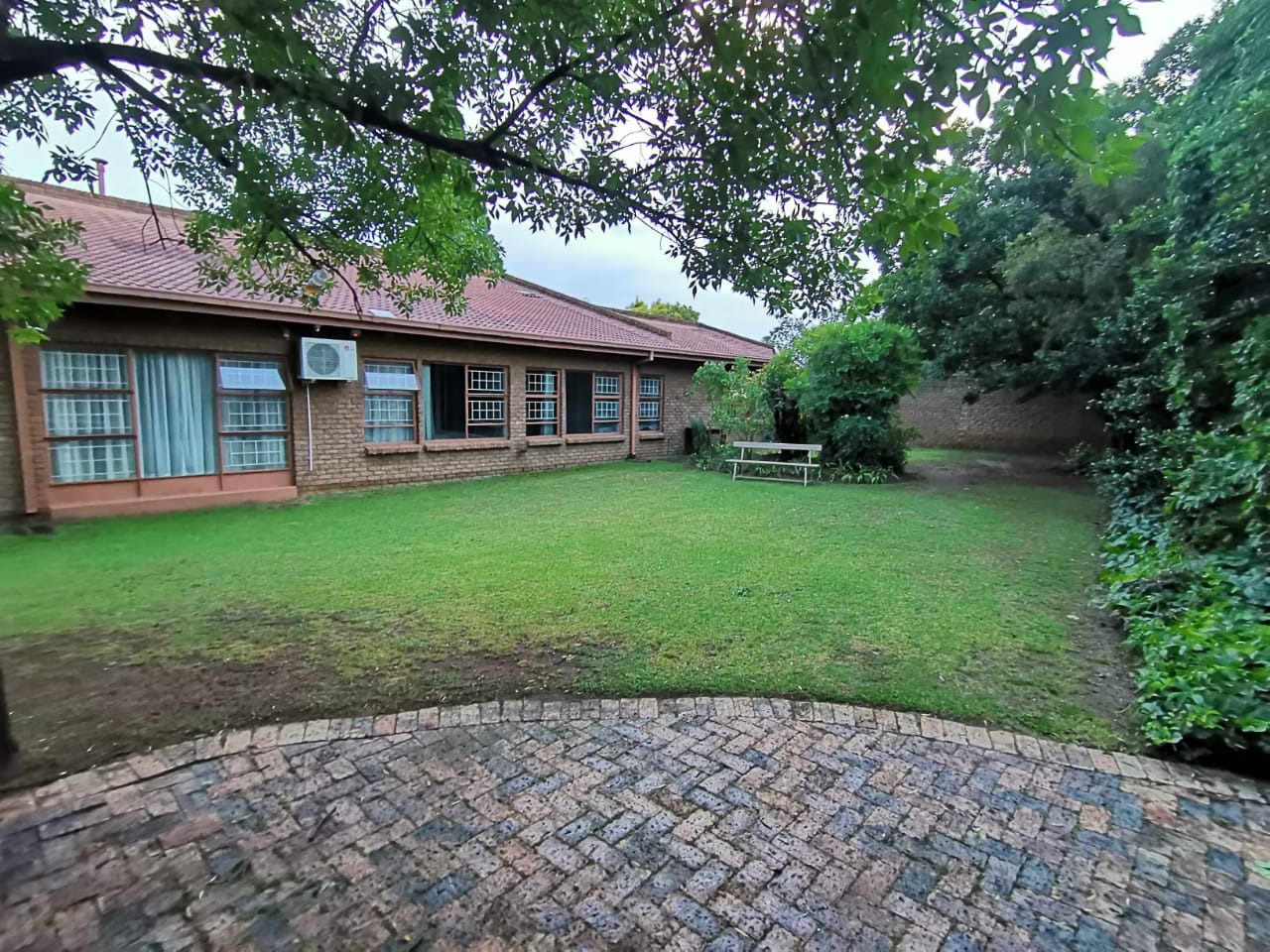 Step into a bright, welcoming entrance hall with staircase that flows seamlessly into a spacious living room and separate dining area. From here, glass doors open onto a covered, sun-drenched patio complete with a built-in braai—perfect for effortless entertaining, just steps from the kitchen. This thoughtfully designed home is ideal for family living.The property boasts four well-appointed bedrooms and two bathrooms, including an en-suite in the main bedroom. The master suite features abundant built-in cupboards, air-conditioning, elegant flooring, and direct access to the outdoors.