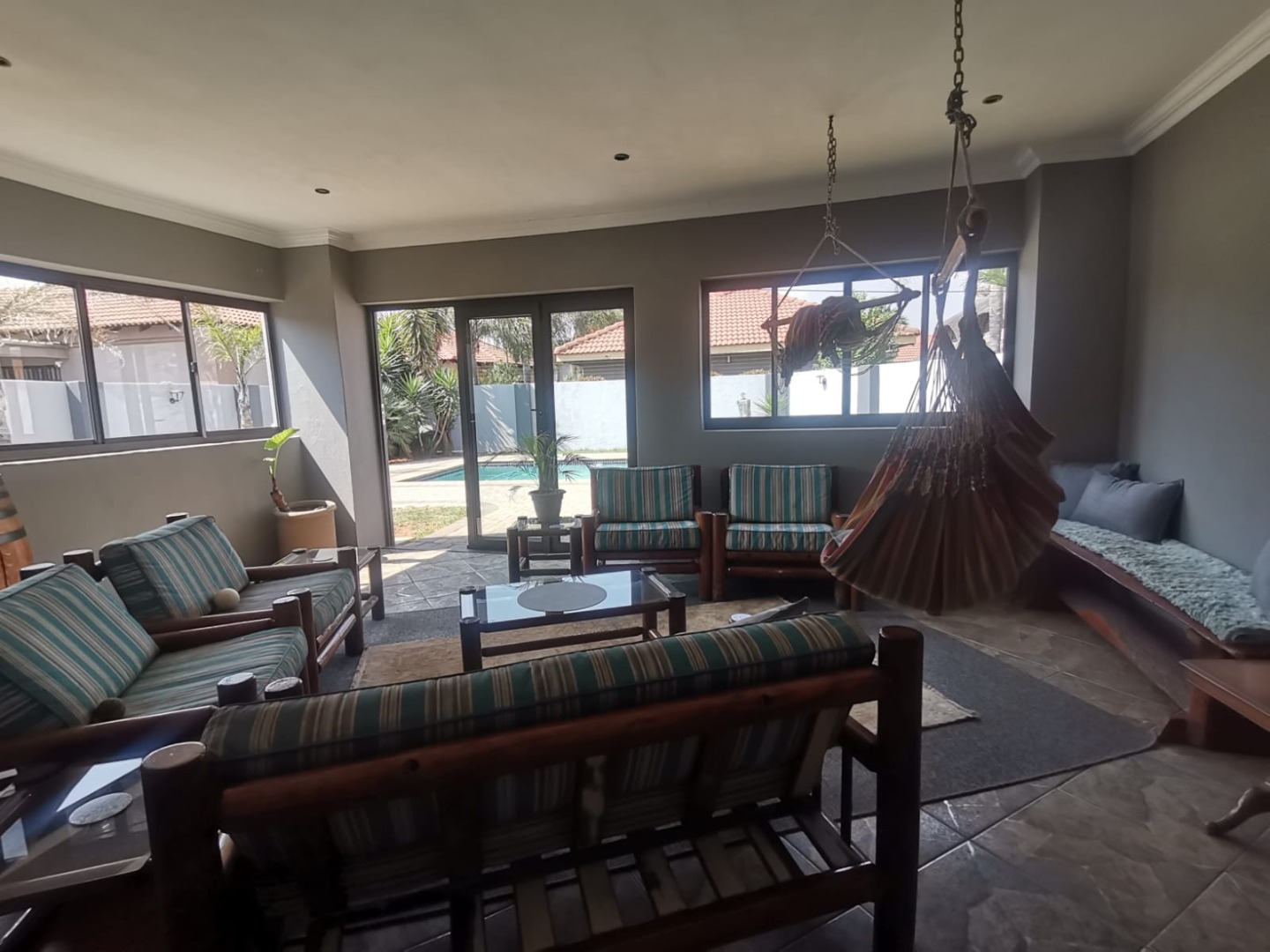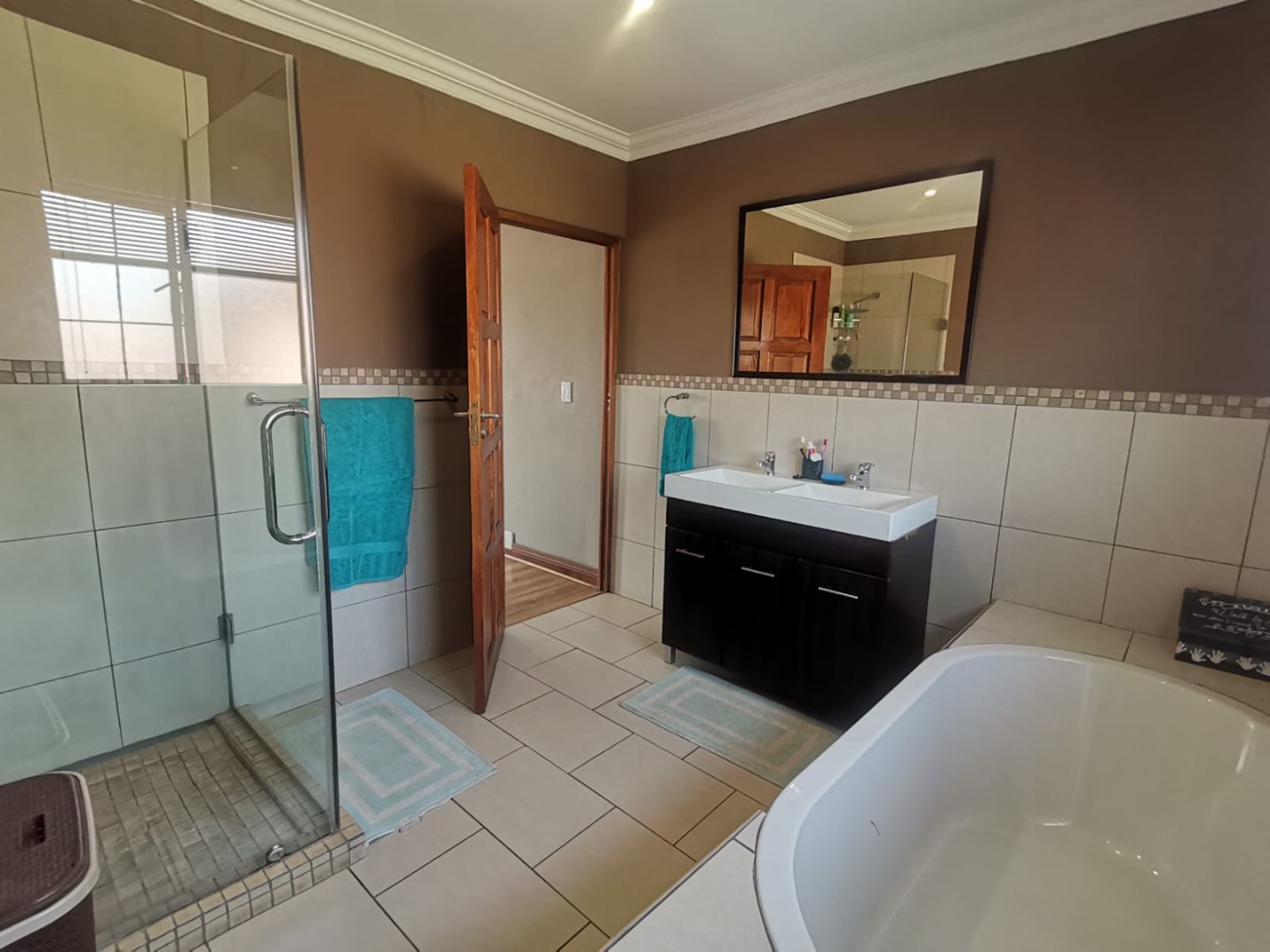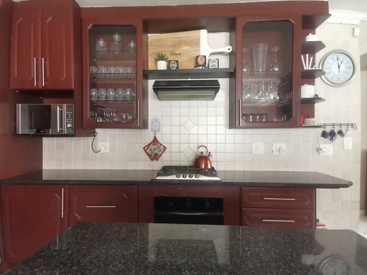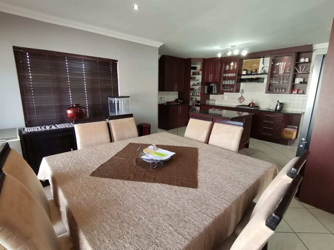 The ground floor boasts a contemporary open-plan kitchen that seamlessly connects to the lounge, dining, and entertainment area with built-in braai —ideal for family gatherings and hosting guests.