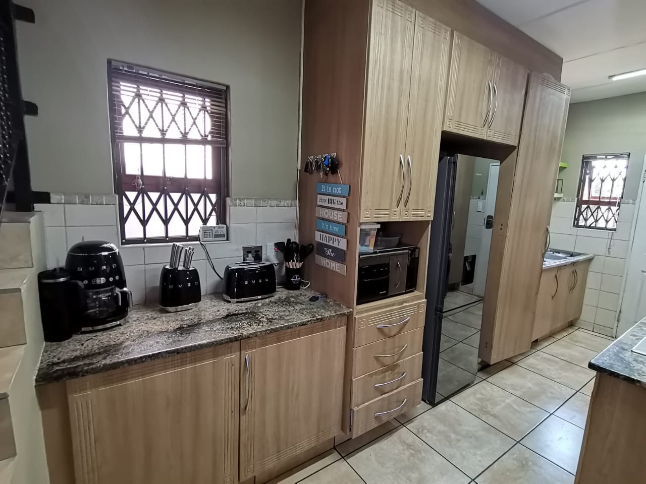 Stay comfortable year-round with air-conditioning in most rooms, plenty of built-in storage, and the added security of burglar bars throughout.