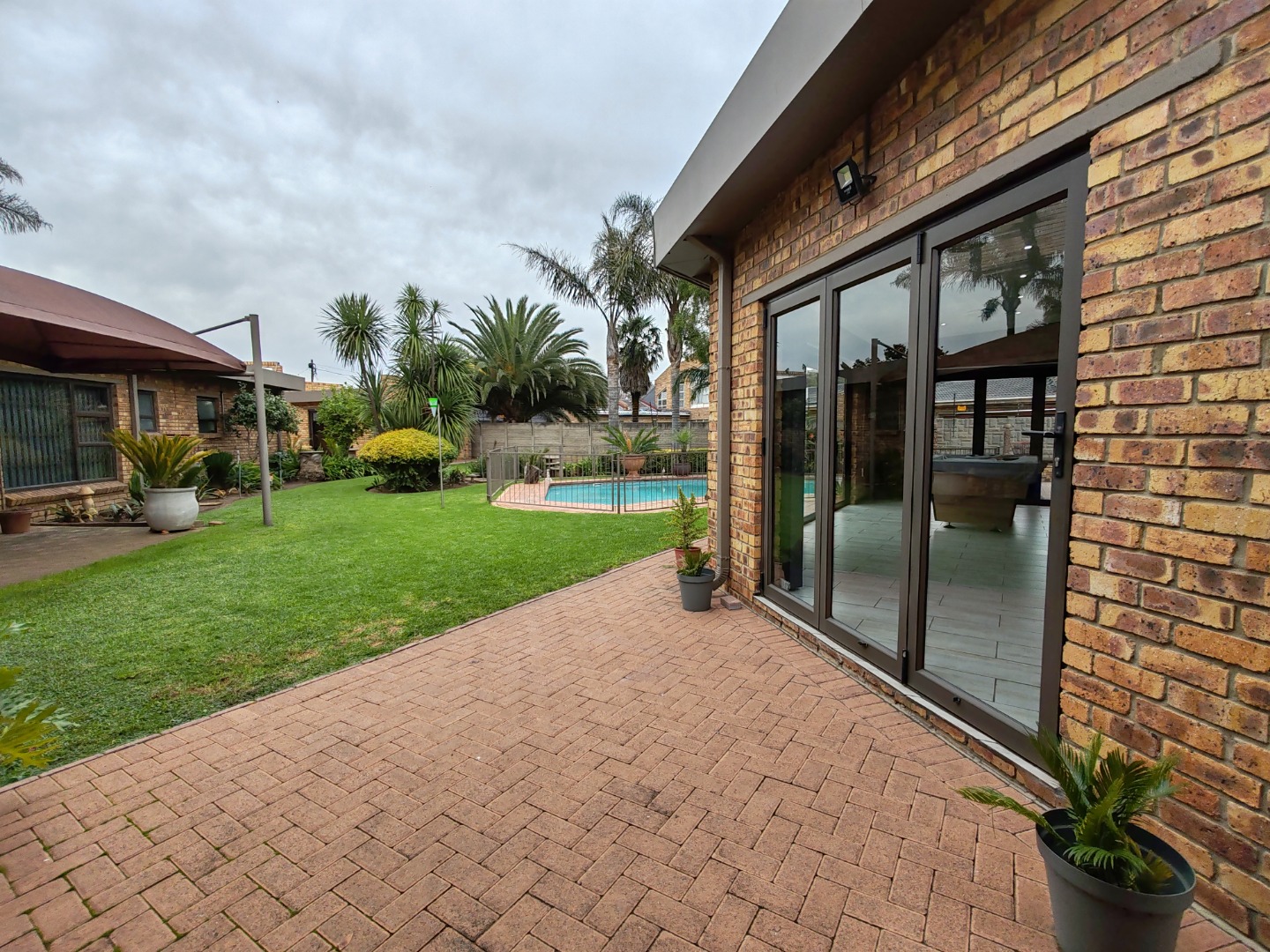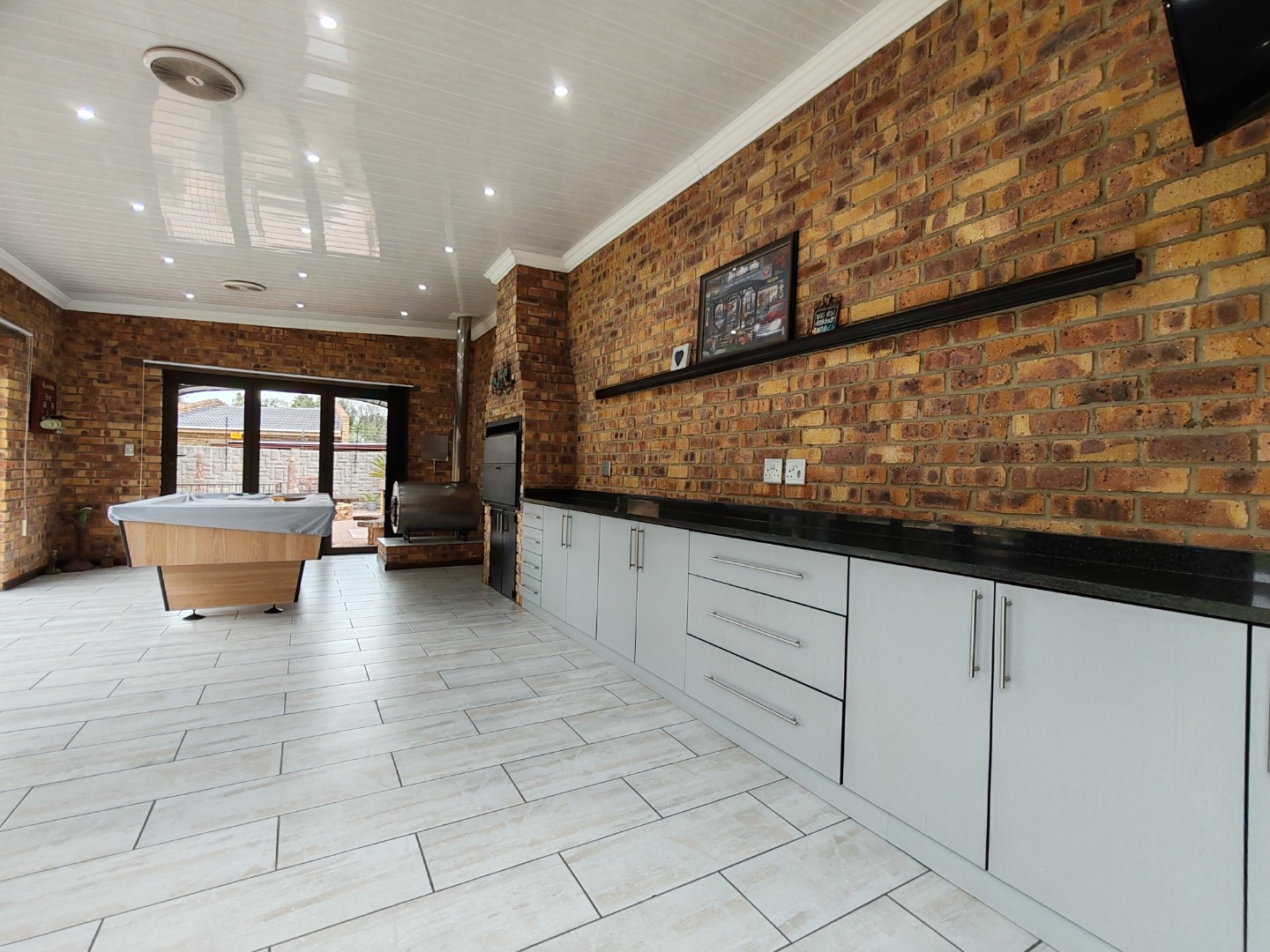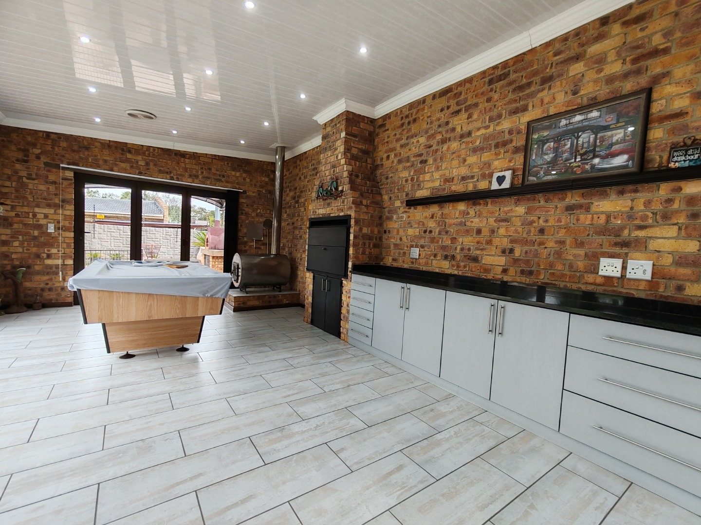 - Large poolside entertainment area with built-in braai and fireplace