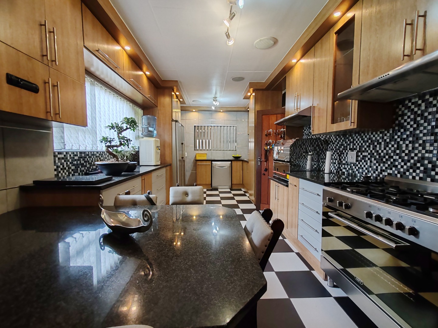 - Modern Kitchen with gas stove, granite tops, and breakfast nook