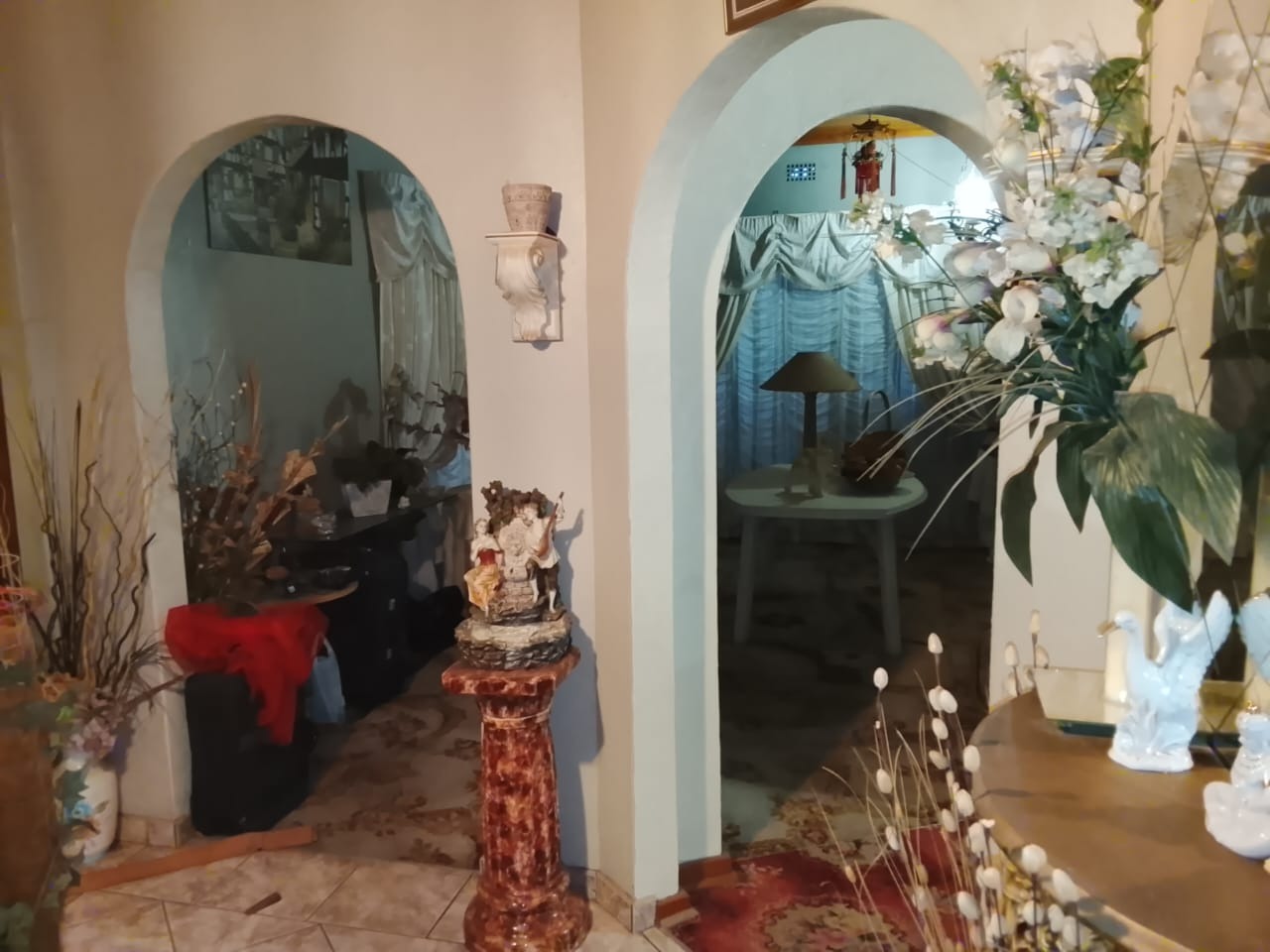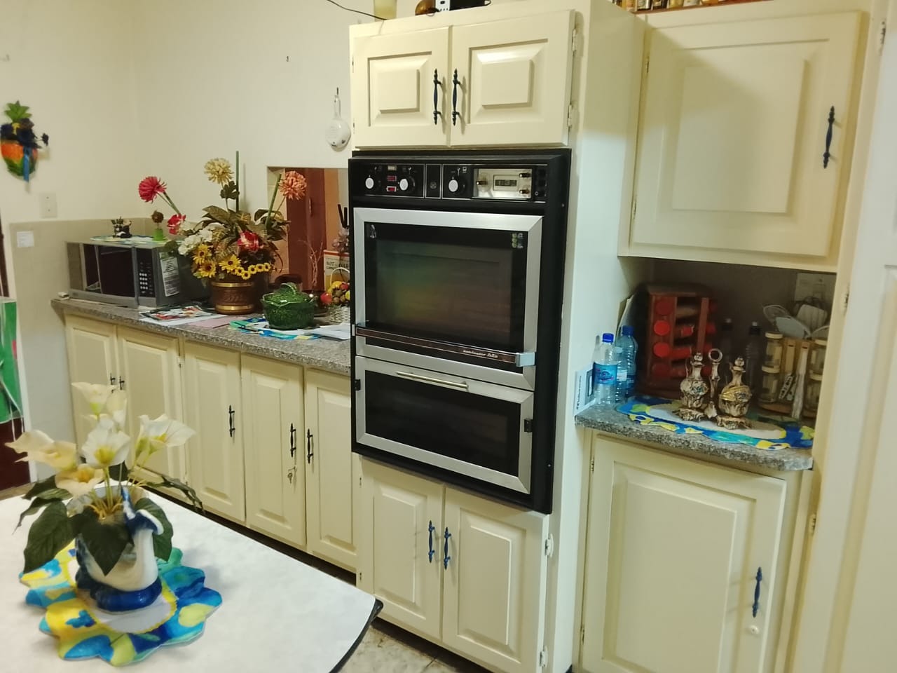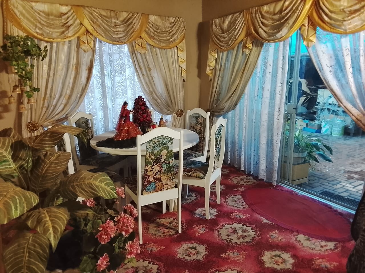 Outside, the property includes a double garage, a double carport, and an additional single carport that accommodates two vehicles. The established garden features a charming koi fish pond and a borehole for added convenience.
