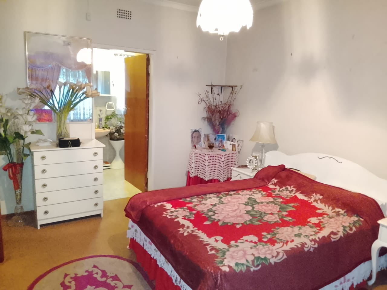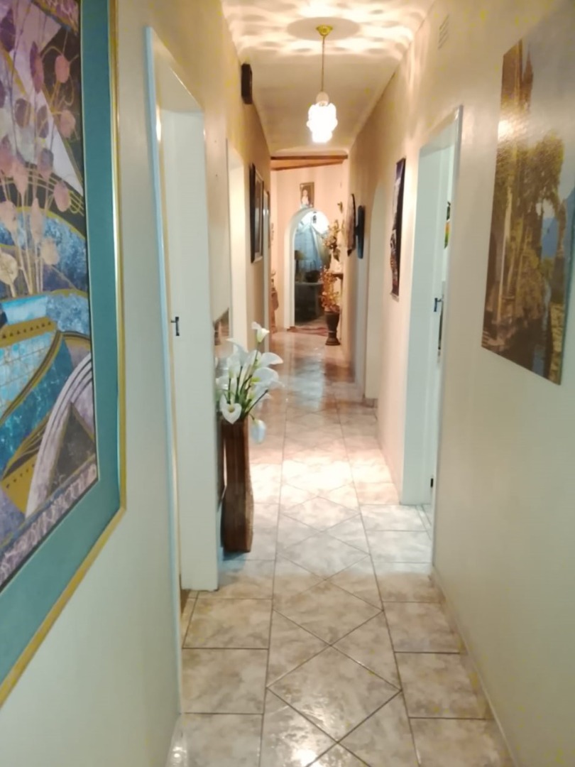 A passage leads to four well-sized bedrooms, all fitted with built-in cupboards. The master bedroom boasts a full en-suite bathroom, while a second bathroom services the remaining bedrooms.