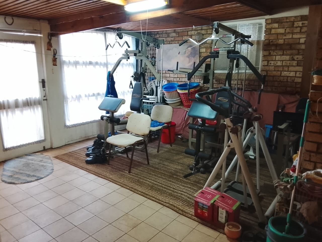 The home further offers an entertainment room currently utilized as a gym, with an additional adjoining room that can easily be transformed into a hobby room, office, or guest space to suit your needs.