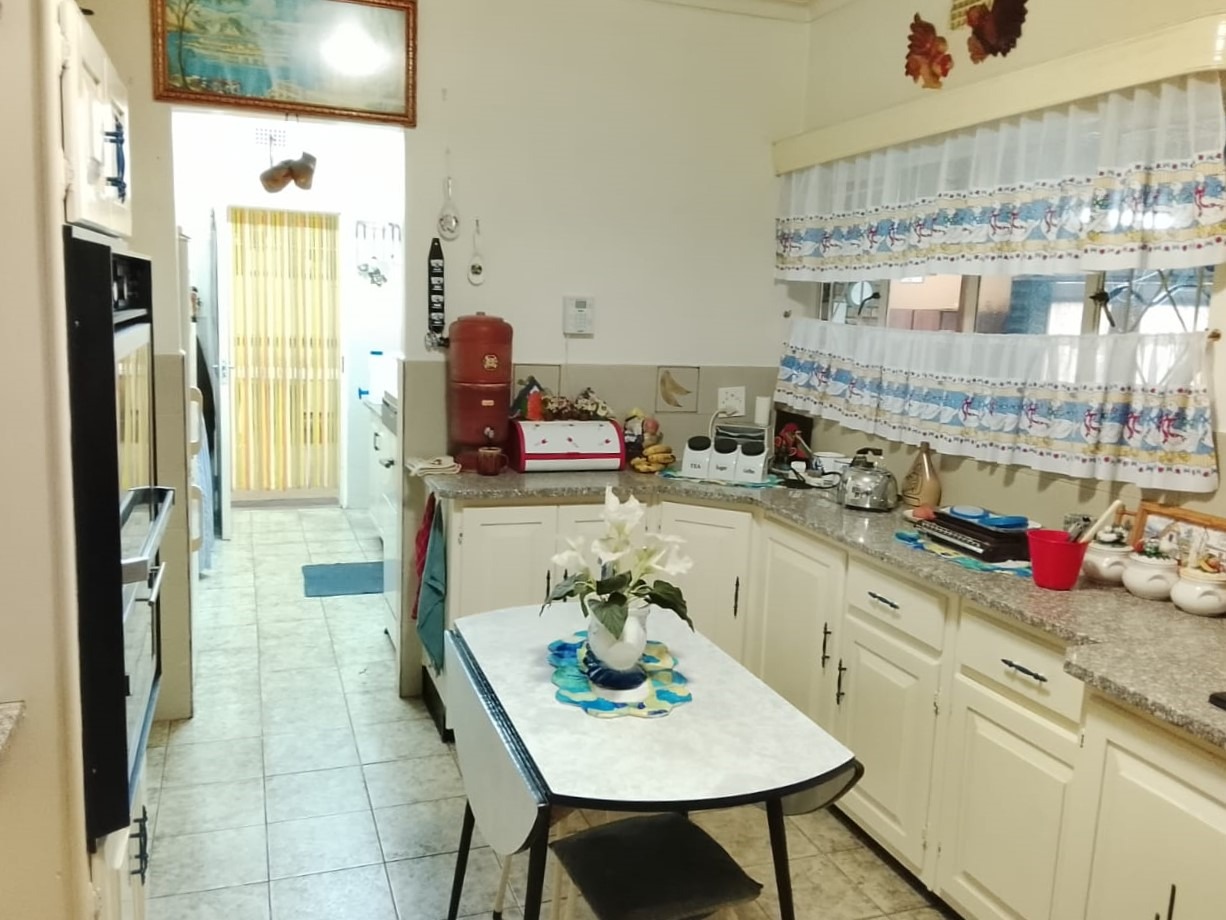A passage leads to four well-sized bedrooms, all fitted with built-in cupboards. The master bedroom boasts a full en-suite bathroom, while a second bathroom services the remaining bedrooms.