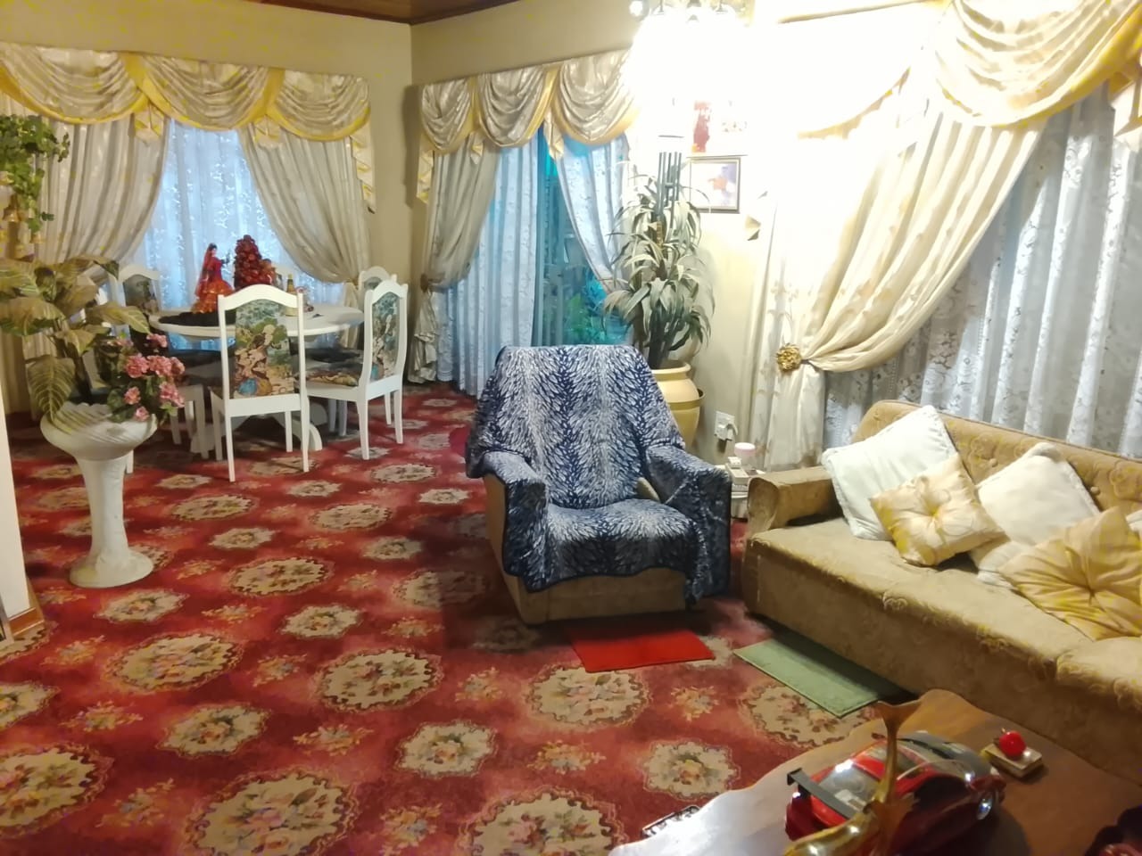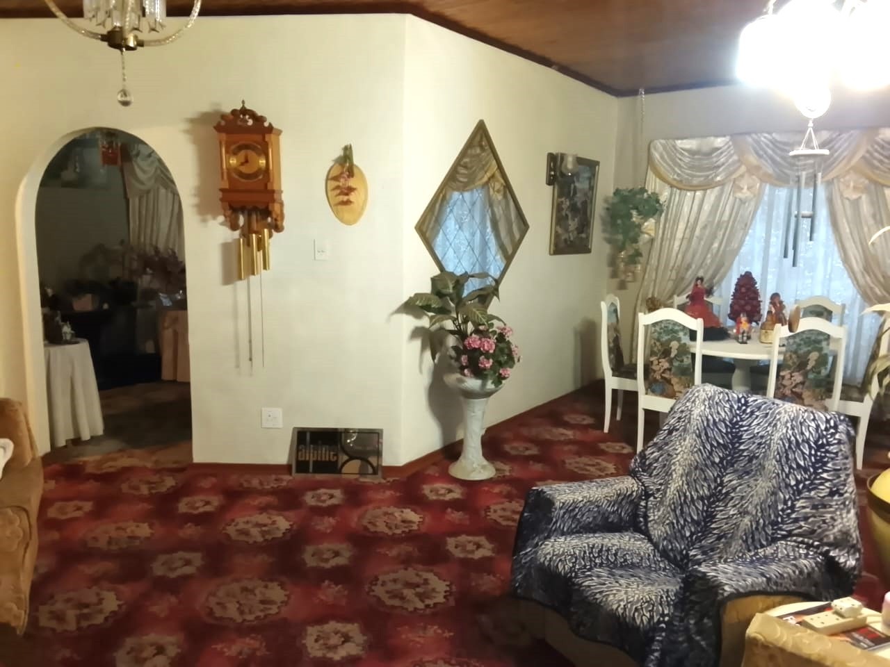 Outside, the property includes a double garage, a double carport, and an additional single carport that accommodates two vehicles. The established garden features a charming koi fish pond and a borehole for added convenience.