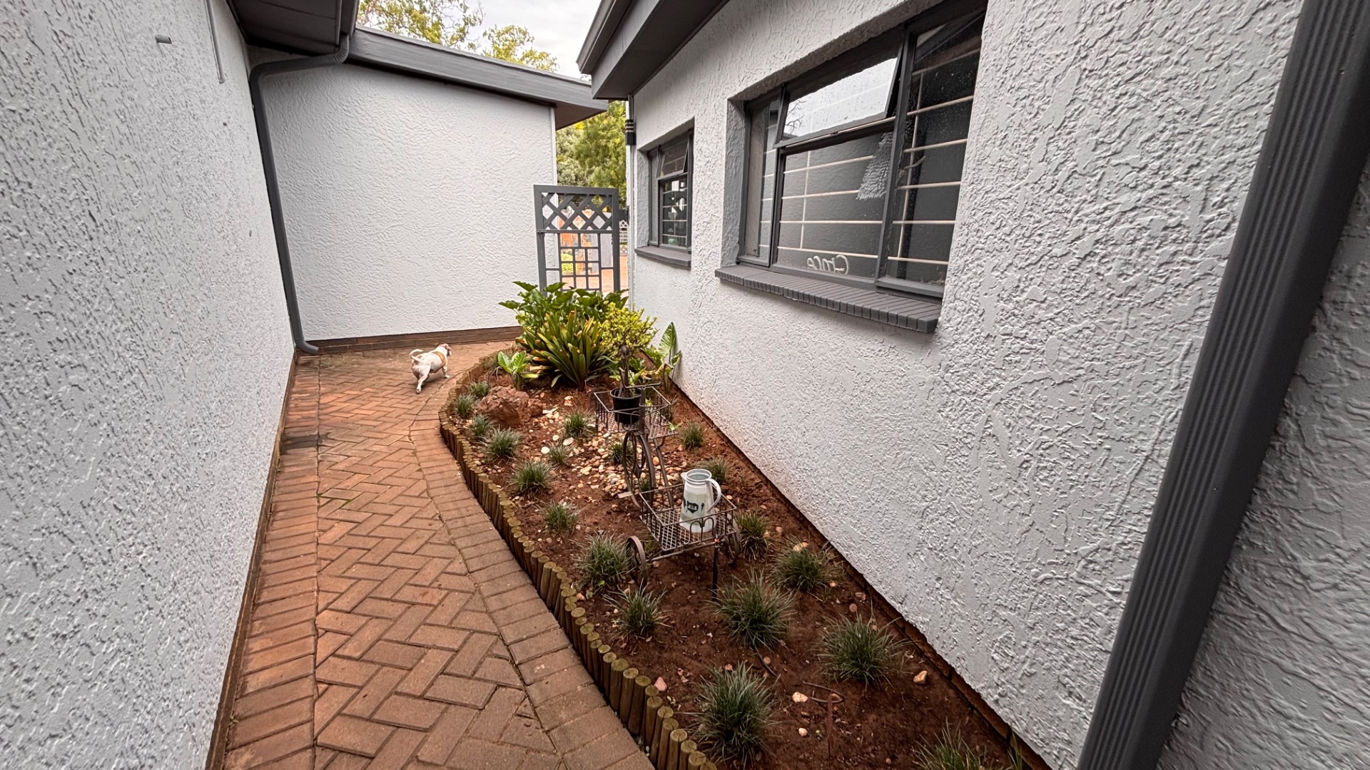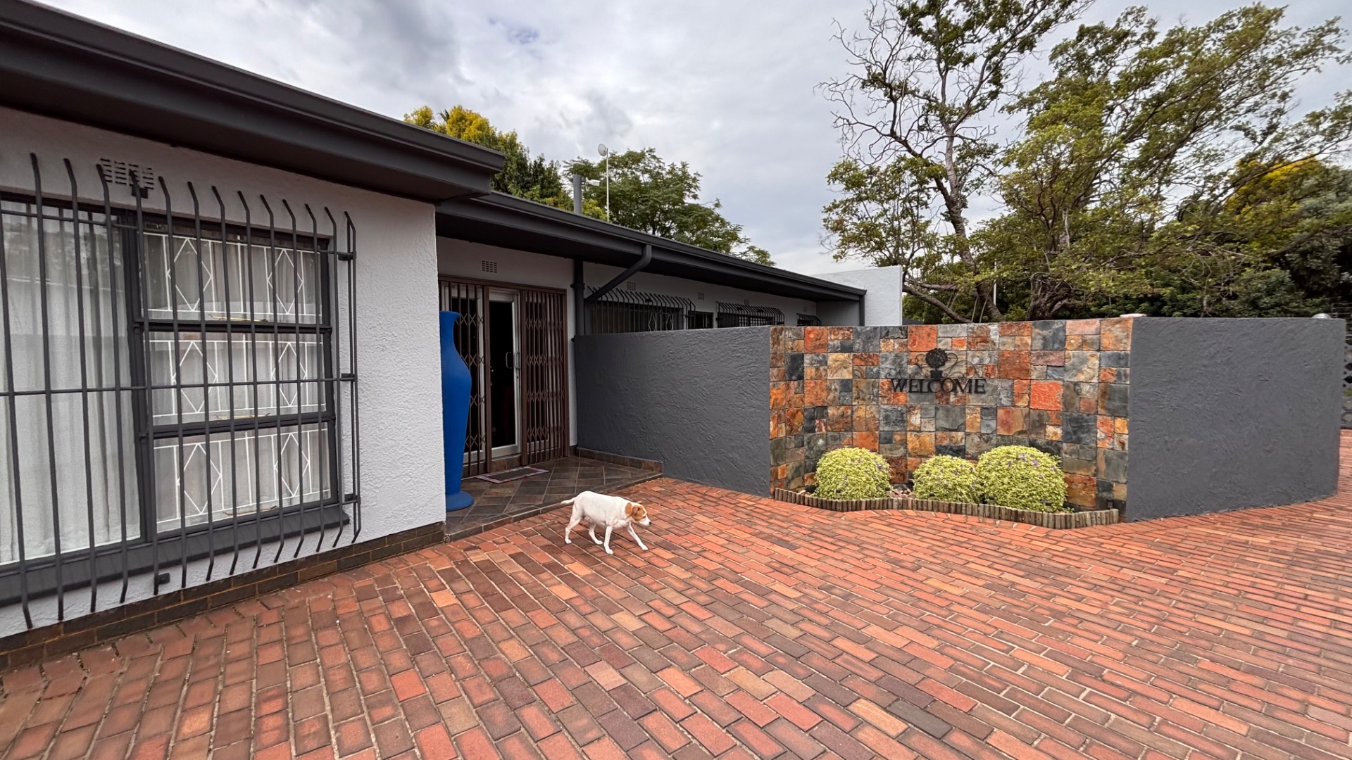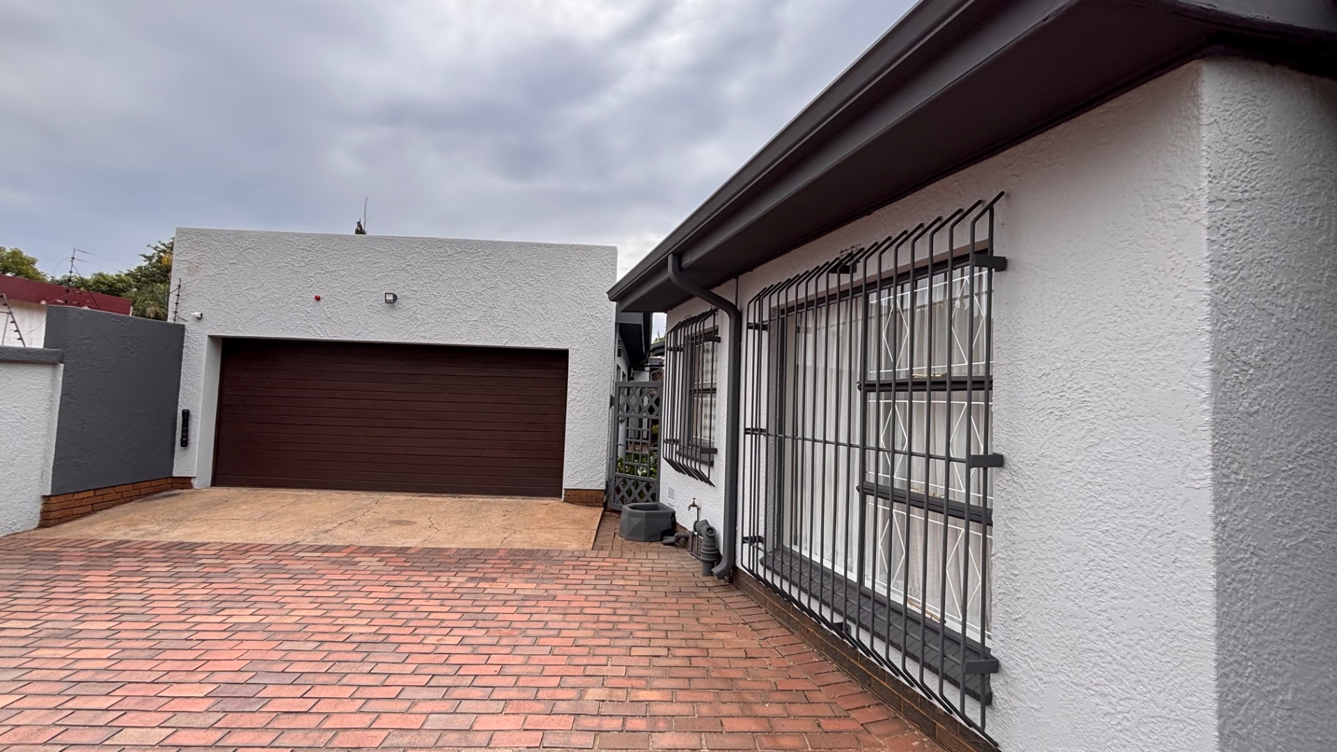 Discover this well-maintained residential property located in the desirable suburb of Vanderbijlpark SW 5, Vanderbijlpark, South Africa. The home presents a welcoming kerb appeal with its fresh-looking textured white paint, modern dark trim, and a mix of brick and concrete paving leading to ample off-street parking. Robust security features are immediately evident, including extensive burglar bars, electric fencing, and a visible security camera, ensuring peace of mind.