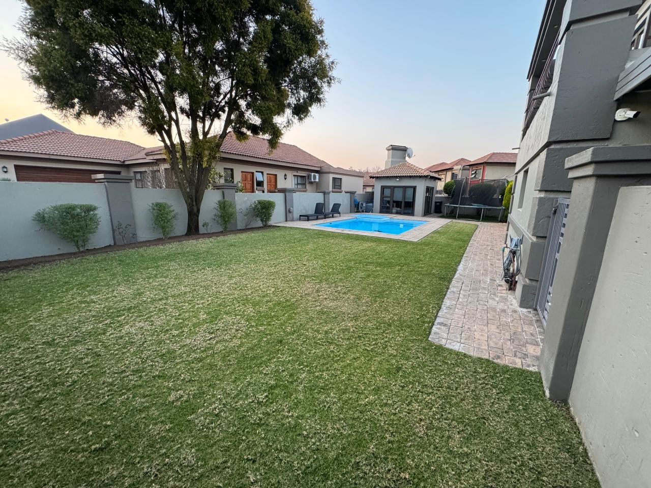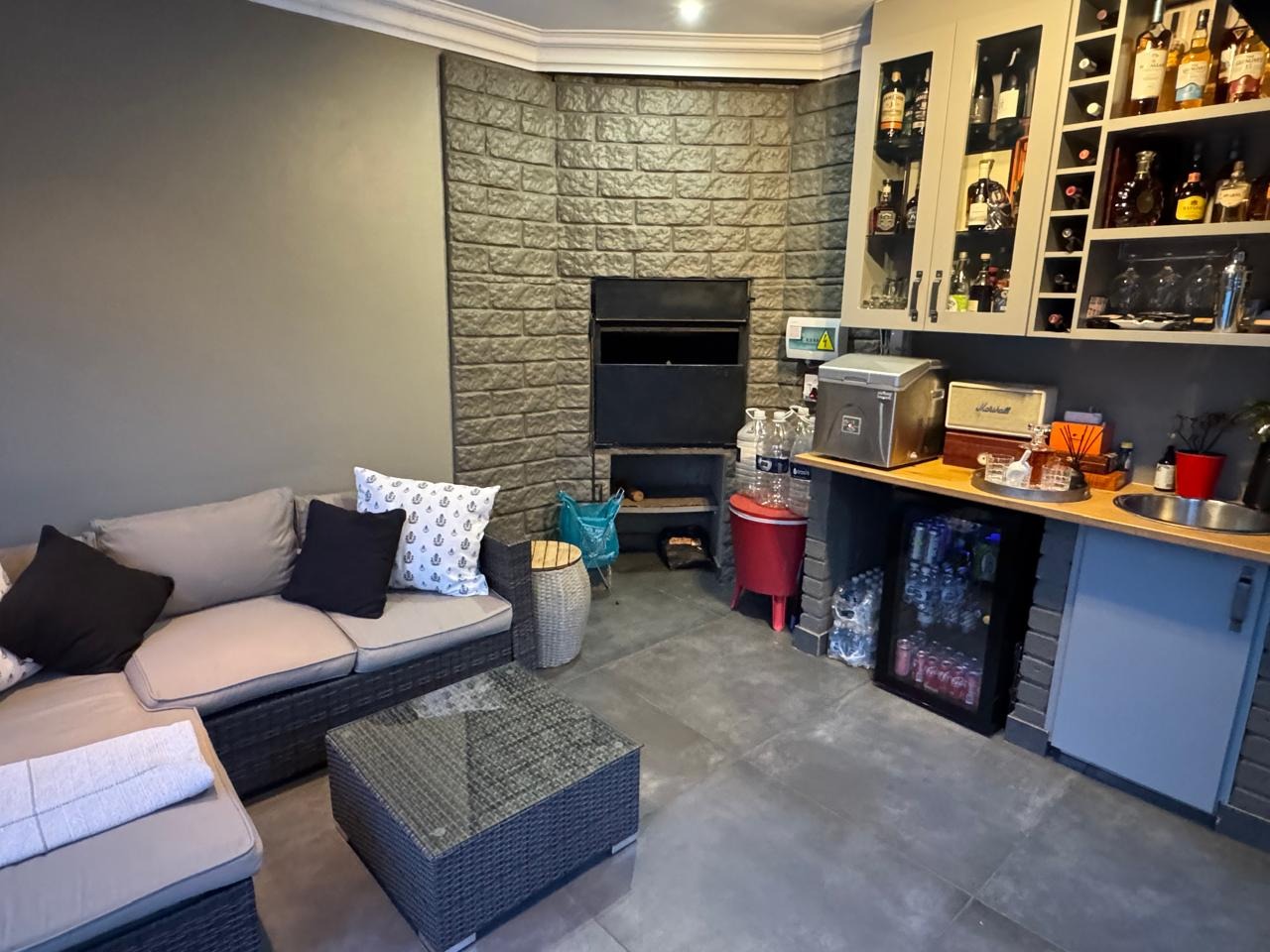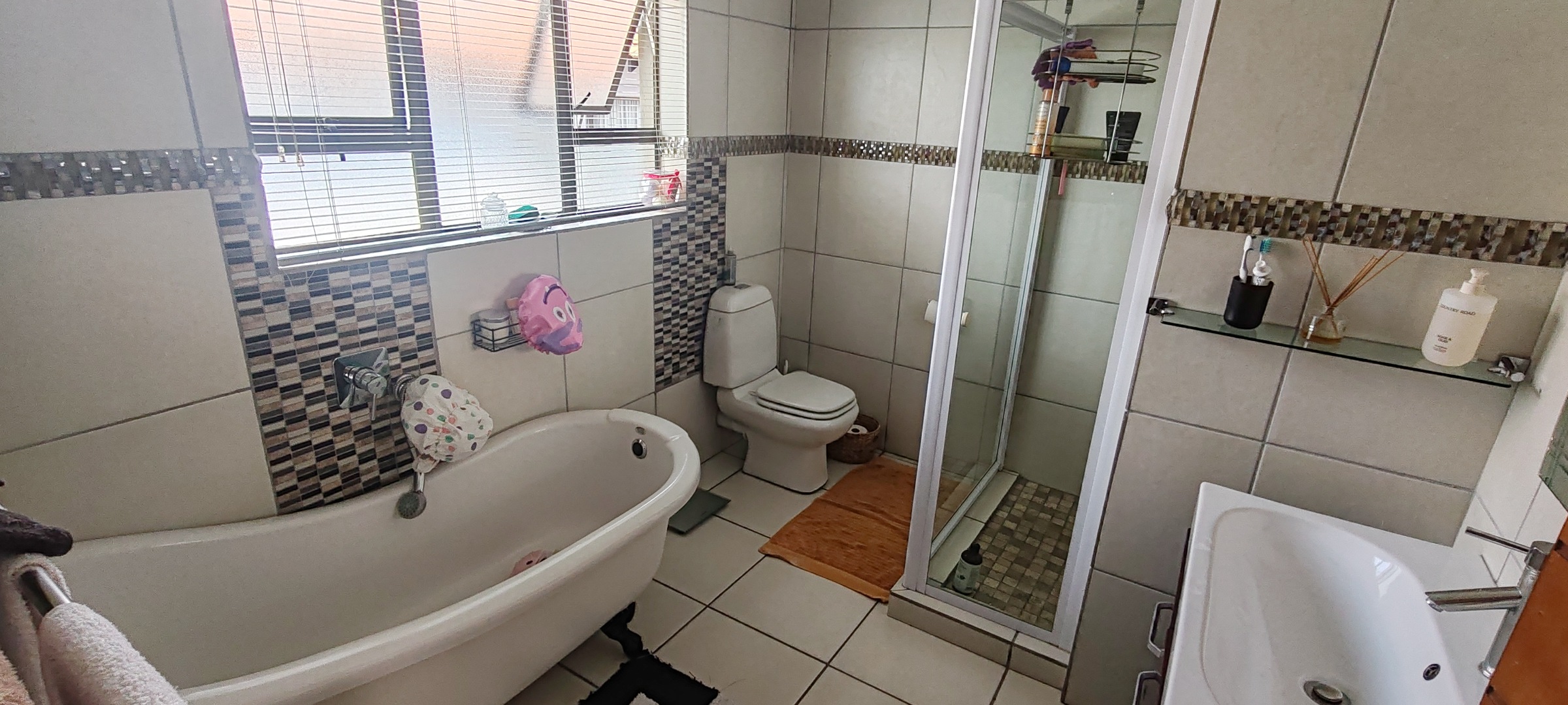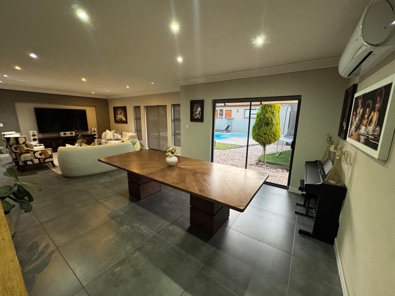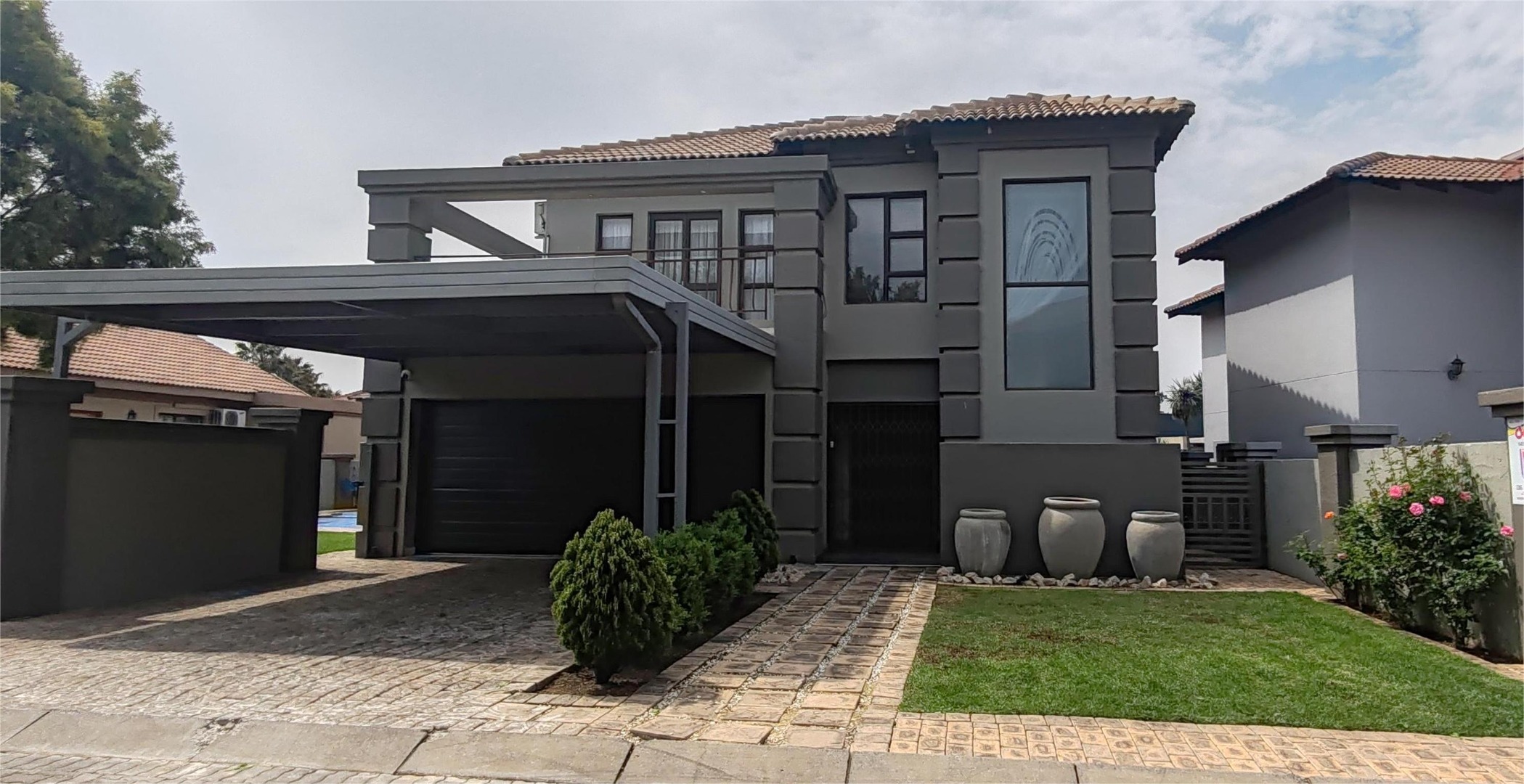 Discover modern living in this exquisite two-story residence, perfectly situated within a secure estate in Vanderbijlpark SW 5, Vanderbijlpark. Boasting a contemporary grey exterior and a well-maintained front garden, this home offers excellent kerb appeal. The property features a practical paved driveway leading to a double garage and an additional double carport, providing ample secure parking for up to four vehicles. Step inside to an inviting entrance hall that flows seamlessly into the spacious, open-plan living and dining areas. These zones are designed for comfort and entertaining, featuring modern large-format floor tiles, recessed lighting, and air conditioning for climate control. Large sliding glass doors connect the interior to the outdoor spaces, bathing the rooms in natural light. The modern kitchen is a chef's delight, equipped with light wood cabinetry, dark granite countertops, integrated appliances, and ample storage, including a built-in wine rack. This home offers three generously sized bedrooms, each designed for relaxation. Two of the bedrooms benefit from en-suite bathrooms, providing privacy and convenience, complemented by a stylish guest toilet. The bedrooms feature modern decor, built-in storage, air conditioning, and access to a balcony, enhancing the sense of space and light. The bathrooms are well-appointed, with one featuring both a separate glass-enclosed shower and a freestanding bathtub. Outdoor living is a highlight, with a private swimming pool and a well-maintained garden, perfect for leisure and entertaining. A built-in braai room extends your entertainment options. The property also includes a dedicated study, ideal for remote work or quiet contemplation, and is pet-friendly. With an erf size of 520 sqm and a floor size of 180 sqm, this home offers comfortable living. Security is paramount within this security estate, featuring 24-hour security, an access gate, alarm system, electric fencing, and CCTV surveillance, ensuring peace of mind for residents. This property combines modern design, practical features, and robust security in a desirable location. Key Features: * 3 Bedrooms, 2 Bathrooms (2 En-suite) & Guest Toilet * Open-Plan Living & Dining Areas * Modern Kitchen with Granite Countertops * Private Swimming Pool & Garden * Built-in Braai Room * 4 Garages & Carport * Air Conditioning & Balcony * Dedicated Study * Security Estate with 24-Hour Security, Alarm, CCTV * Pet-Friendly