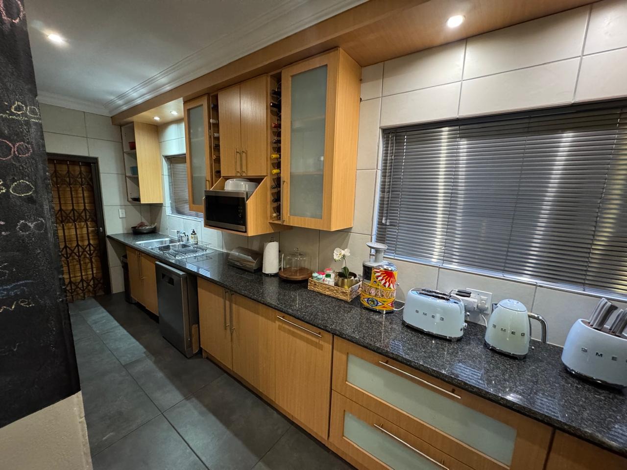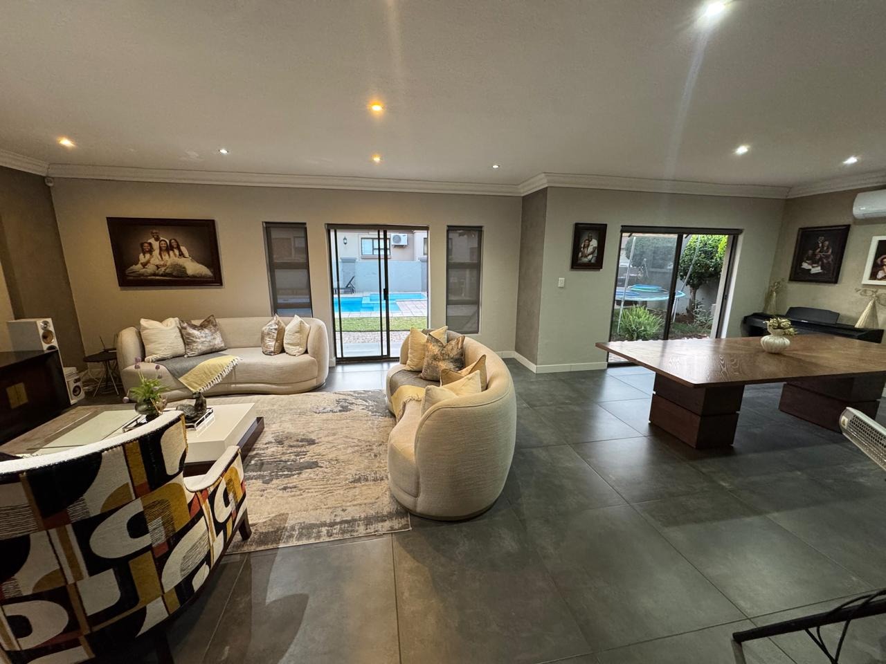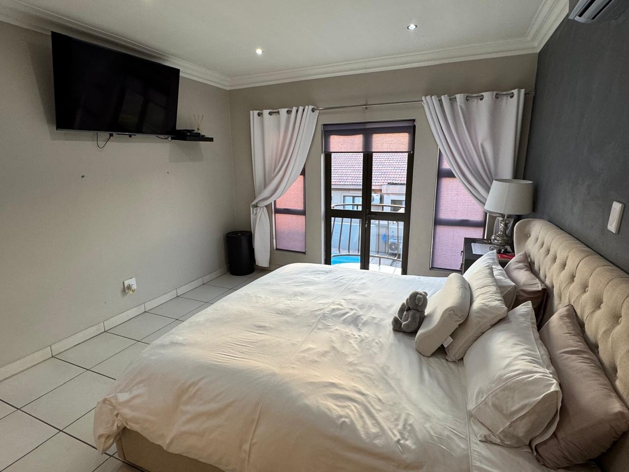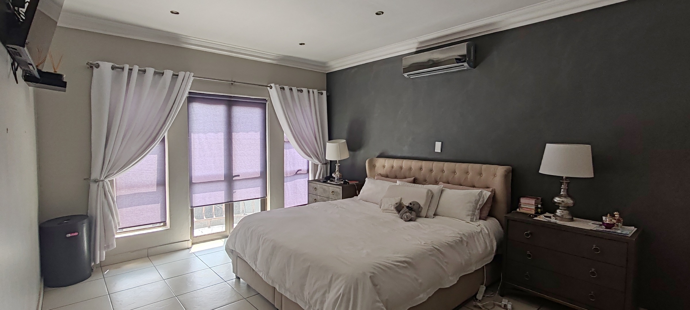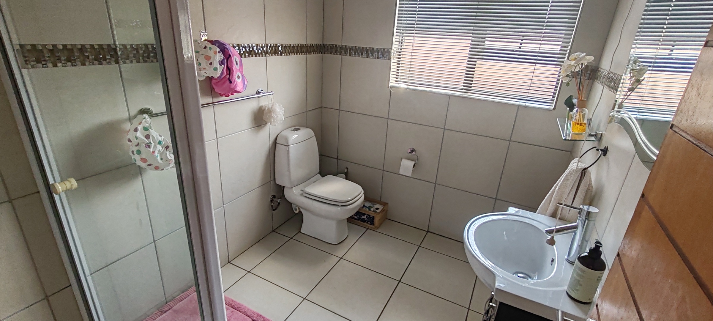 Discover modern living in this exquisite two-story residence, perfectly situated within a secure estate in Vanderbijlpark SW 5, Vanderbijlpark. Boasting a contemporary grey exterior and a well-maintained front garden, this home offers excellent kerb appeal. The property features a practical paved driveway leading to a double garage and an additional double carport, providing ample secure parking for up to four vehicles. Step inside to an inviting entrance hall that flows seamlessly into the spacious, open-plan living and dining areas. These zones are designed for comfort and entertaining, featuring modern large-format floor tiles, recessed lighting, and air conditioning for climate control. Large sliding glass doors connect the interior to the outdoor spaces, bathing the rooms in natural light. The modern kitchen is a chef's delight, equipped with light wood cabinetry, dark granite countertops, integrated appliances, and ample storage, including a built-in wine rack. This home offers three generously sized bedrooms, each designed for relaxation. Two of the bedrooms benefit from en-suite bathrooms, providing privacy and convenience, complemented by a stylish guest toilet. The bedrooms feature modern decor, built-in storage, air conditioning, and access to a balcony, enhancing the sense of space and light. The bathrooms are well-appointed, with one featuring both a separate glass-enclosed shower and a freestanding bathtub. Outdoor living is a highlight, with a private swimming pool and a well-maintained garden, perfect for leisure and entertaining. A built-in braai room extends your entertainment options. The property also includes a dedicated study, ideal for remote work or quiet contemplation, and is pet-friendly. With an erf size of 520 sqm and a floor size of 180 sqm, this home offers comfortable living. Security is paramount within this security estate, featuring 24-hour security, an access gate, alarm system, electric fencing, and CCTV surveillance, ensuring peace of mind for residents. This property combines modern design, practical features, and robust security in a desirable location. Key Features: * 3 Bedrooms, 2 Bathrooms (2 En-suite) & Guest Toilet * Open-Plan Living & Dining Areas * Modern Kitchen with Granite Countertops * Private Swimming Pool & Garden * Built-in Braai Room * 4 Garages & Carport * Air Conditioning & Balcony * Dedicated Study * Security Estate with 24-Hour Security, Alarm, CCTV * Pet-Friendly