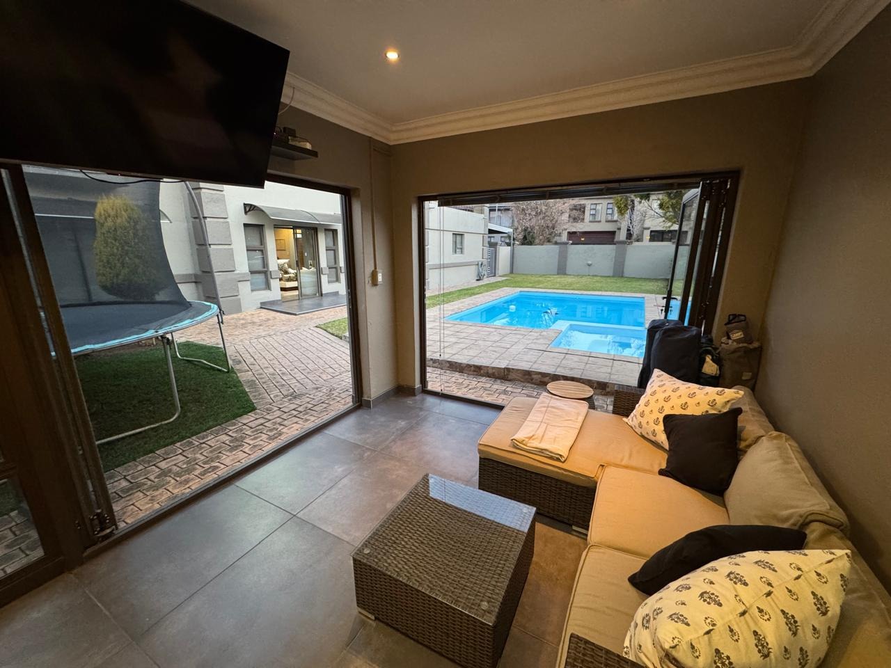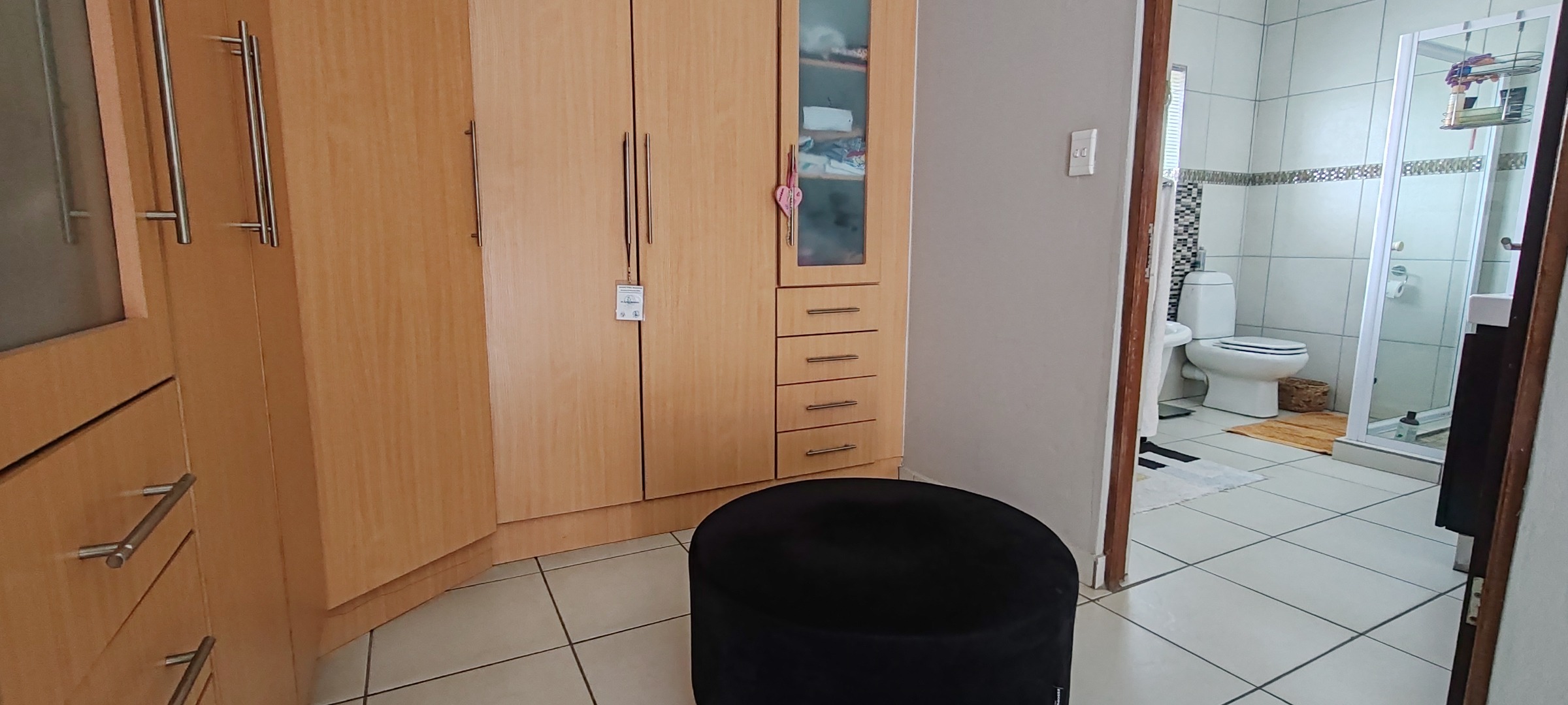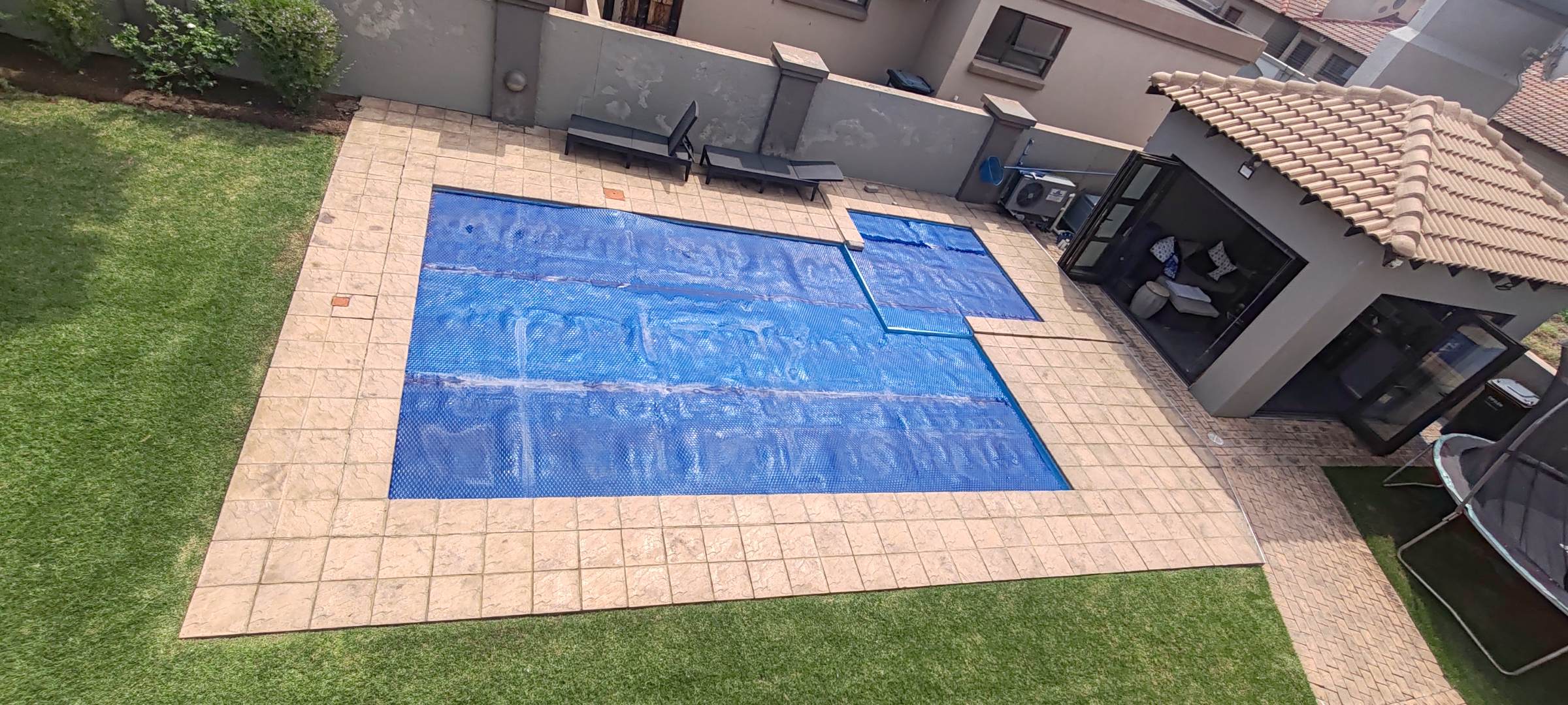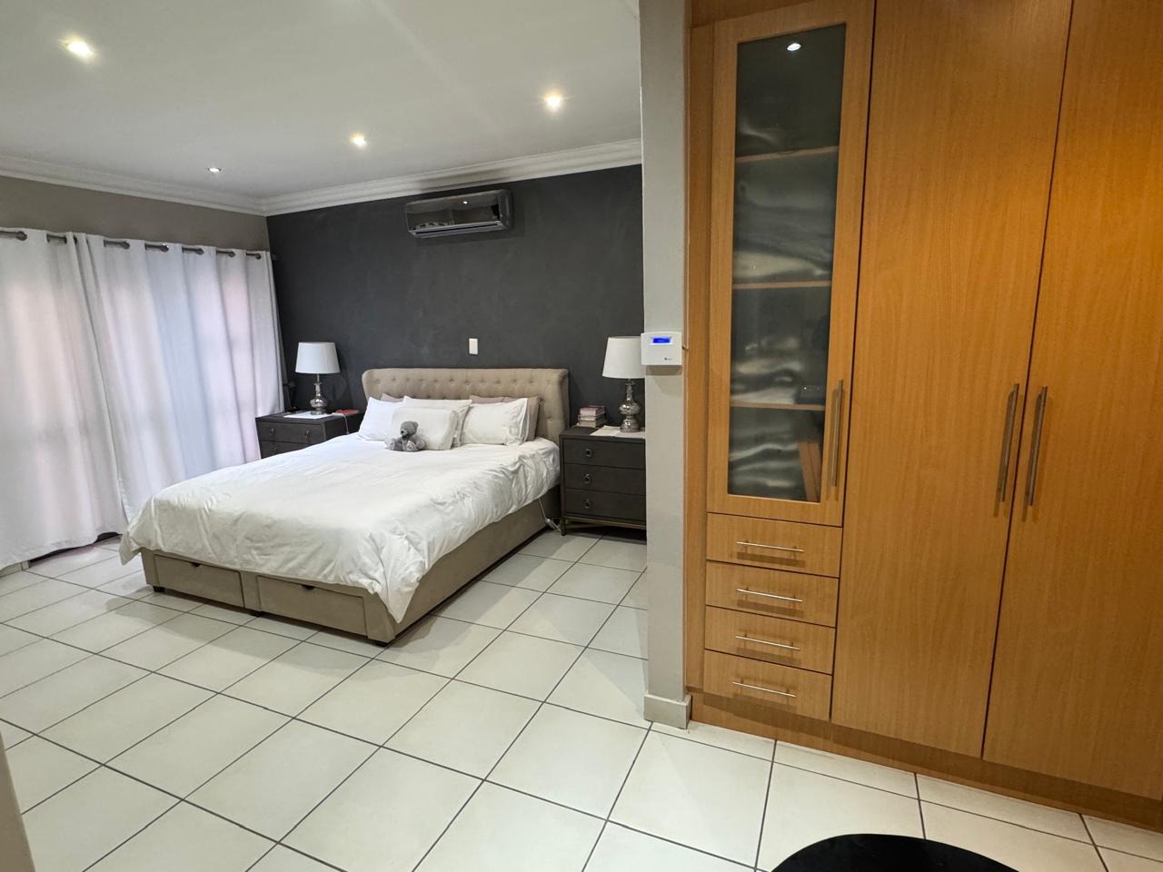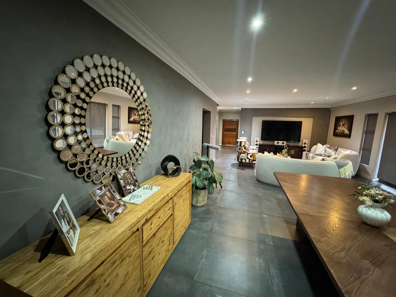 Discover modern living in this exquisite two-story residence, perfectly situated within a secure estate in Vanderbijlpark SW 5, Vanderbijlpark. Boasting a contemporary grey exterior and a well-maintained front garden, this home offers excellent kerb appeal. The property features a practical paved driveway leading to a double garage and an additional double carport, providing ample secure parking for up to four vehicles. Step inside to an inviting entrance hall that flows seamlessly into the spacious, open-plan living and dining areas. These zones are designed for comfort and entertaining, featuring modern large-format floor tiles, recessed lighting, and air conditioning for climate control. Large sliding glass doors connect the interior to the outdoor spaces, bathing the rooms in natural light. The modern kitchen is a chef's delight, equipped with light wood cabinetry, dark granite countertops, integrated appliances, and ample storage, including a built-in wine rack. This home offers three generously sized bedrooms, each designed for relaxation. Two of the bedrooms benefit from en-suite bathrooms, providing privacy and convenience, complemented by a stylish guest toilet. The bedrooms feature modern decor, built-in storage, air conditioning, and access to a balcony, enhancing the sense of space and light. The bathrooms are well-appointed, with one featuring both a separate glass-enclosed shower and a freestanding bathtub. Outdoor living is a highlight, with a private swimming pool and a well-maintained garden, perfect for leisure and entertaining. A built-in braai room extends your entertainment options. The property also includes a dedicated study, ideal for remote work or quiet contemplation, and is pet-friendly. With an erf size of 520 sqm and a floor size of 180 sqm, this home offers comfortable living. Security is paramount within this security estate, featuring 24-hour security, an access gate, alarm system, electric fencing, and CCTV surveillance, ensuring peace of mind for residents. This property combines modern design, practical features, and robust security in a desirable location. Key Features: * 3 Bedrooms, 2 Bathrooms (2 En-suite) & Guest Toilet * Open-Plan Living & Dining Areas * Modern Kitchen with Granite Countertops * Private Swimming Pool & Garden * Built-in Braai Room * 4 Garages & Carport * Air Conditioning & Balcony * Dedicated Study * Security Estate with 24-Hour Security, Alarm, CCTV * Pet-Friendly