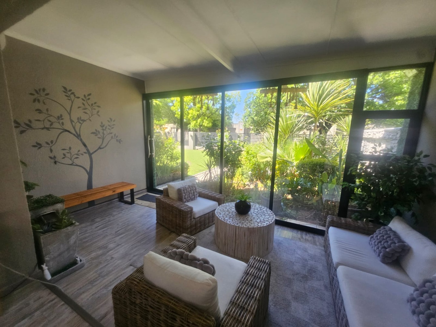 The flatlet mirrors the main house's quality, offering two bedrooms, two bathrooms, a living room, a kitchen, and a private entertainment area.