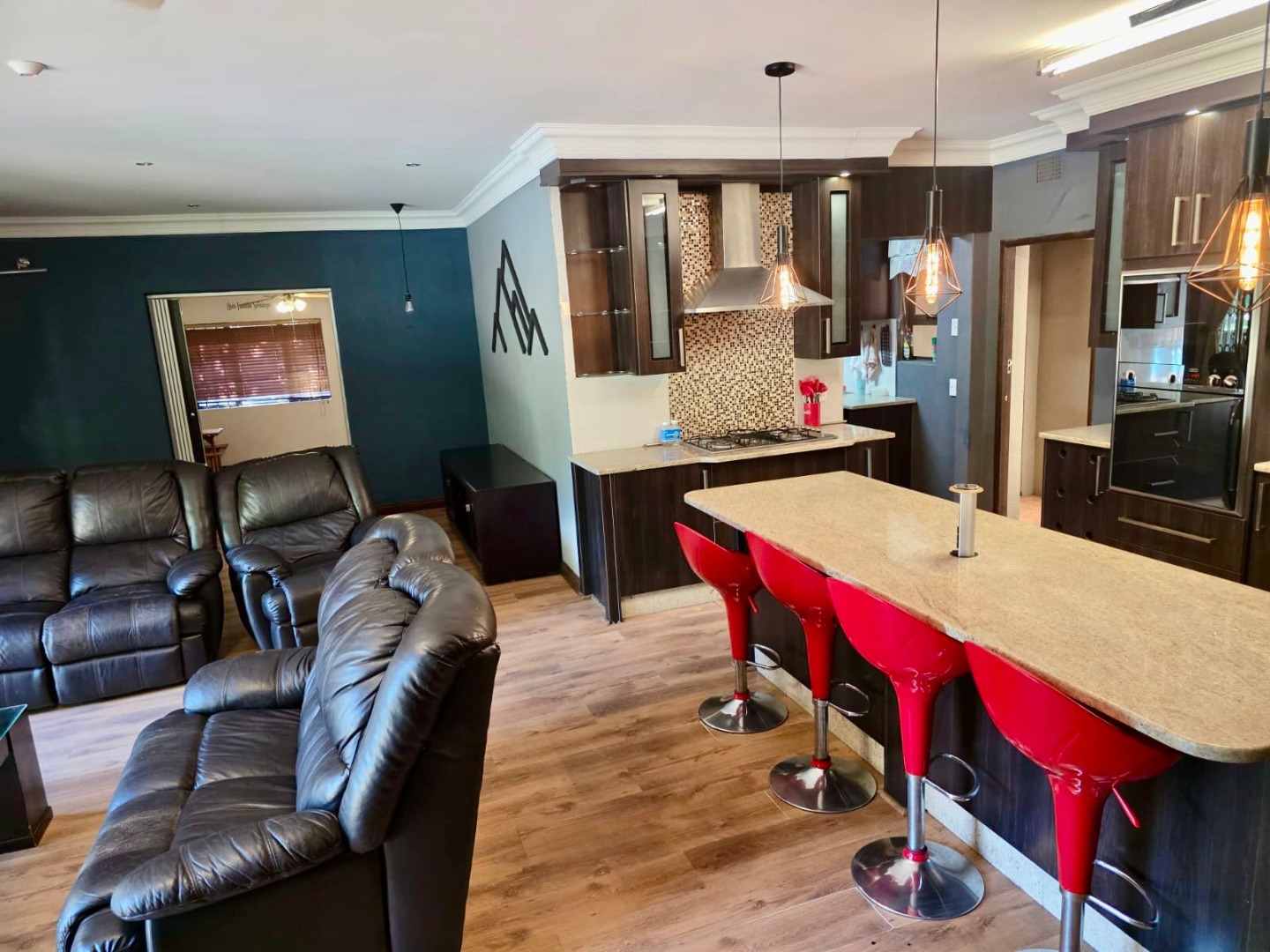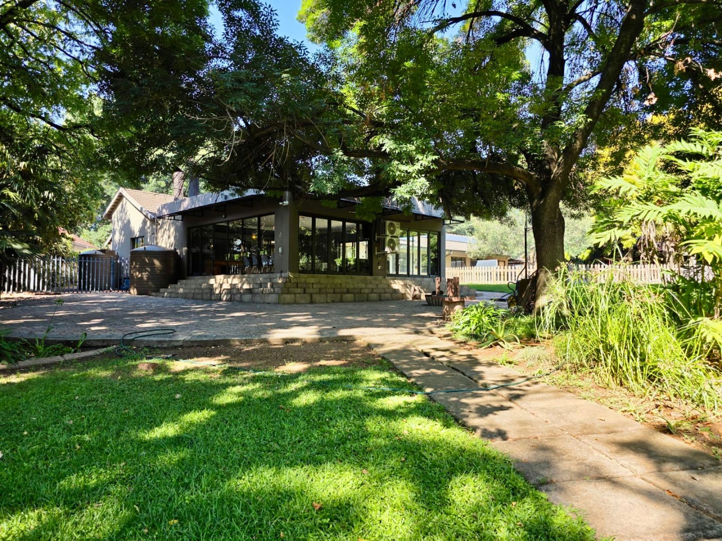 Discover this expansive family home situated in the established suburban area of Vanderbijlpark SW 5, South Africa. This property offers a generous erf size of 4144 sqm, providing ample space for comfortable living and outdoor enjoyment. The residence presents a welcoming kerb appeal with its well-maintained lawns and mature trees, setting a serene tone for what lies within.