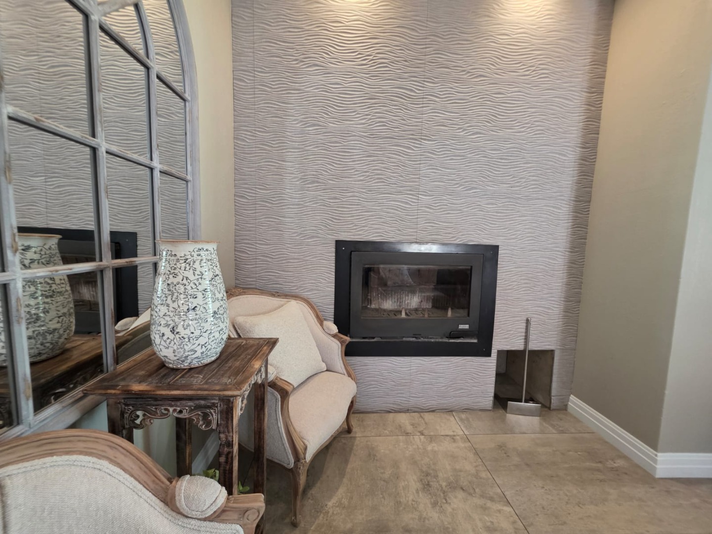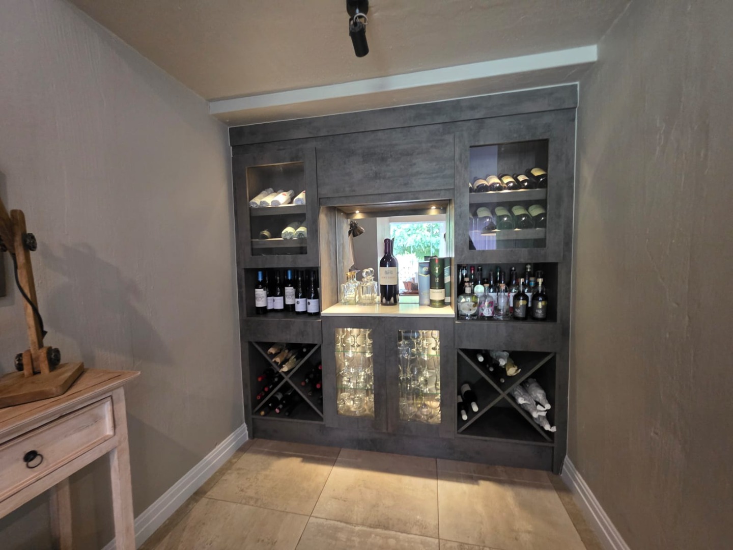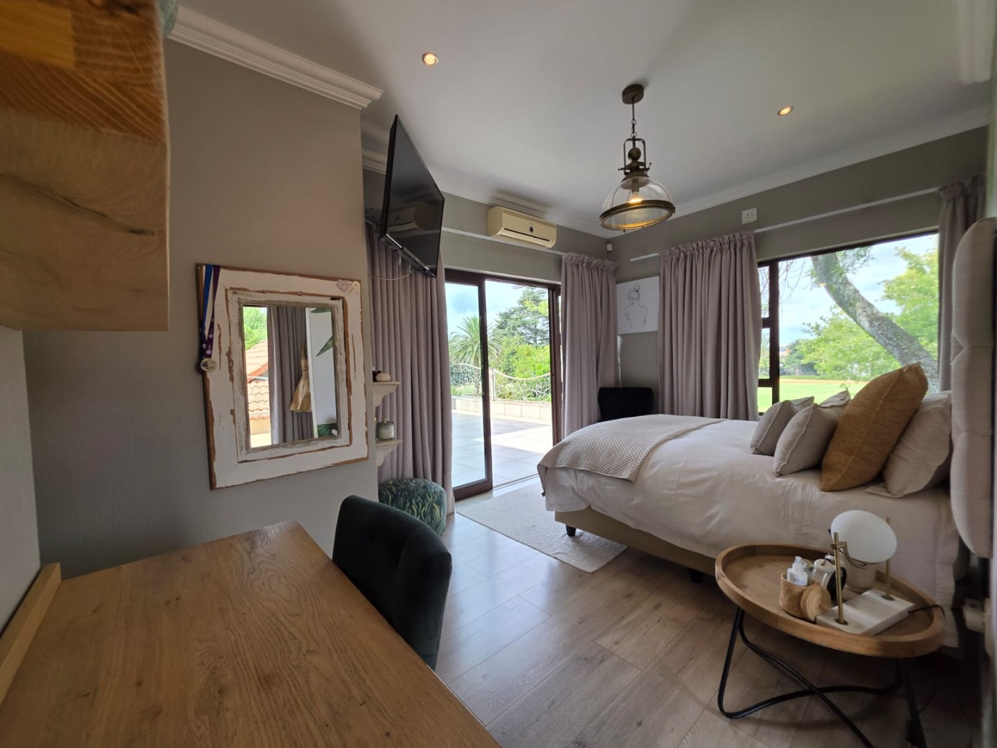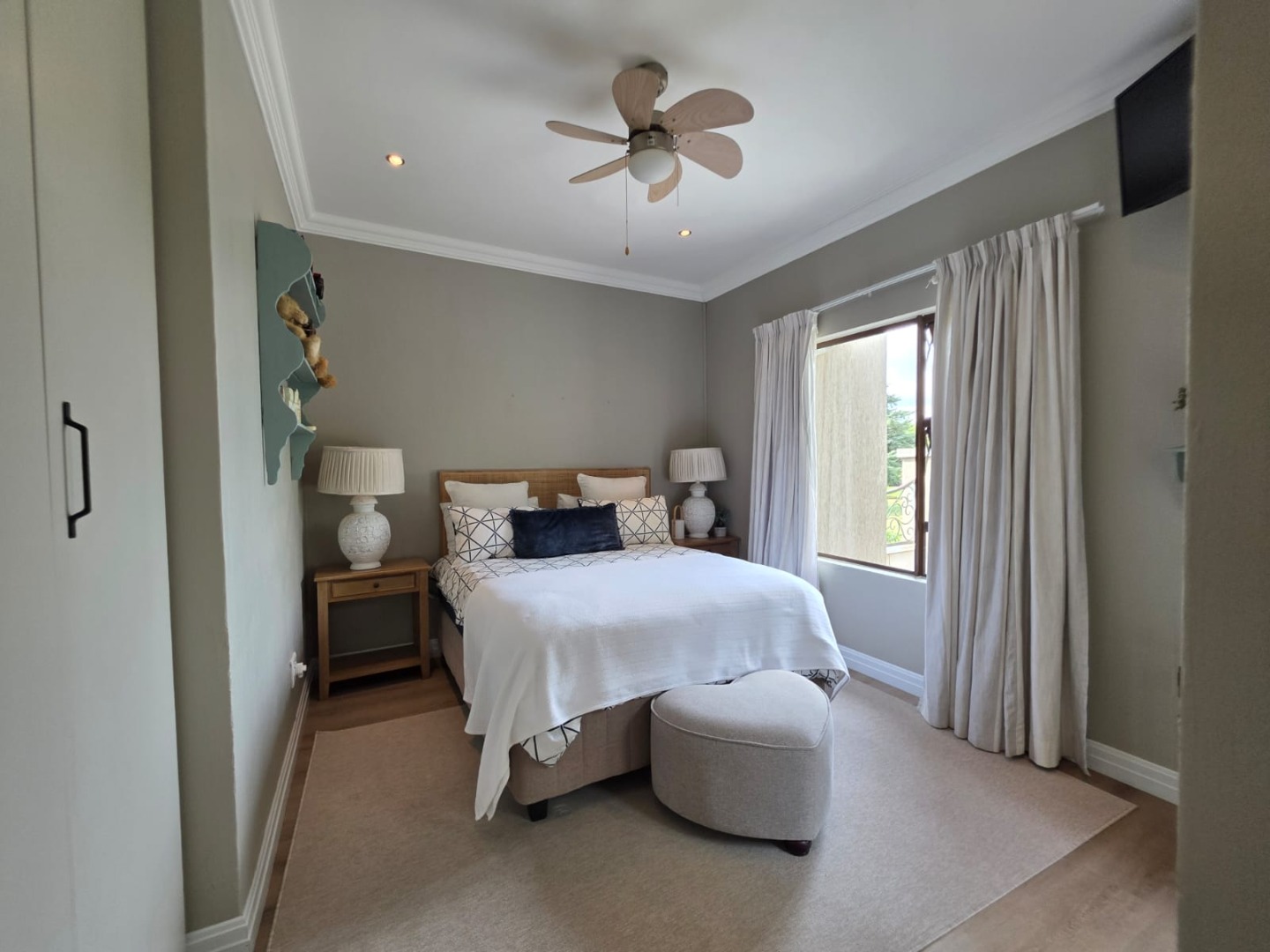 The outdoor areas are designed for ultimate enjoyment. A private swimming pool, complete with a wooden deck and retractable awning, provides a perfect setting for leisure. The spacious patio features built-in seating and a central fire pit, ideal for social gatherings. Enjoy scenic views from the balcony, enhancing the indoor-outdoor living experience. Amenities include a private gym, 2 built-in braais (1 wood and 1 gas) as well as a winter braai room and a wine room, a cozy fireplace, and three garages, ensuring convenience and luxury.