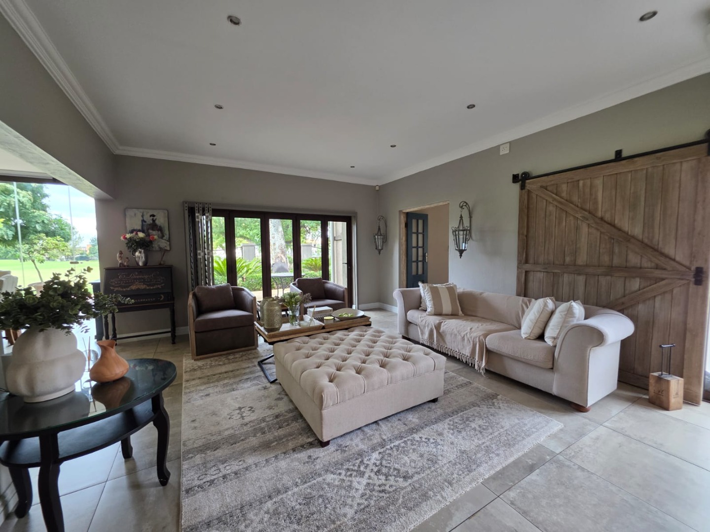 This exceptional 5-bedroom residence is situated within a prestigious golf estate in Vanderbijlpark SW 5, offering a blend of modern design and comfortable living. The property presents an inviting kerb appeal, hinting at the spacious interiors and luxurious outdoor amenities within.