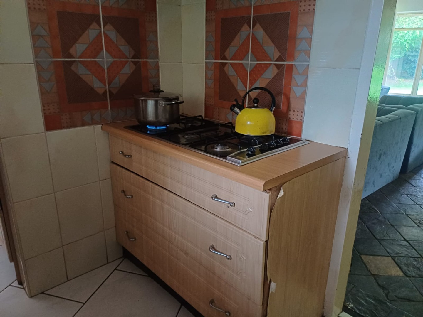 Outdoor living is enhanced by the expansive garden, complete with an irrigation system and paved areas. The property includes two garages and additional parking space, ensuring convenience for residents and guests. Outside toilets are also a practical addition. This property is ideal for those looking to invest in a home they can transform into their dream space.