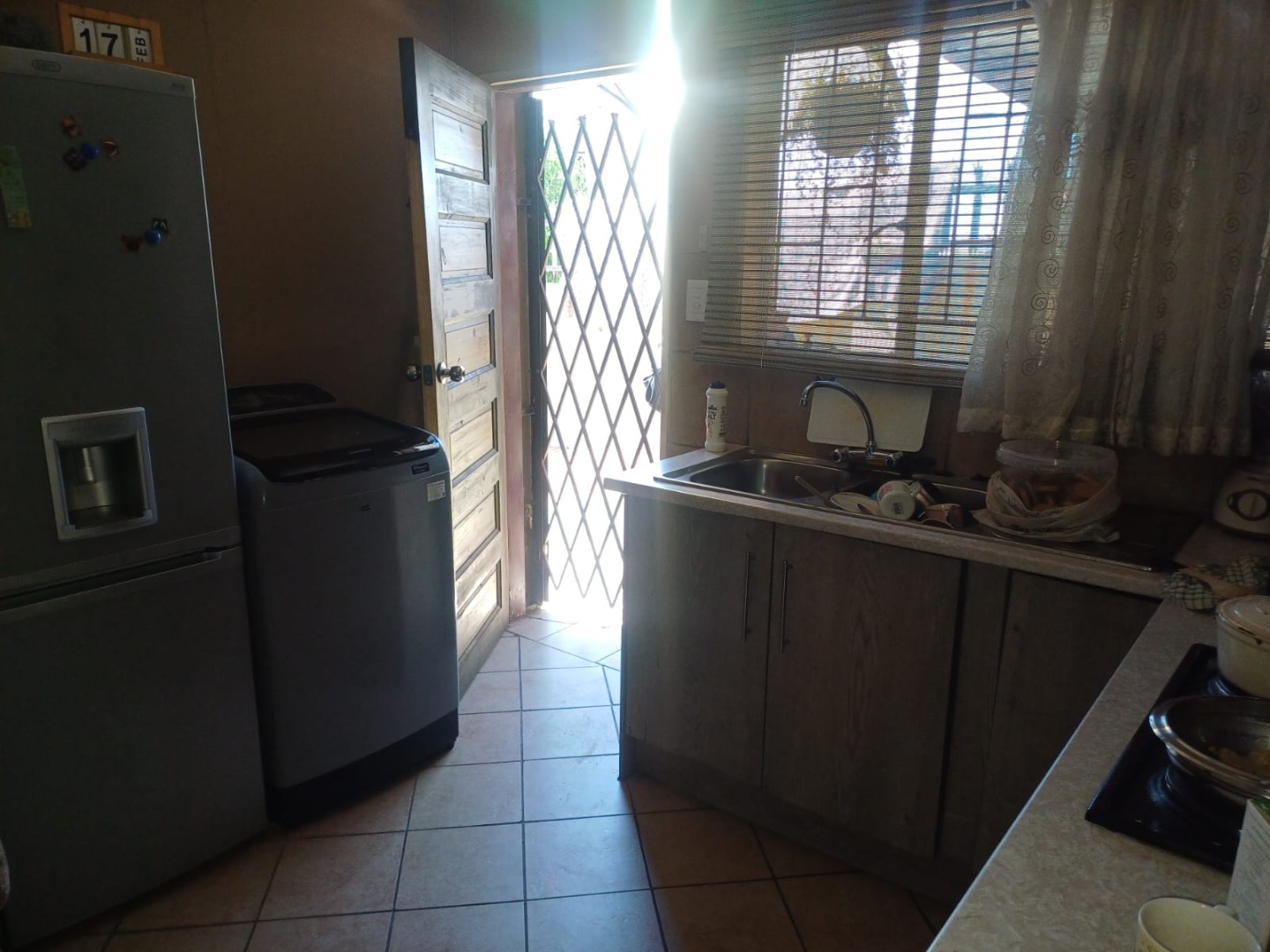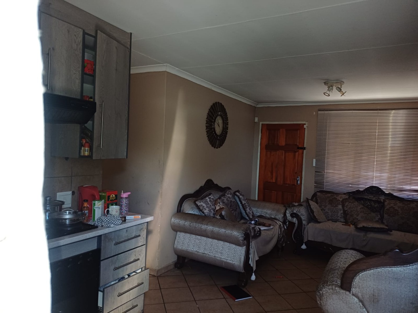 Step inside to a functional layout designed for comfortable living. The home includes a dedicated lounge area, perfect for relaxation. The kitchen is a highlight, boasting modern grey cabinetry, an integrated hob, and an oven, providing a contemporary space for culinary activities. Tiled flooring extends throughout these areas, offering durability and ease of maintenance.