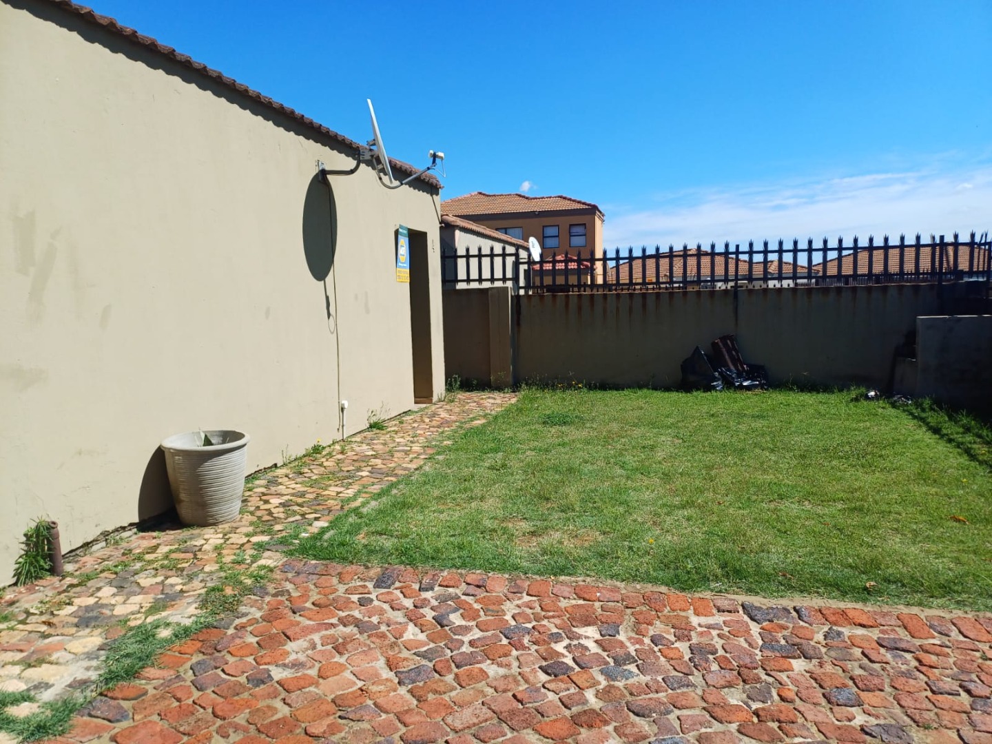 Discover this inviting 3-bedroom, 2-bathroom residence situated on a 247 sqm erf in the established Bedworth Park, Vereeniging. The property presents a welcoming exterior with a private outdoor space, featuring a lawn area and practical paved pathways. Security is enhanced by perimeter fencing with spikes and robust burglar bars on windows, ensuring peace of mind for residents.