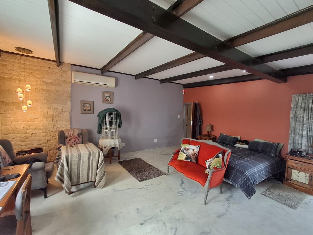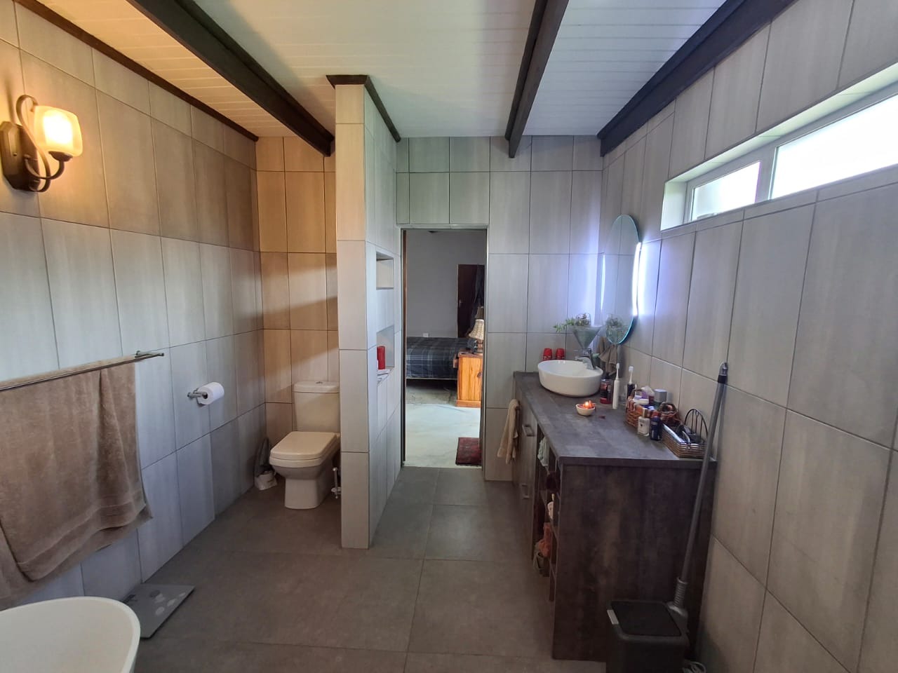 Discover this spacious residential property for sale in Duncanville, Vereeniging, offering a comfortable suburban lifestyle with convenient access to local amenities. This home spans a generous 400 sqm on a substantial 2271 sqm erf, designed for modern living. The interior boasts an inviting open-plan layout, seamlessly connecting the lounge, dining room, and a well-appointed kitchen. Unique architectural elements, such as exposed brick walls and distinctive exposed beam and plank ceilings, add character, while sliding doors and special doors enhance the aesthetic. For year-round comfort, the home is equipped with air conditioning and a cozy fireplace. Practical features include a dedicated laundry area and ample storage solutions, featuring custom-built shelving and modern white cabinetry. Fibre connectivity ensures high-speed internet access. Accommodation comprises three comfortable bedrooms and two bathrooms, including a private en-suite. The bathrooms are designed with modern fixtures, featuring a freestanding tub, a glass-enclosed shower with a rainfall showerhead, and unique decorative tiling, all bathed in natural light from high transom windows. Each bedroom benefits from built-in cupboards and ceiling fans, providing both storage and climate control. Outdoor living is a delight with a well-maintained garden and a welcoming patio, perfect for relaxation. The property also features a built-in braai and a dedicated braai room, ideal for entertaining guests. With parking space for six vehicles and a private driveway, convenience is assured. Pets are welcome, making this an ideal family home. Security is enhanced with an alarm system, an access gate, and a perimeter fence, offering peace of mind. Key Features: * 3 Bedrooms, 2 Bathrooms (1 en-suite) * Spacious 400 sqm Floor Size, 2271 sqm Erf * Open-plan living with Lounge, Dining Room, Kitchen * Patio, Garden, Built-in Braai, Braai Room * Ample Parking for 6 vehicles * Air Conditioning, Fireplace, Fibre Connectivity * Alarm System, Access Gate, Fenced Property * Laundry and Storage facilities * Pets Allowed