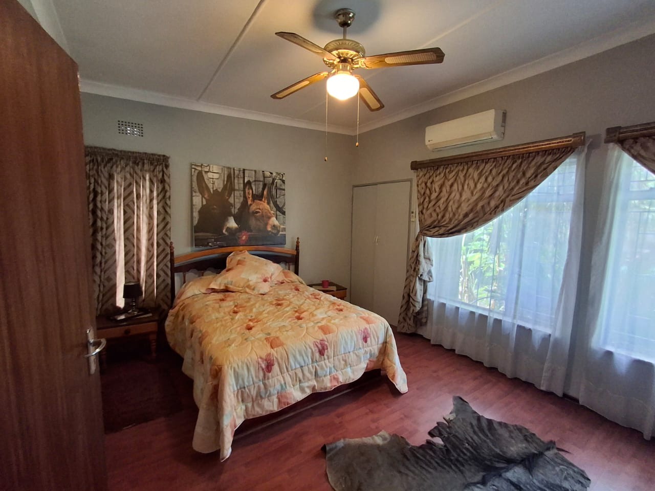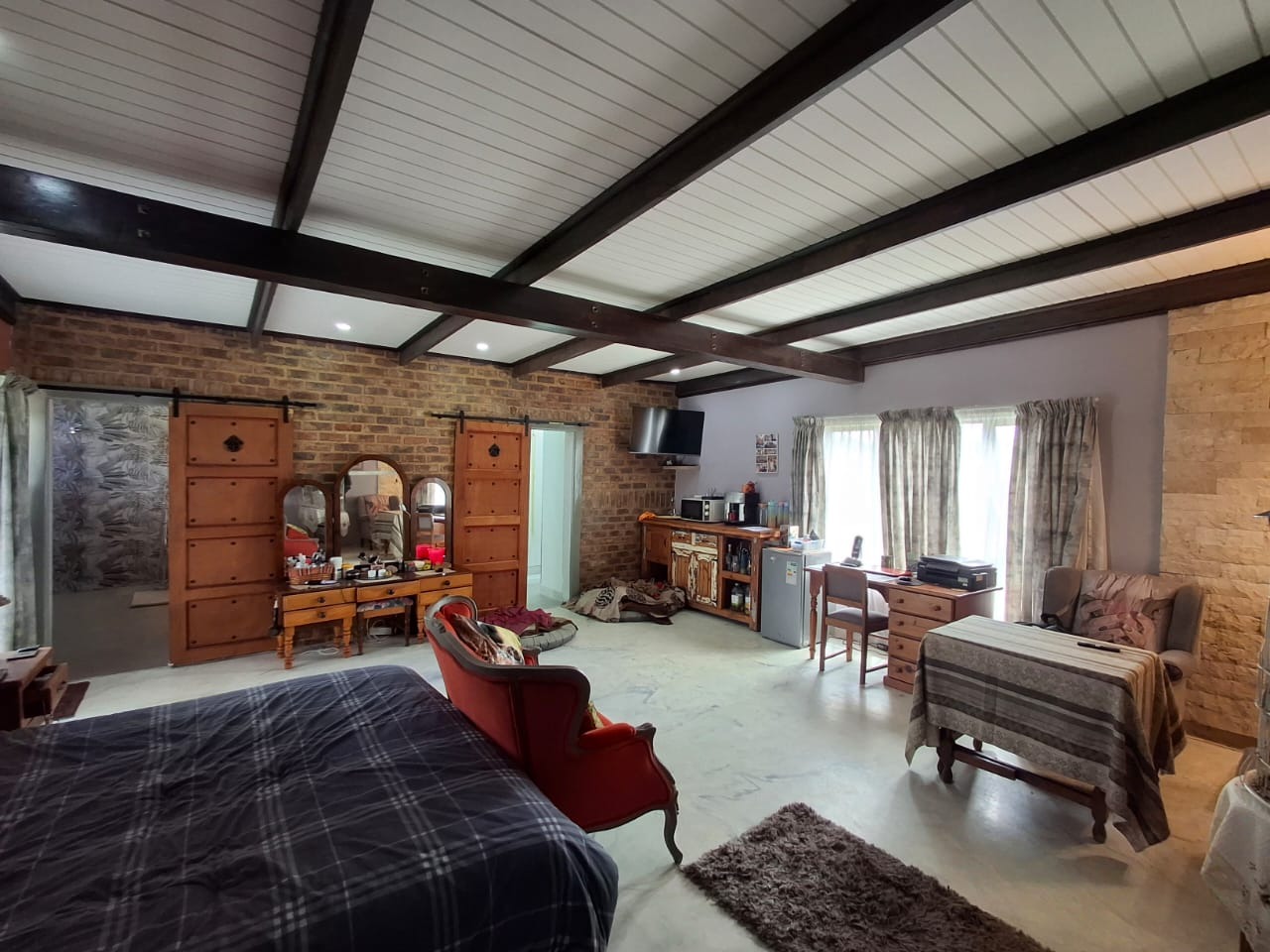 Discover this spacious residential property for sale in Duncanville, Vereeniging, offering a comfortable suburban lifestyle with convenient access to local amenities. This home spans a generous 400 sqm on a substantial 2271 sqm erf, designed for modern living. The interior boasts an inviting open-plan layout, seamlessly connecting the lounge, dining room, and a well-appointed kitchen. Unique architectural elements, such as exposed brick walls and distinctive exposed beam and plank ceilings, add character, while sliding doors and special doors enhance the aesthetic. For year-round comfort, the home is equipped with air conditioning and a cozy fireplace. Practical features include a dedicated laundry area and ample storage solutions, featuring custom-built shelving and modern white cabinetry. Fibre connectivity ensures high-speed internet access. Accommodation comprises three comfortable bedrooms and two bathrooms, including a private en-suite. The bathrooms are designed with modern fixtures, featuring a freestanding tub, a glass-enclosed shower with a rainfall showerhead, and unique decorative tiling, all bathed in natural light from high transom windows. Each bedroom benefits from built-in cupboards and ceiling fans, providing both storage and climate control. Outdoor living is a delight with a well-maintained garden and a welcoming patio, perfect for relaxation. The property also features a built-in braai and a dedicated braai room, ideal for entertaining guests. With parking space for six vehicles and a private driveway, convenience is assured. Pets are welcome, making this an ideal family home. Security is enhanced with an alarm system, an access gate, and a perimeter fence, offering peace of mind. Key Features: * 3 Bedrooms, 2 Bathrooms (1 en-suite) * Spacious 400 sqm Floor Size, 2271 sqm Erf * Open-plan living with Lounge, Dining Room, Kitchen * Patio, Garden, Built-in Braai, Braai Room * Ample Parking for 6 vehicles * Air Conditioning, Fireplace, Fibre Connectivity * Alarm System, Access Gate, Fenced Property * Laundry and Storage facilities * Pets Allowed