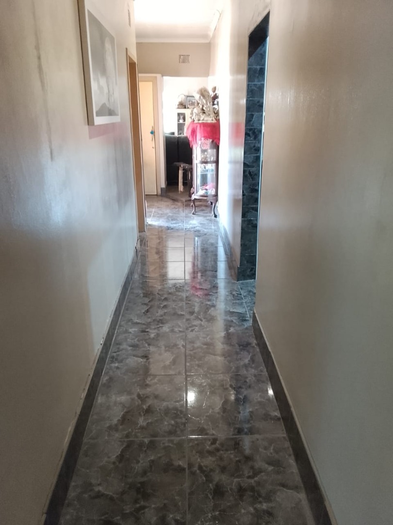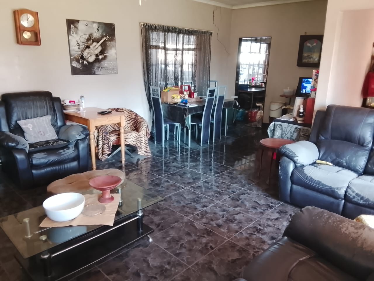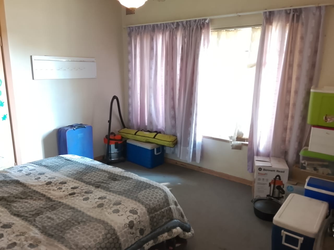 The interior boasts a spacious, open-plan lounge and dining area, creating an inviting flow for family gatherings. The functional, well-sized kitchen is a highlight, featuring ample built-in wooden cupboards and a stove, ready for culinary enthusiasts. A passage leads to three comfortable bedrooms and a full family bathroom (bath, shower, and hand basin), complemented by a separate toilet.