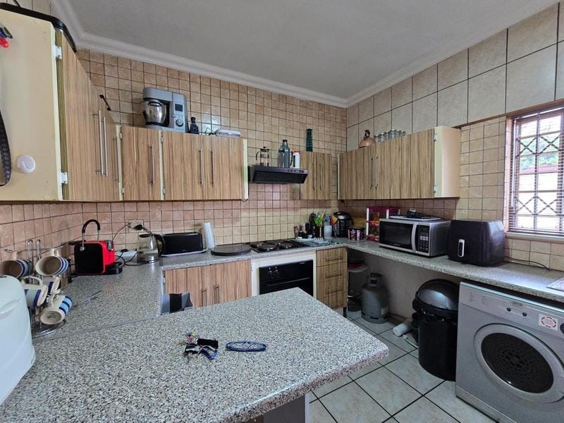This inviting 2-bedroom, 1-bathroom residence offers comfortable living within a secure complex in the desirable Three Rivers area of Vereeniging, South Africa. Upon entering, you are greeted by a functional layout designed for everyday convenience. The property features a dedicated lounge area, providing a versatile space for relaxation or entertaining. The kitchen is well-equipped with ample cabinet and counter space, including an island/breakfast bar, making meal preparation efficient. While presenting a classic aesthetic with tiled floors and walls, the kitchen remains highly practical, accommodating essential appliances. Air conditioning and ceiling fans are installed throughout key areas, ensuring year-round comfort. The home comprises two well-proportioned bedrooms, each offering a private retreat. These rooms benefit from natural light and include built-in wardrobes, providing essential storage solutions. For enhanced comfort, both bedrooms are fitted with air conditioning and ceiling fans. The single bathroom is fully tiled and features a shower stall, pedestal sink, and toilet, offering all necessary amenities. Security bars on windows in both the bedrooms and bathroom provide an added layer of safety and peace of mind. Externally, the property boasts a private garden area, perfect for outdoor enjoyment and relaxation, complemented by a small outdoor seating space. The convenience of a single garage ensures secure parking and additional storage. As part of a complex, residents benefit from an access gate, contributing to a sense of community and controlled entry. The multi-story building presents a neat, albeit traditional, kerb appeal with its cream-colored brick and red-tiled roof. Located in Three Rivers, Vereeniging, this property offers a suburban lifestyle with convenient access to local amenities and services. This established neighbourhood provides a tranquil setting while remaining connected to the broader Vereeniging community. Key Features: * 2 Bedrooms * 1 Bathroom * 1 Garage * 1 Lounge * Functional Kitchen * Air Conditioning & Ceiling Fans * Private Garden * Access Gate * Complex Living