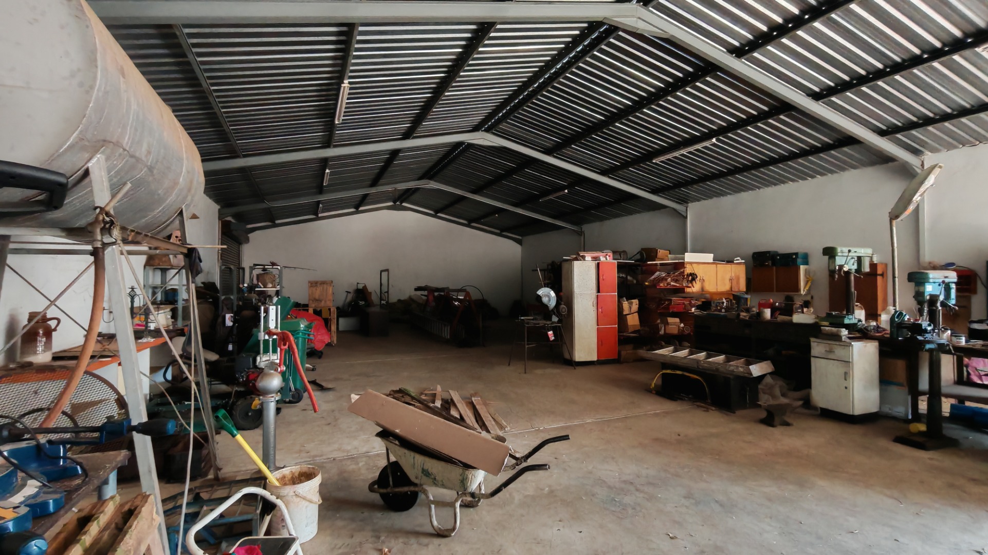 The property includes 8-vehicle garage space (4 per house), 4 carports plus an extra-high carport, a separate 500 sqm storeroom/workshop, with generator switch over, generator is excluded.