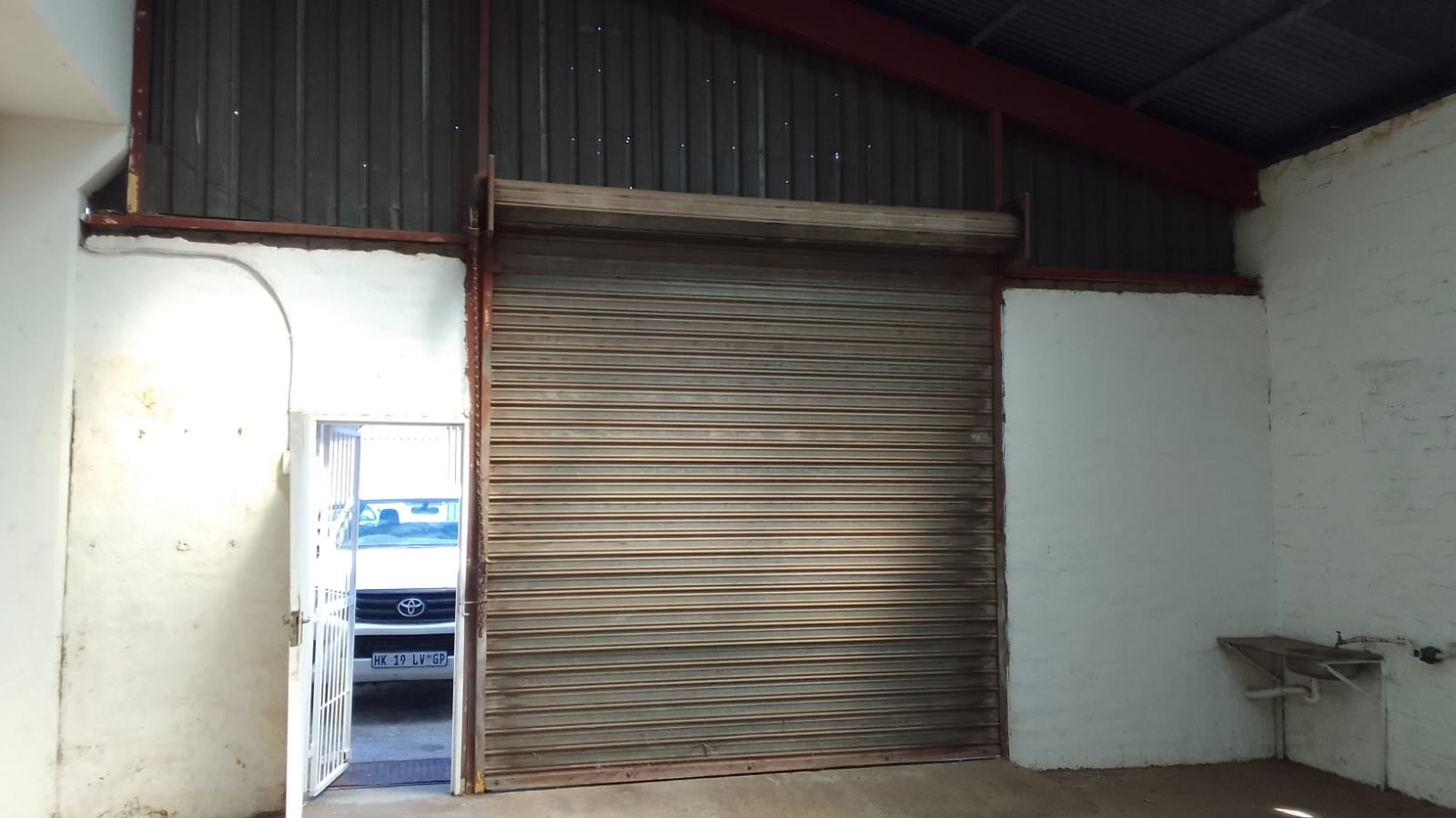 The unit provides a functional layout with roller shutter