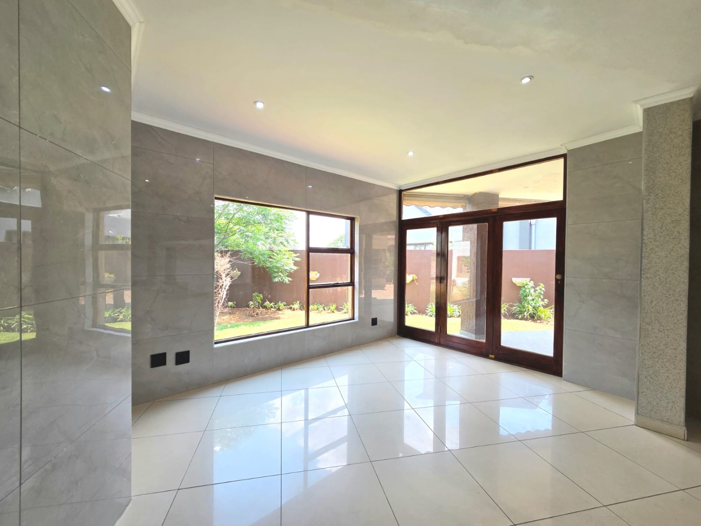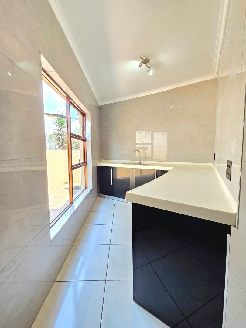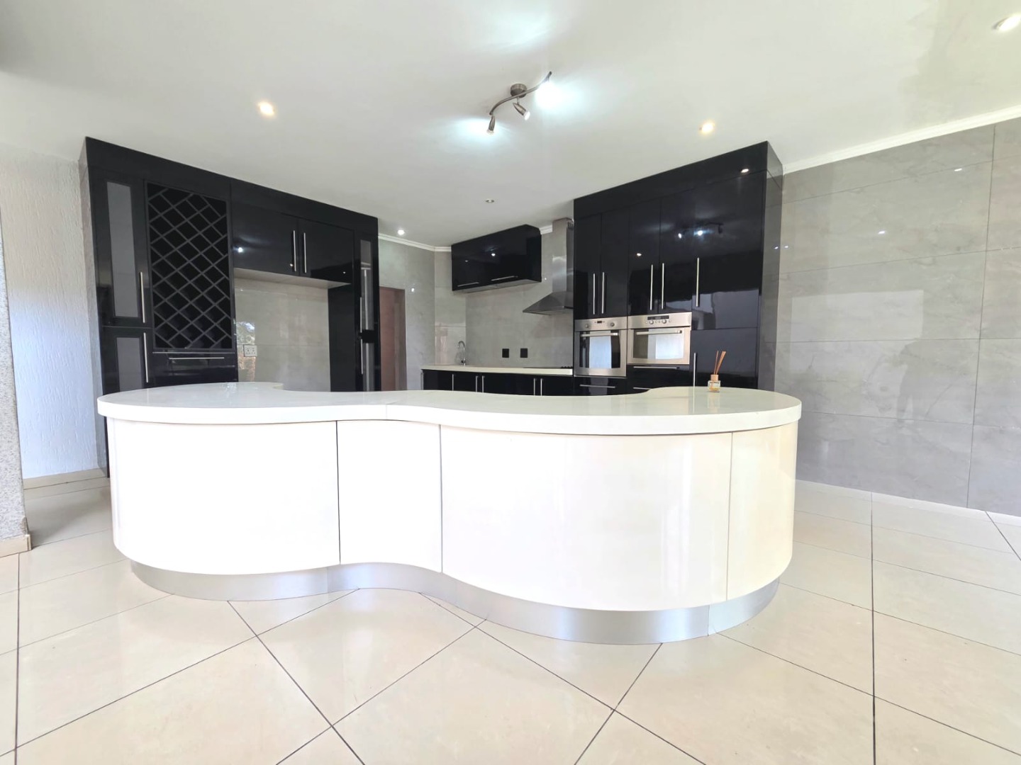 The modern kitchen is a chef’s delight with an open-plan dining area, separate pantry, and scullery for added convenience. Outside, the well-maintained garden offers a peaceful space to unwind. The home also features a double garage, pre-paid electricity, and utilities billed separately.