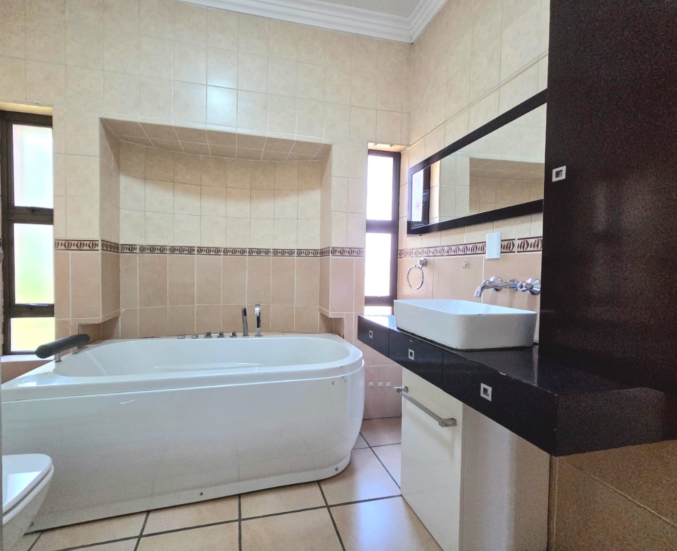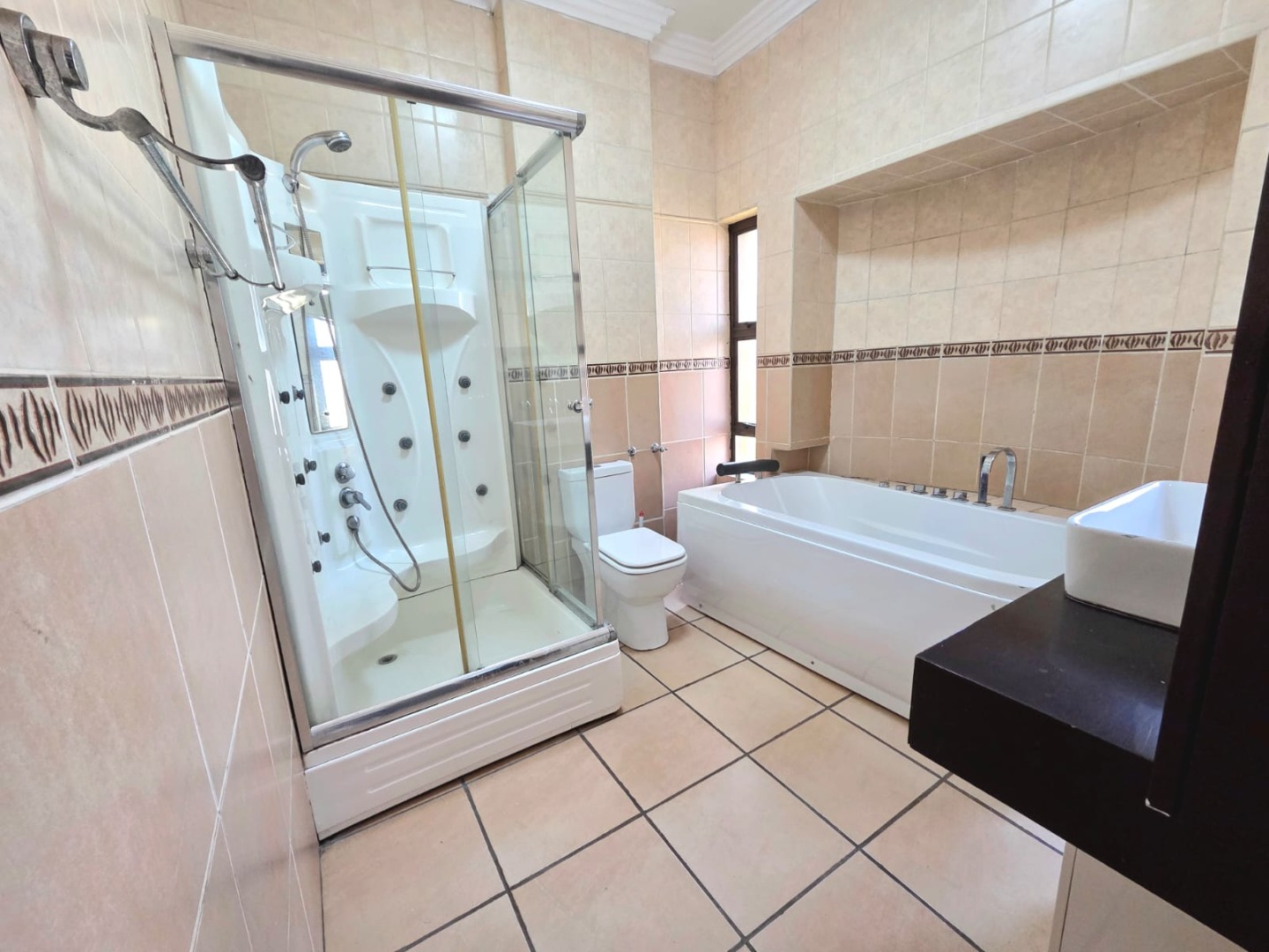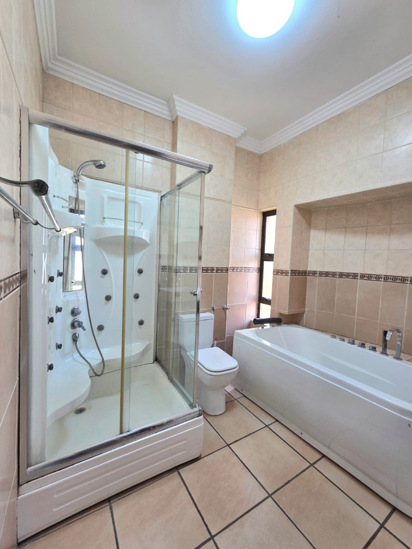 The modern kitchen is a chef’s delight with an open-plan dining area, separate pantry, and scullery for added convenience. Outside, the well-maintained garden offers a peaceful space to unwind. The home also features a double garage, pre-paid electricity, and utilities billed separately.