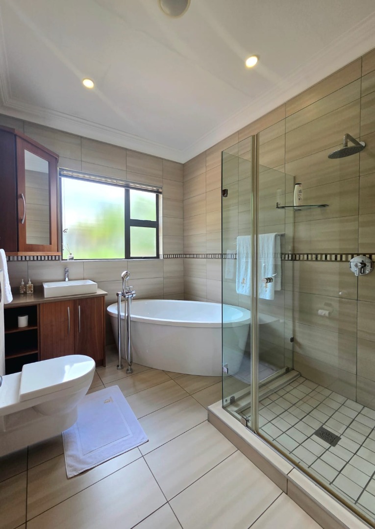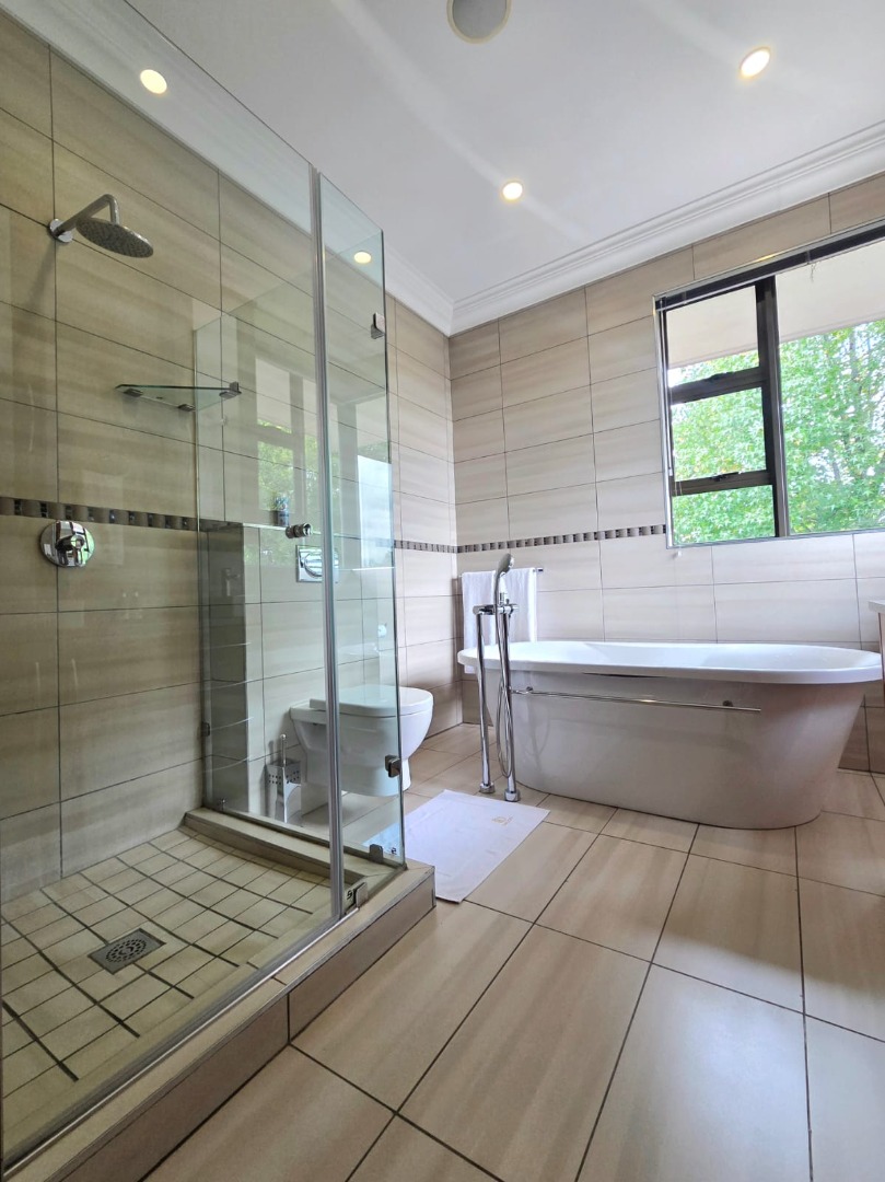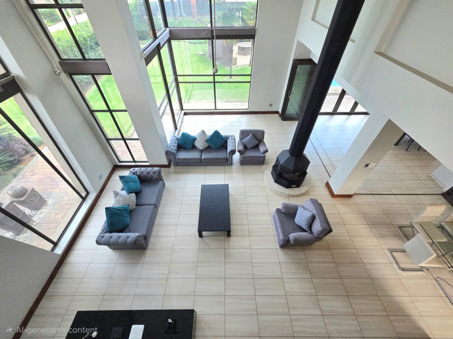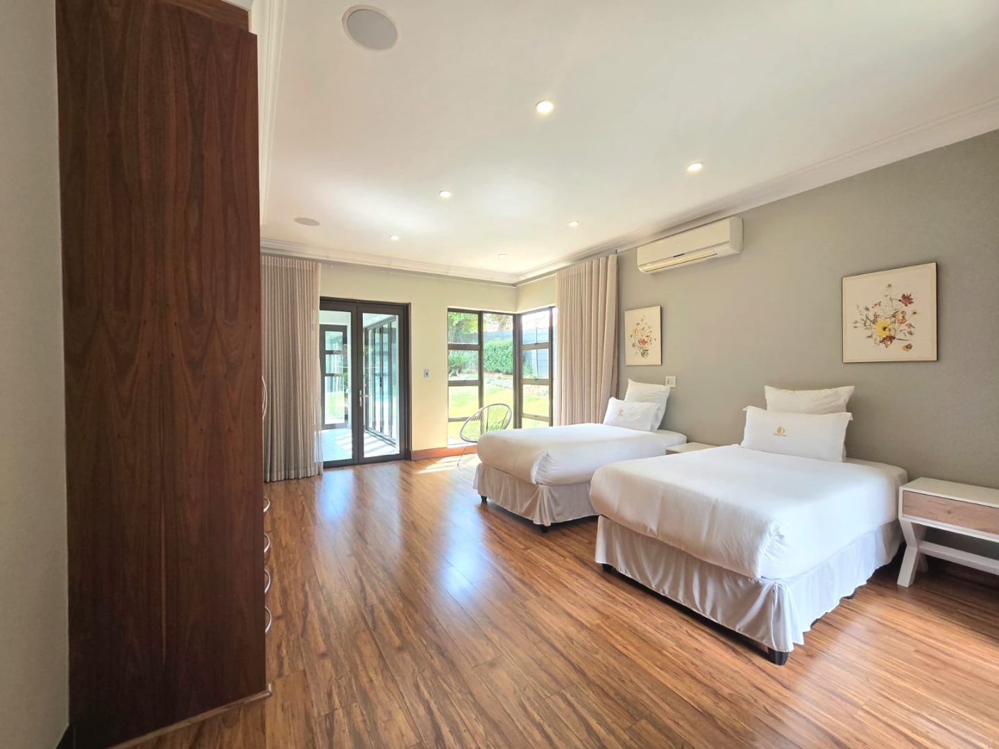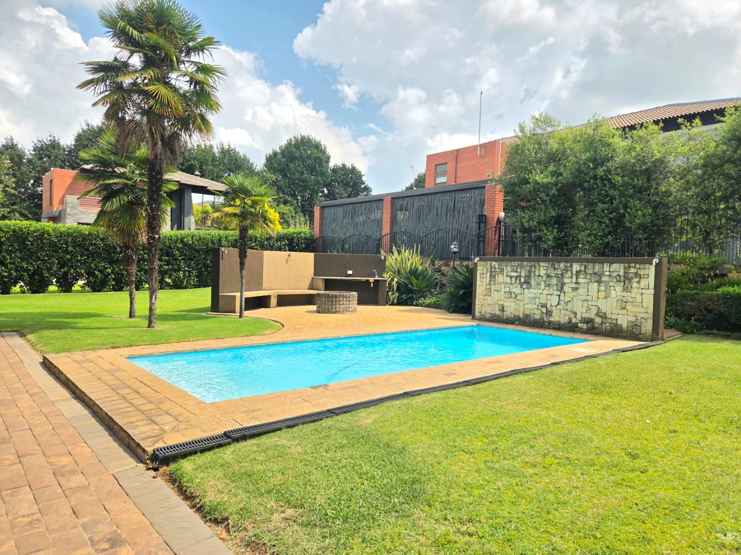 Accommodation comprises four generously sized bedrooms and four and a half bathrooms, including a convenient guest toilet, ensuring privacy and comfort for all residents and visitors. Each space is crafted to offer a serene personal haven. Outside, the property truly shines with a beautifully maintained garden, a refreshing swimming pool, and a built-in braai area perfect for outdoor entertaining. Enjoy the expansive balcony, offering panoramic views of the surroundings.