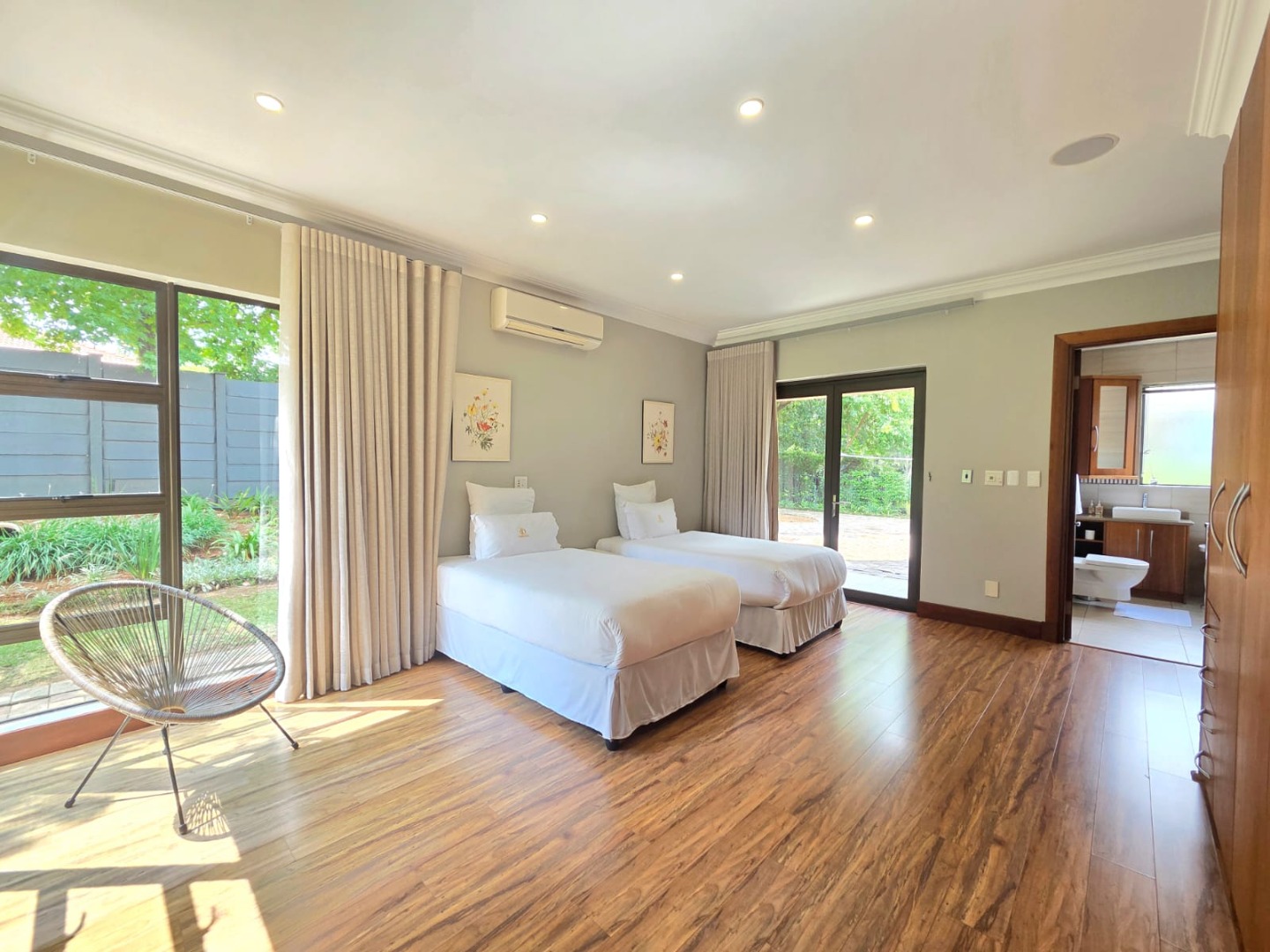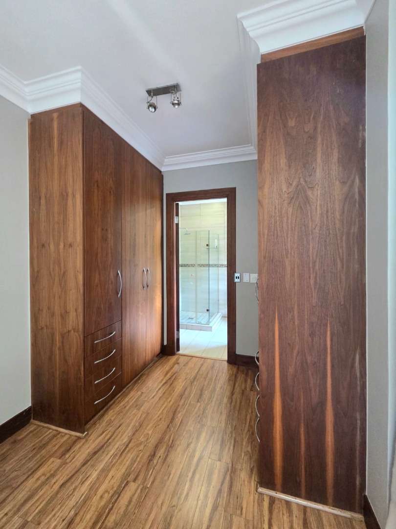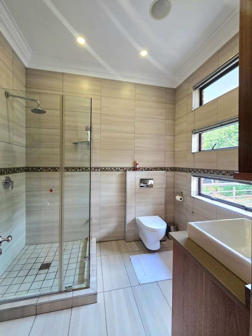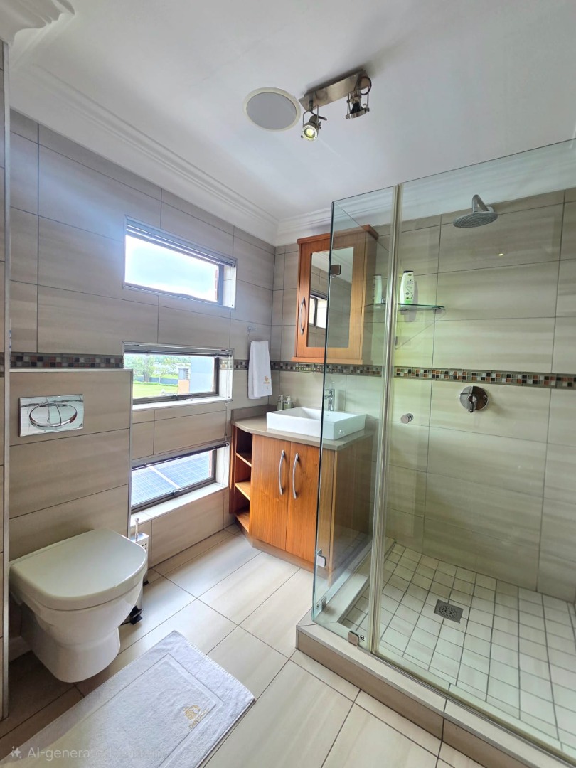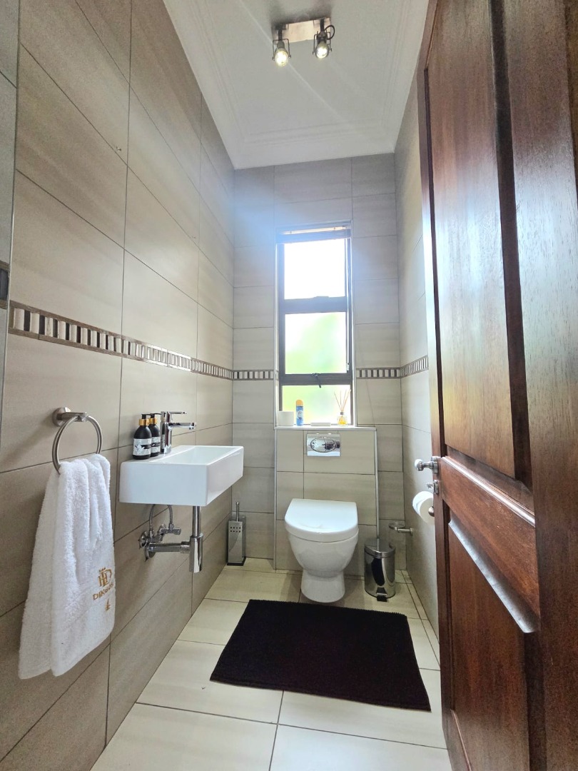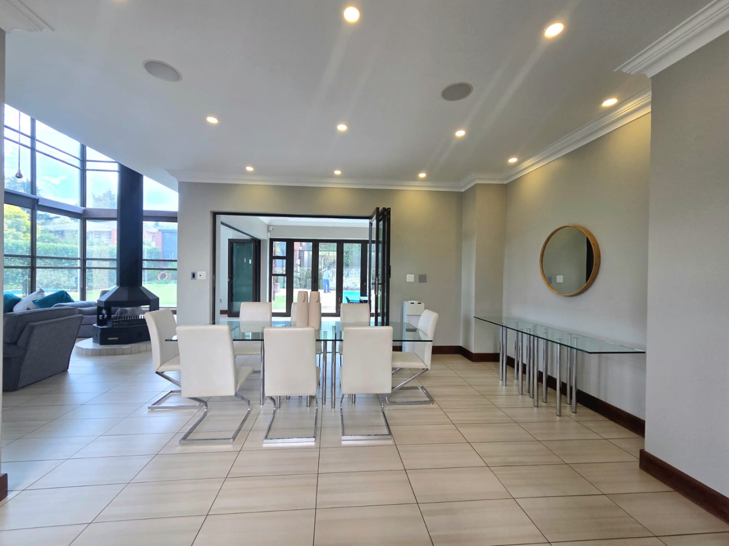 Accommodation comprises four generously sized bedrooms and four and a half bathrooms, including a convenient guest toilet, ensuring privacy and comfort for all residents and visitors. Each space is crafted to offer a serene personal haven. Outside, the property truly shines with a beautifully maintained garden, a refreshing swimming pool, and a built-in braai area perfect for outdoor entertaining. Enjoy the expansive balcony, offering panoramic views of the surroundings.