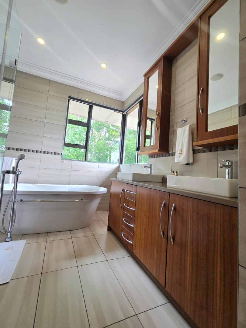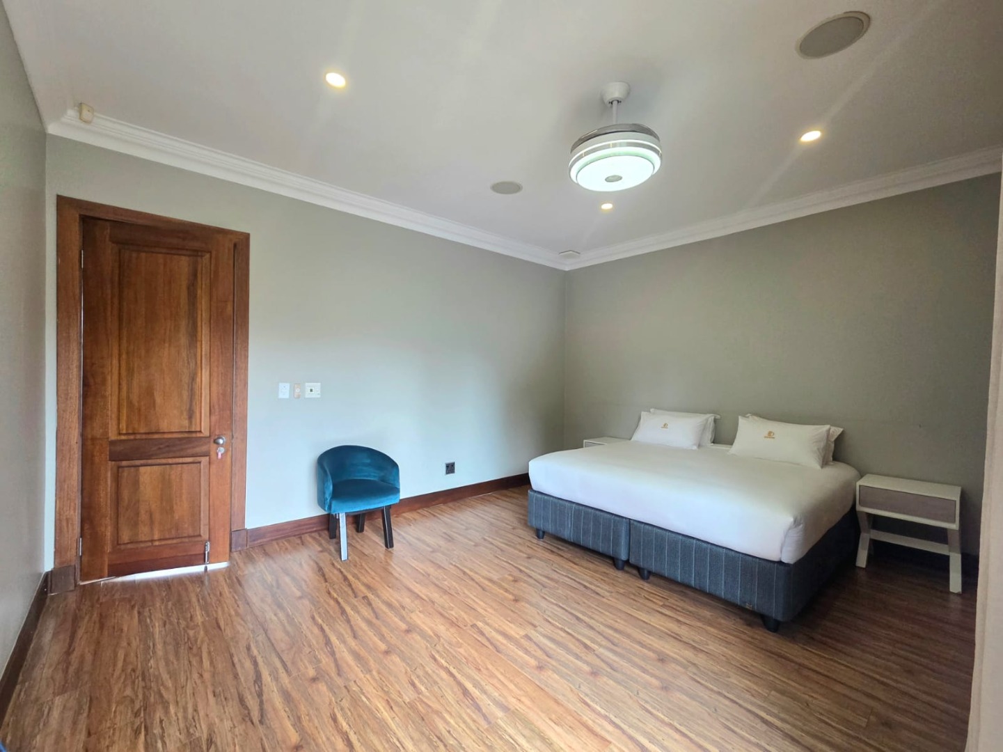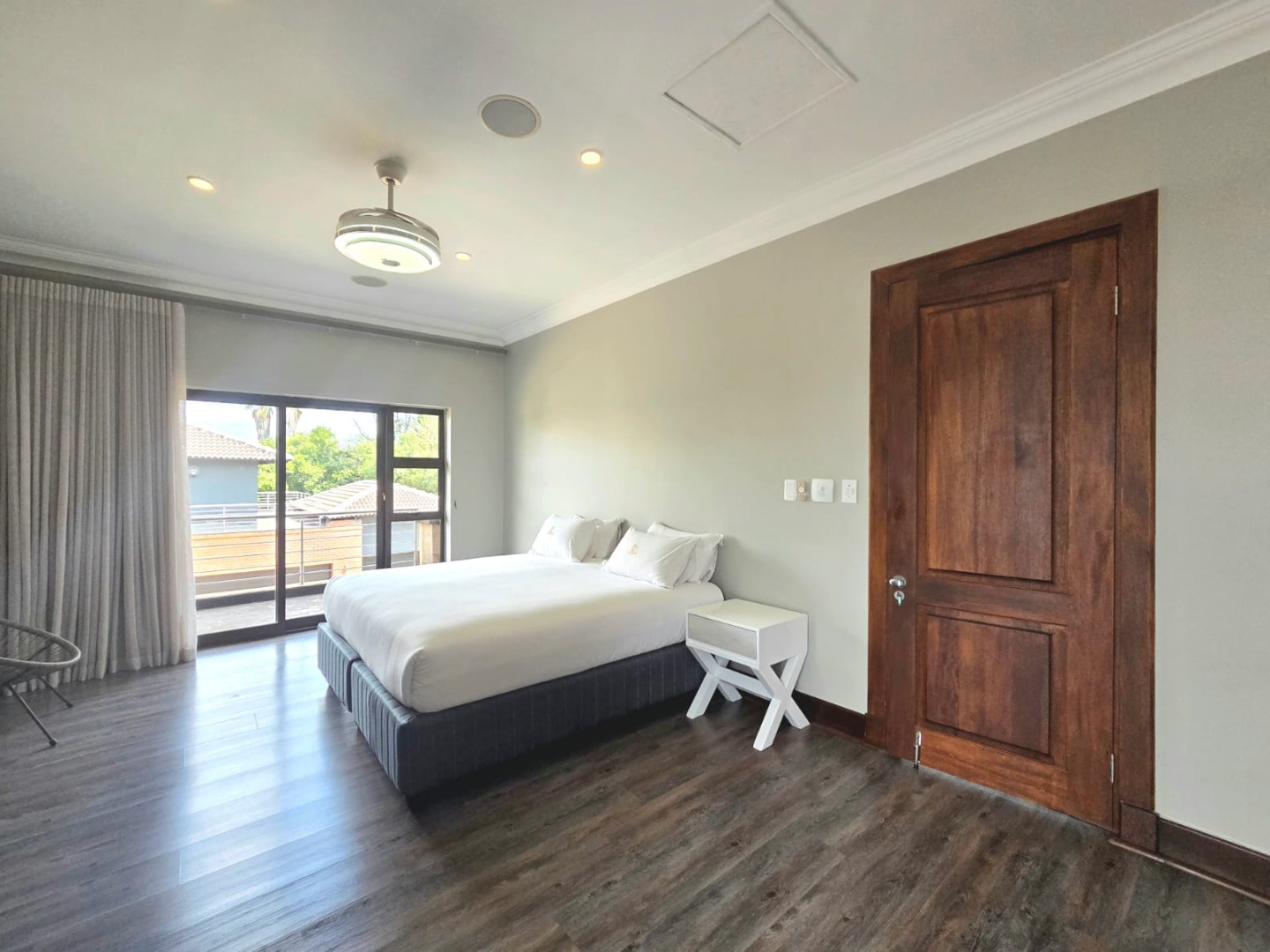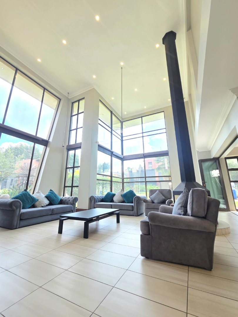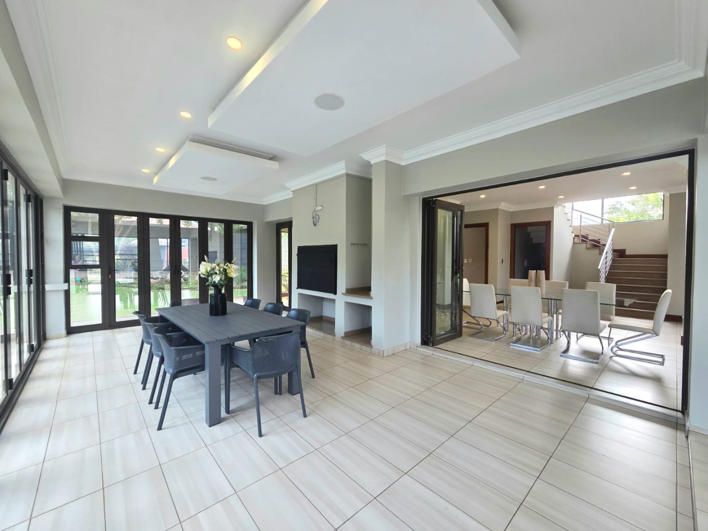 Accommodation comprises four generously sized bedrooms and four and a half bathrooms, including a convenient guest toilet, ensuring privacy and comfort for all residents and visitors. Each space is crafted to offer a serene personal haven. Outside, the property truly shines with a beautifully maintained garden, a refreshing swimming pool, and a built-in braai area perfect for outdoor entertaining. Enjoy the expansive balcony, offering panoramic views of the surroundings.