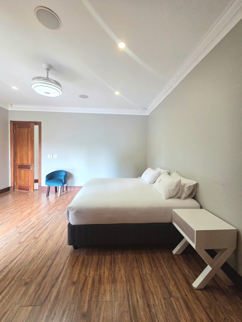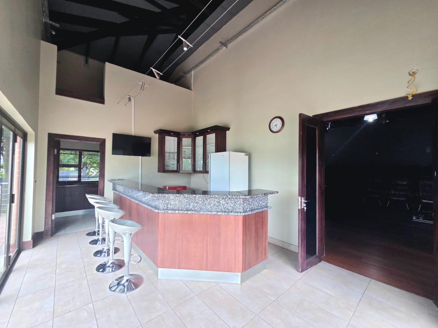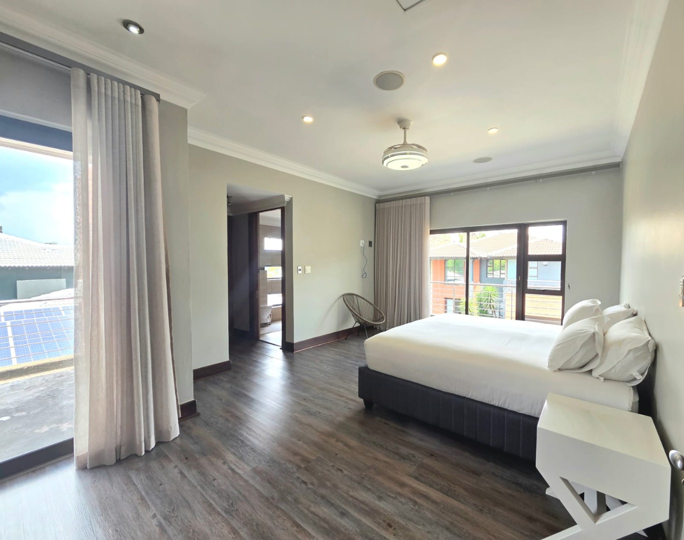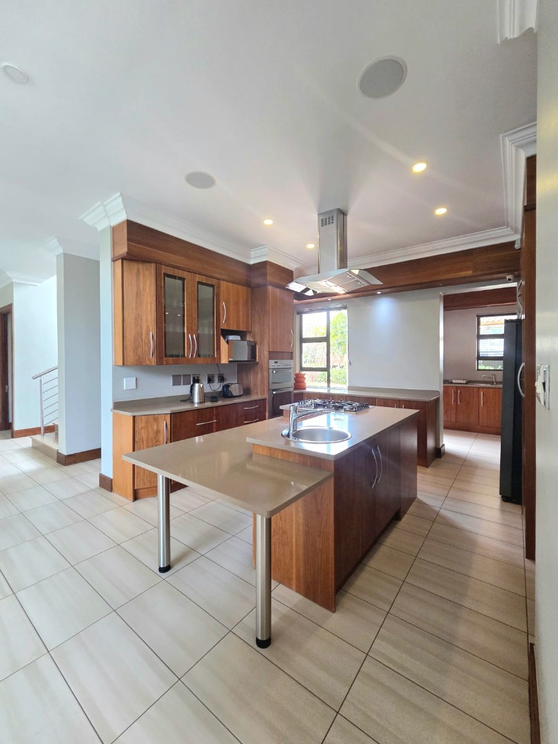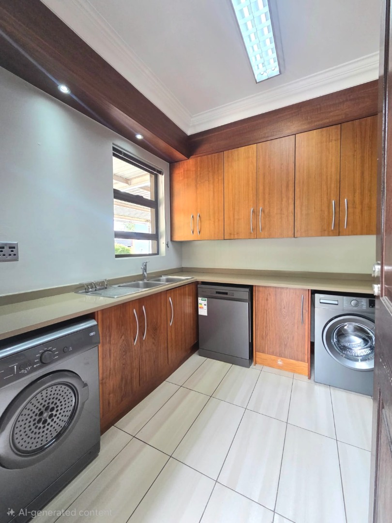 Accommodation comprises four generously sized bedrooms and four and a half bathrooms, including a convenient guest toilet, ensuring privacy and comfort for all residents and visitors. Each space is crafted to offer a serene personal haven. Outside, the property truly shines with a beautifully maintained garden, a refreshing swimming pool, and a built-in braai area perfect for outdoor entertaining. Enjoy the expansive balcony, offering panoramic views of the surroundings.