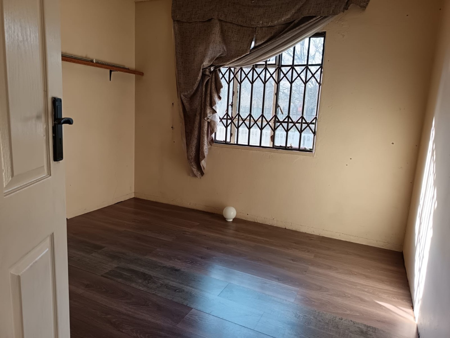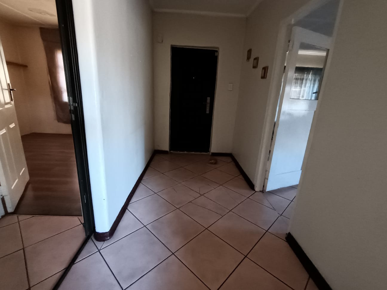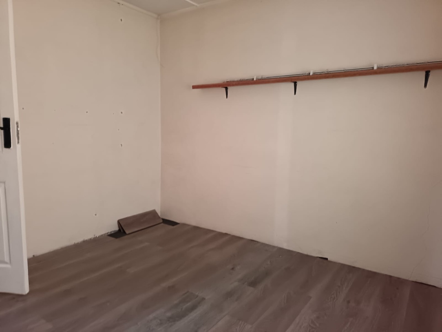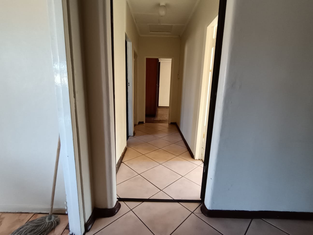 This functional 3-bedroom, 1-bathroom rental property is situated in the suburban area of Vanderbijlpark CW 6, Vanderbijlpark. The interior features a practical layout, including a comfortable lounge and a well-equipped kitchen. The kitchen boasts ample wooden cabinetry, an integrated stove/oven unit, and tiled flooring, providing a bright and efficient space for daily living. Throughout the main living areas and hallway, you'll find consistent tiled flooring, while one bedroom offers modern laminate flooring, enhancing comfort. Natural light filters through the windows, many of which are fitted with security bars for added peace of mind.