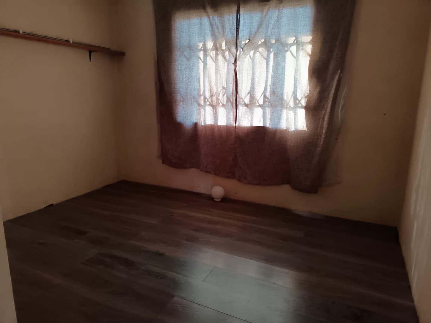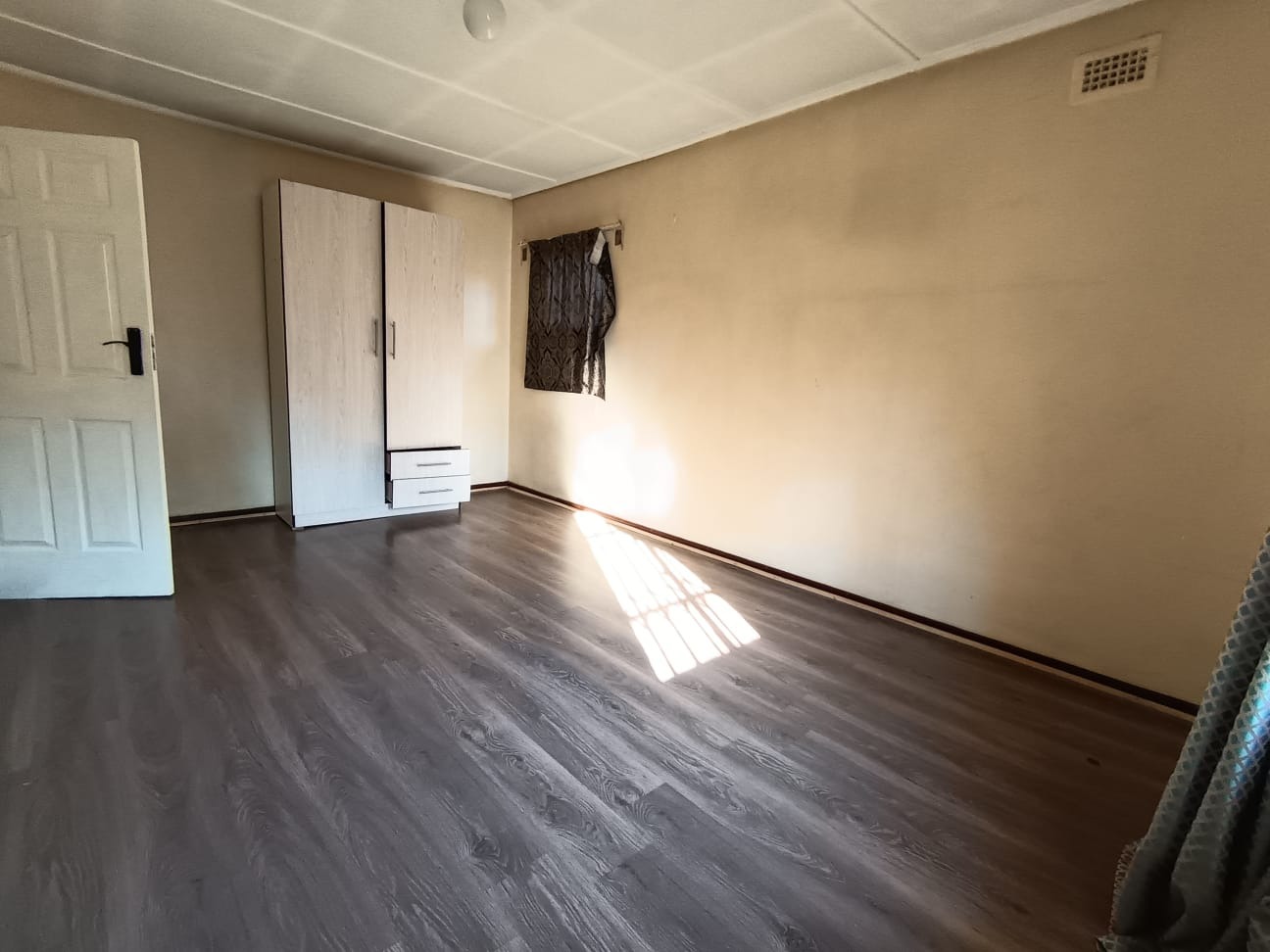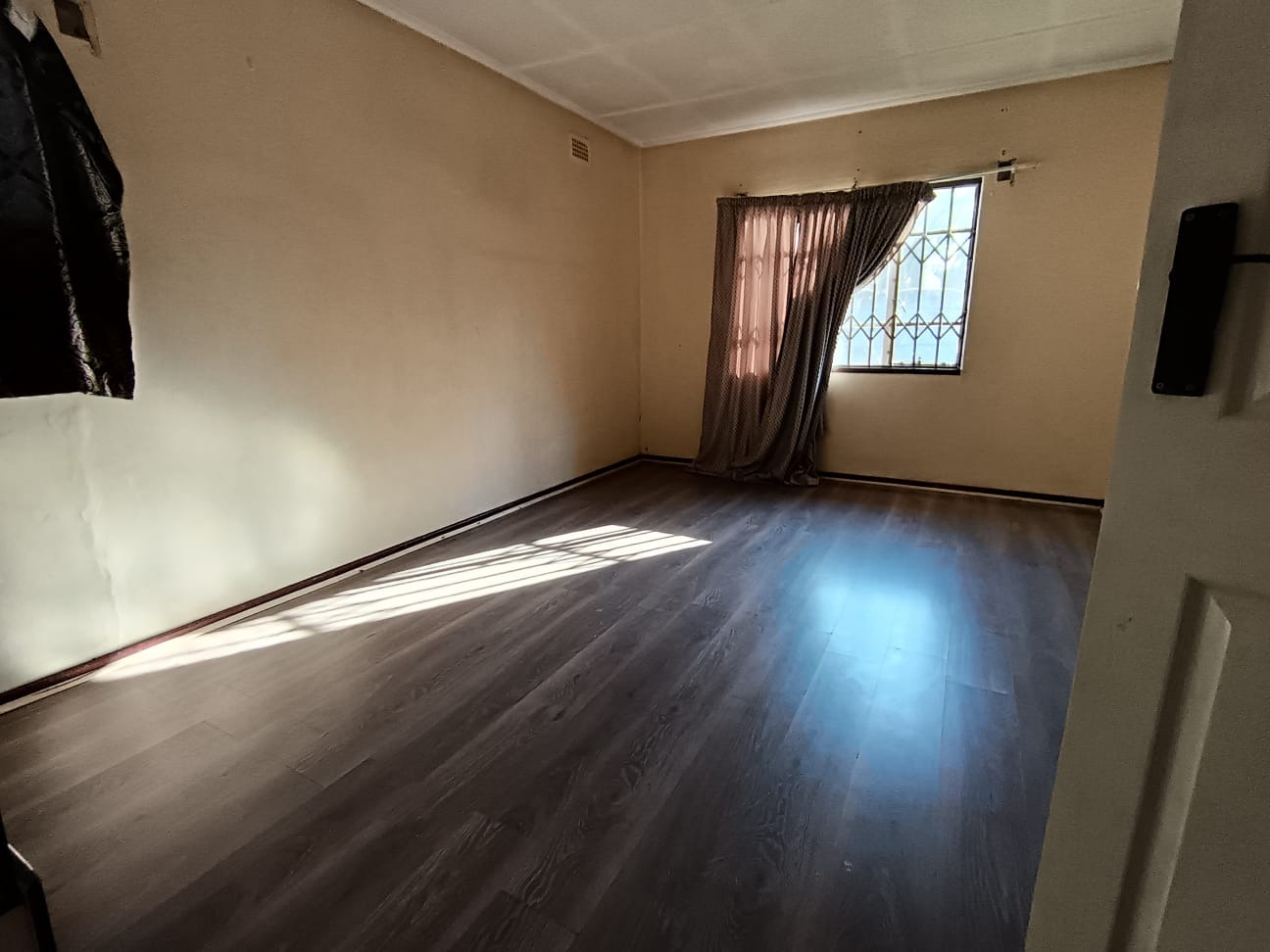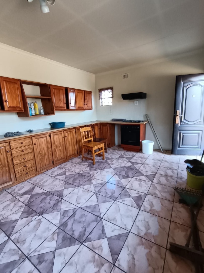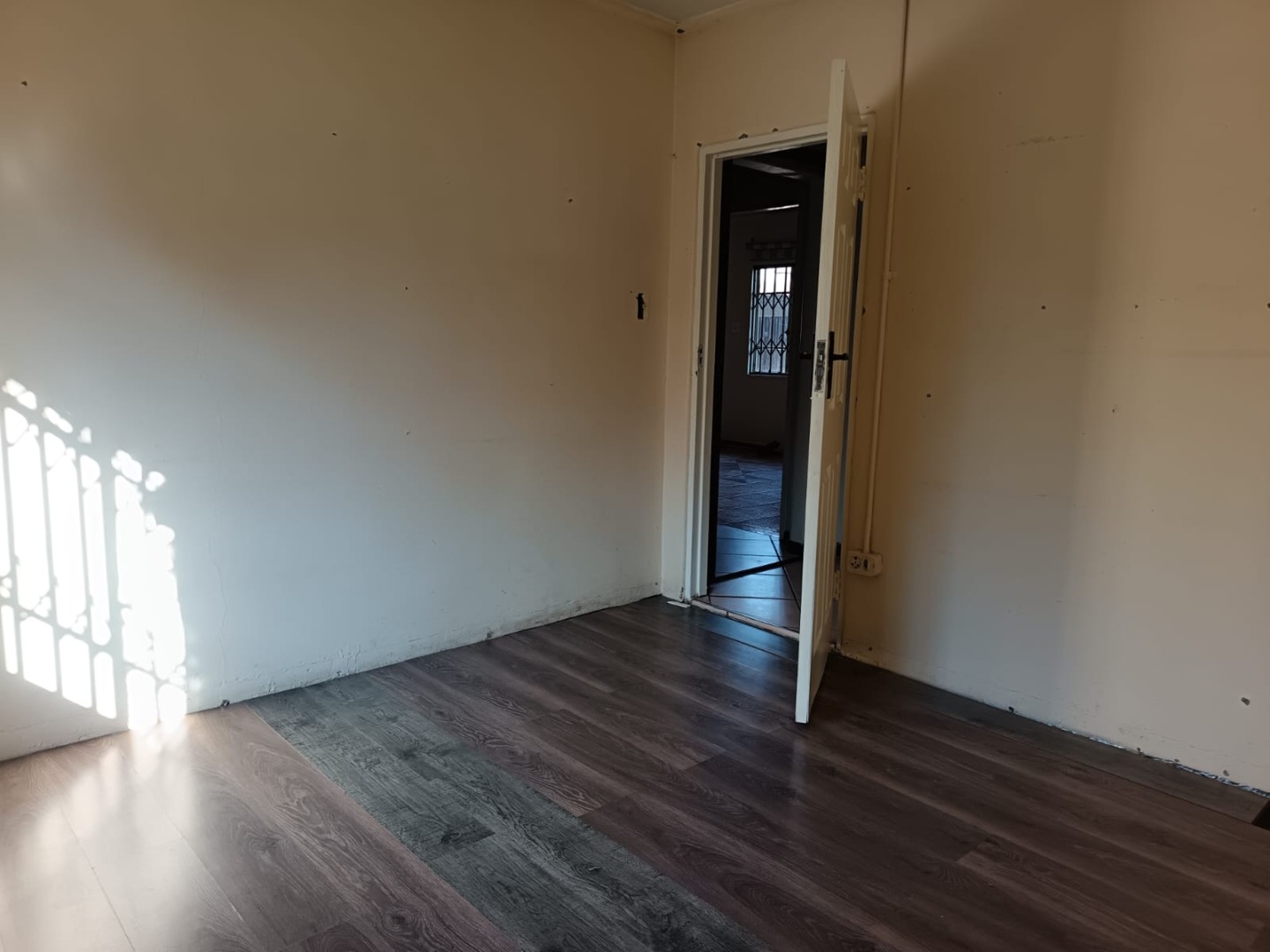 This functional 3-bedroom, 1-bathroom rental property is situated in the suburban area of Vanderbijlpark CW 6, Vanderbijlpark. The interior features a practical layout, including a comfortable lounge and a well-equipped kitchen. The kitchen boasts ample wooden cabinetry, an integrated stove/oven unit, and tiled flooring, providing a bright and efficient space for daily living. Throughout the main living areas and hallway, you'll find consistent tiled flooring, while one bedroom offers modern laminate flooring, enhancing comfort. Natural light filters through the windows, many of which are fitted with security bars for added peace of mind.